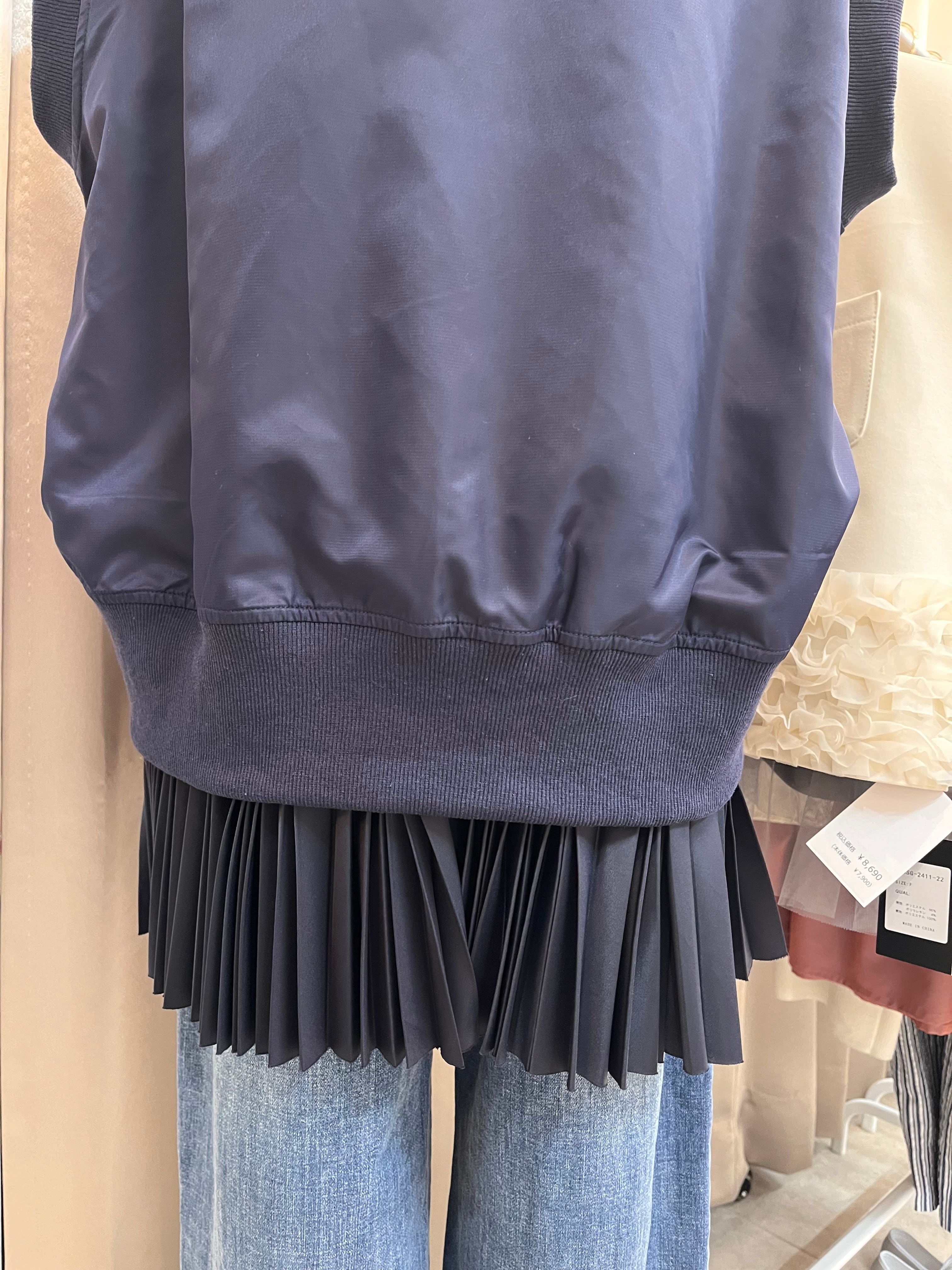 ・下にプリーツが施されたデザインが特徴的なナイロン製ベストです。軽やかな動きとともに、スタイリッシュな印象を与える一枚です。