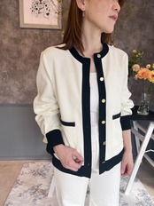 ・ワッフルツイード生地を使用したカーディガンで、後ろ側には華やかな2段フリルが施されています。