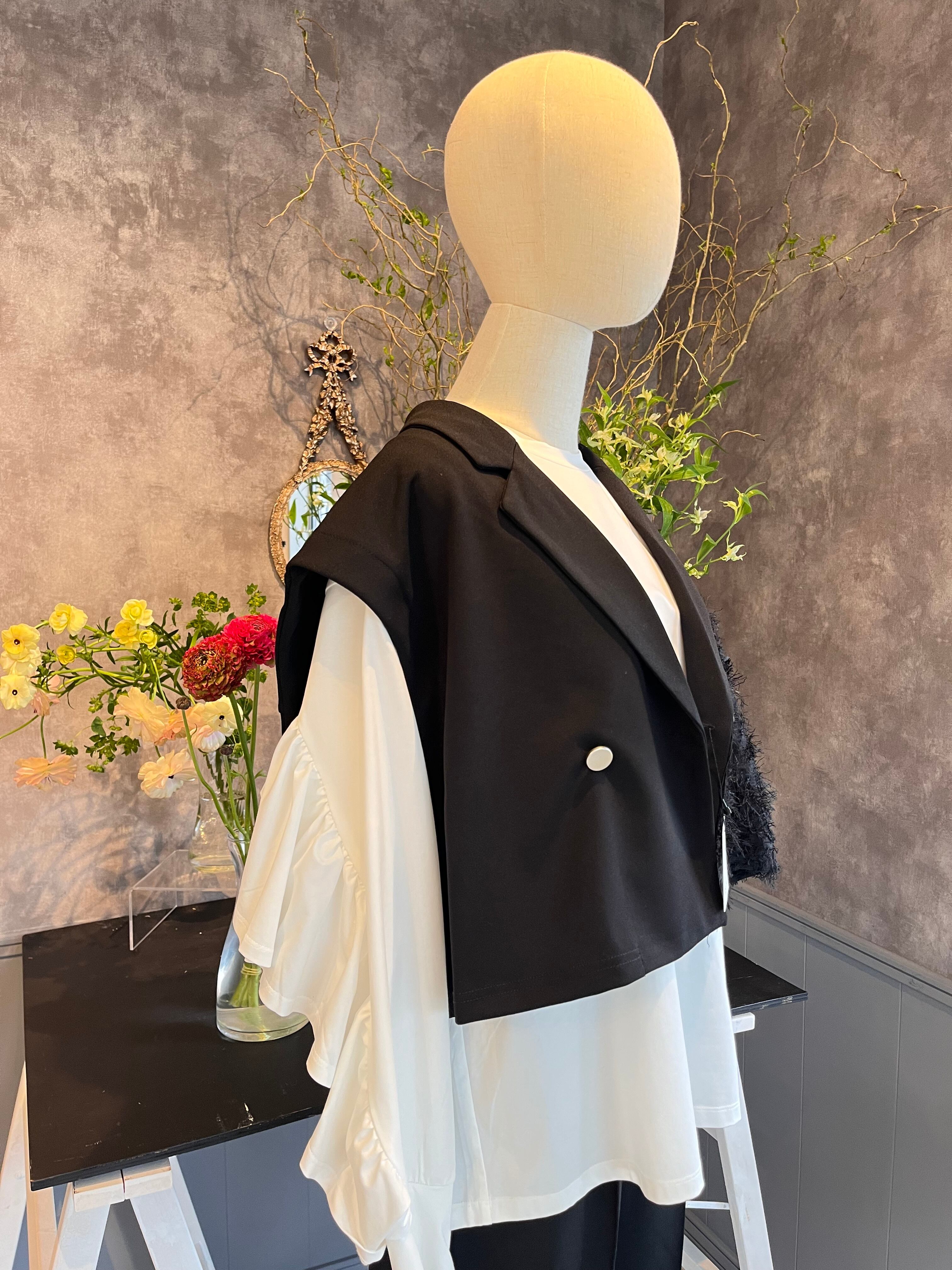 ショートジャケットは、ブラックの洗練されたデザインが魅力です。