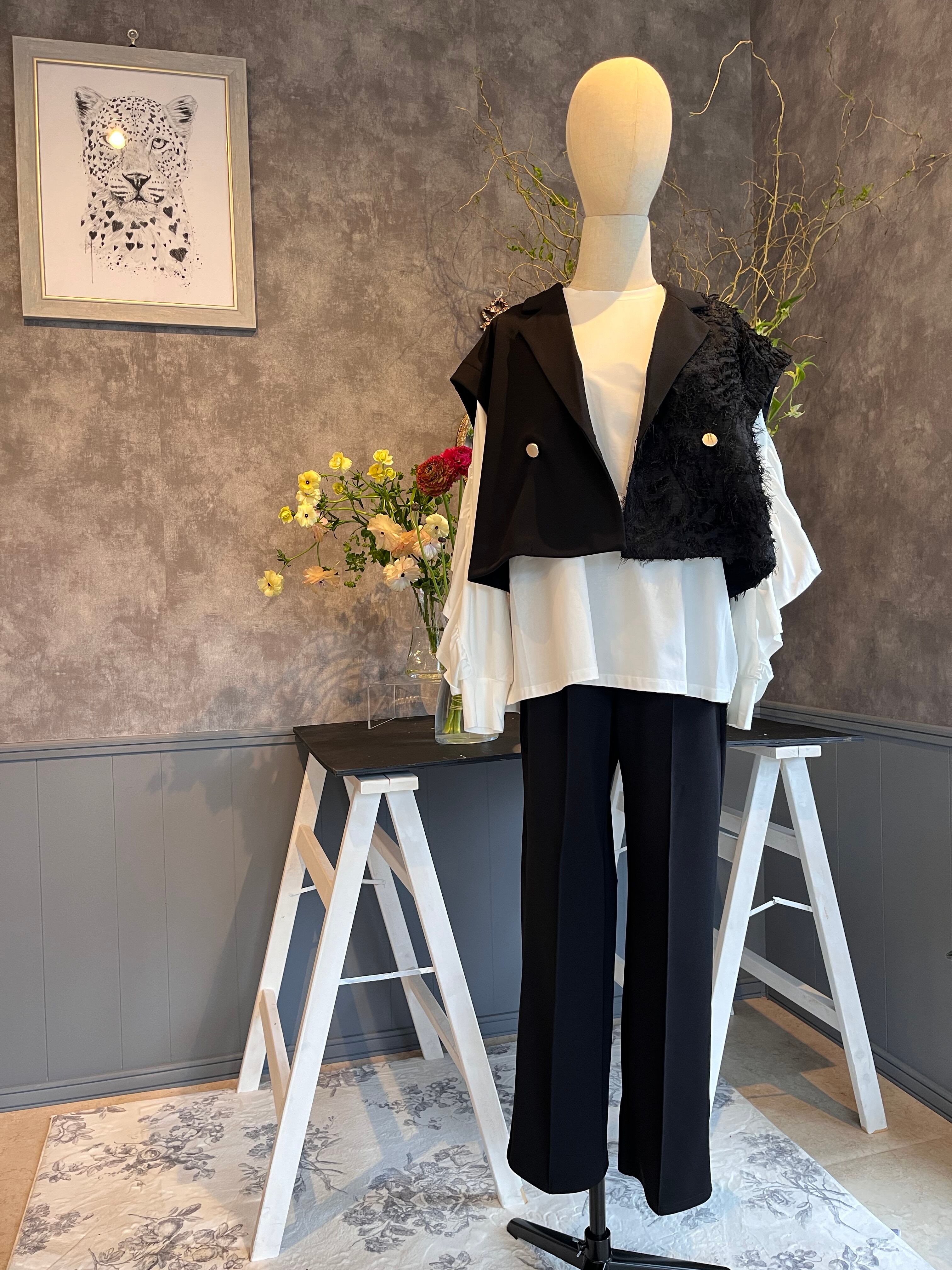 ・カットジョーゼットとジャガード生地を使用したベストです。
