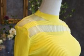 鮮やかなイエローカラーが目を引く、メッシュボーダーリブニットは、シンプルながらも存在感のある一着です。