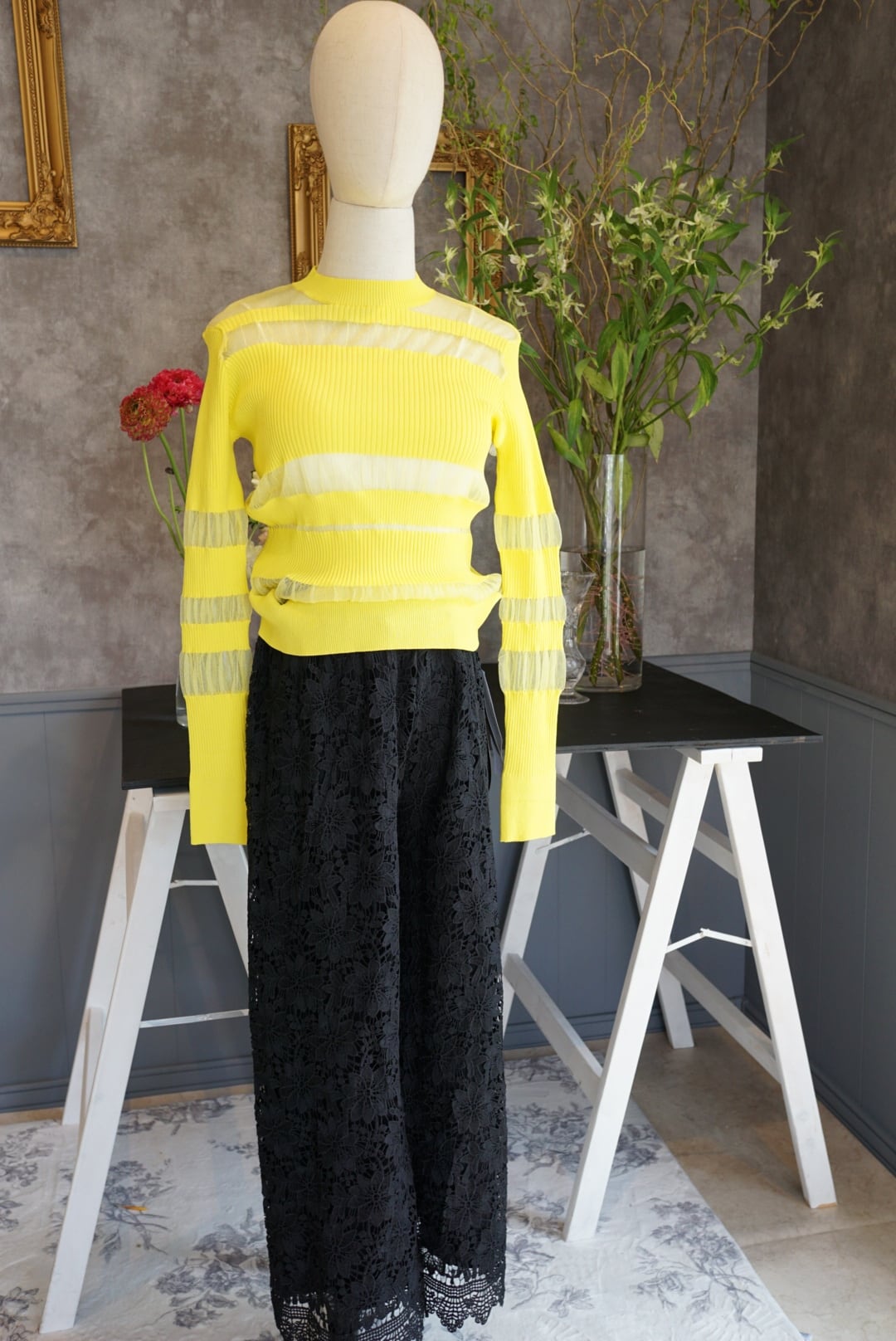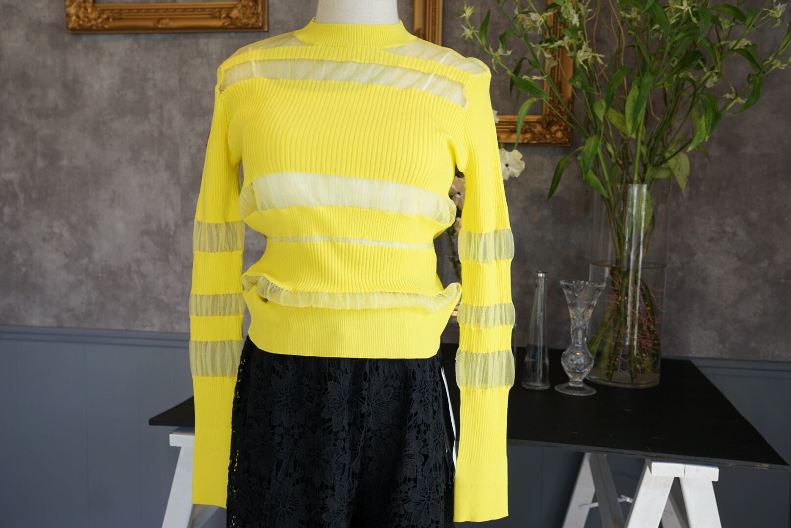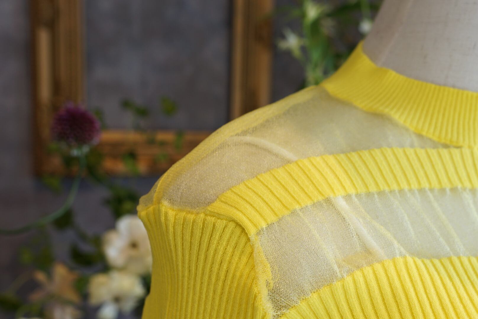 MICALLE MICALLE メッシュボーダーリブニット yellow