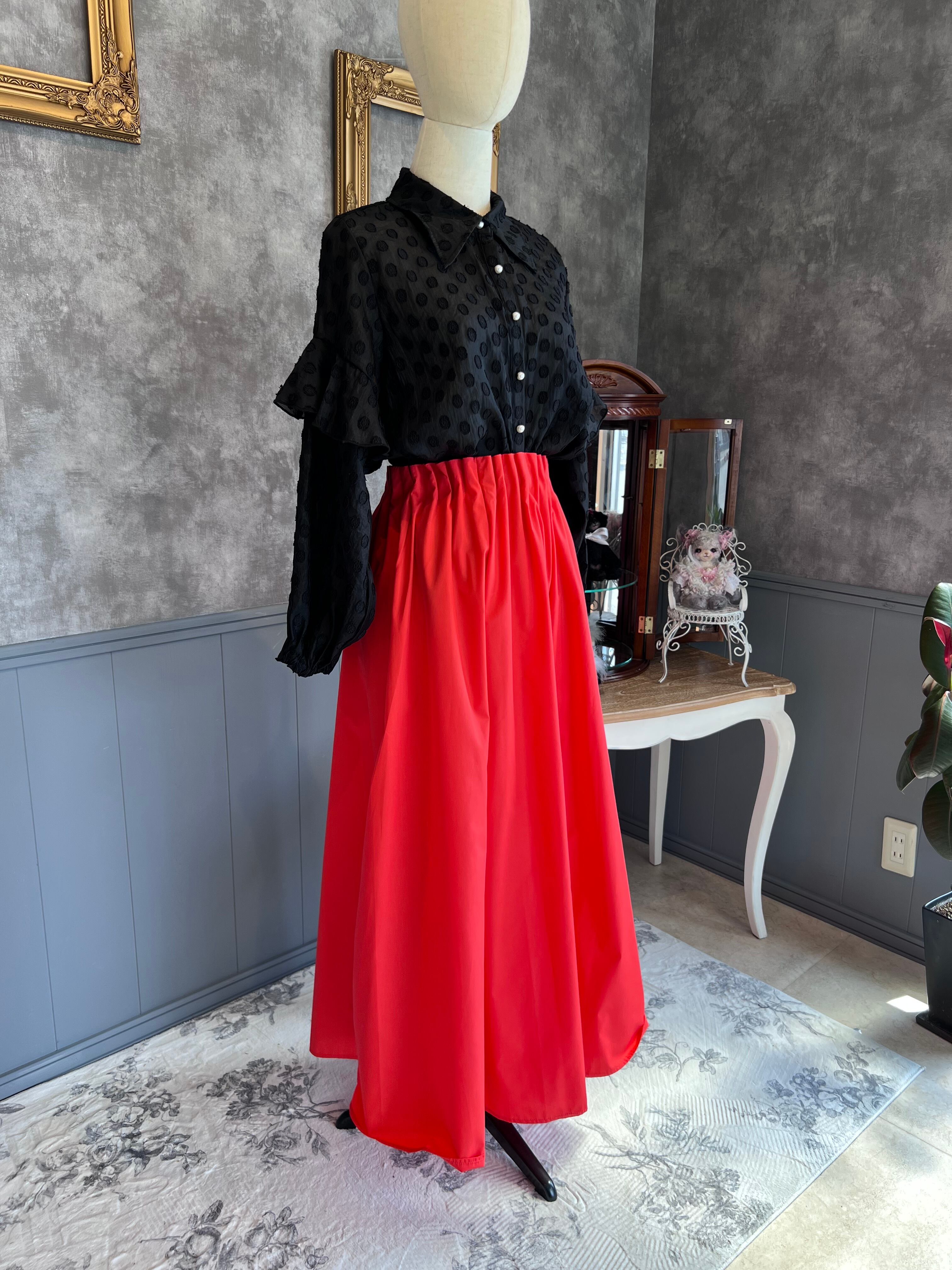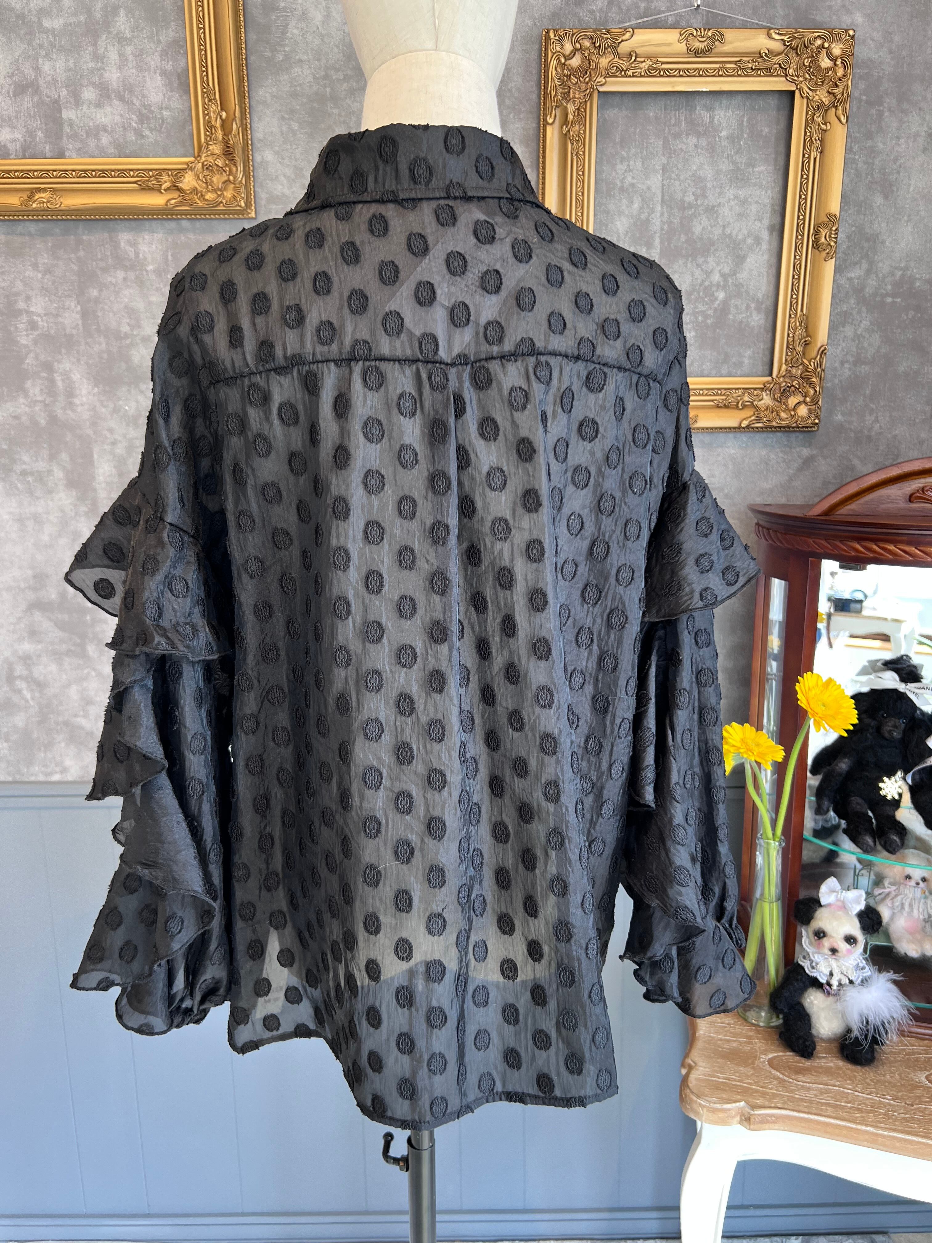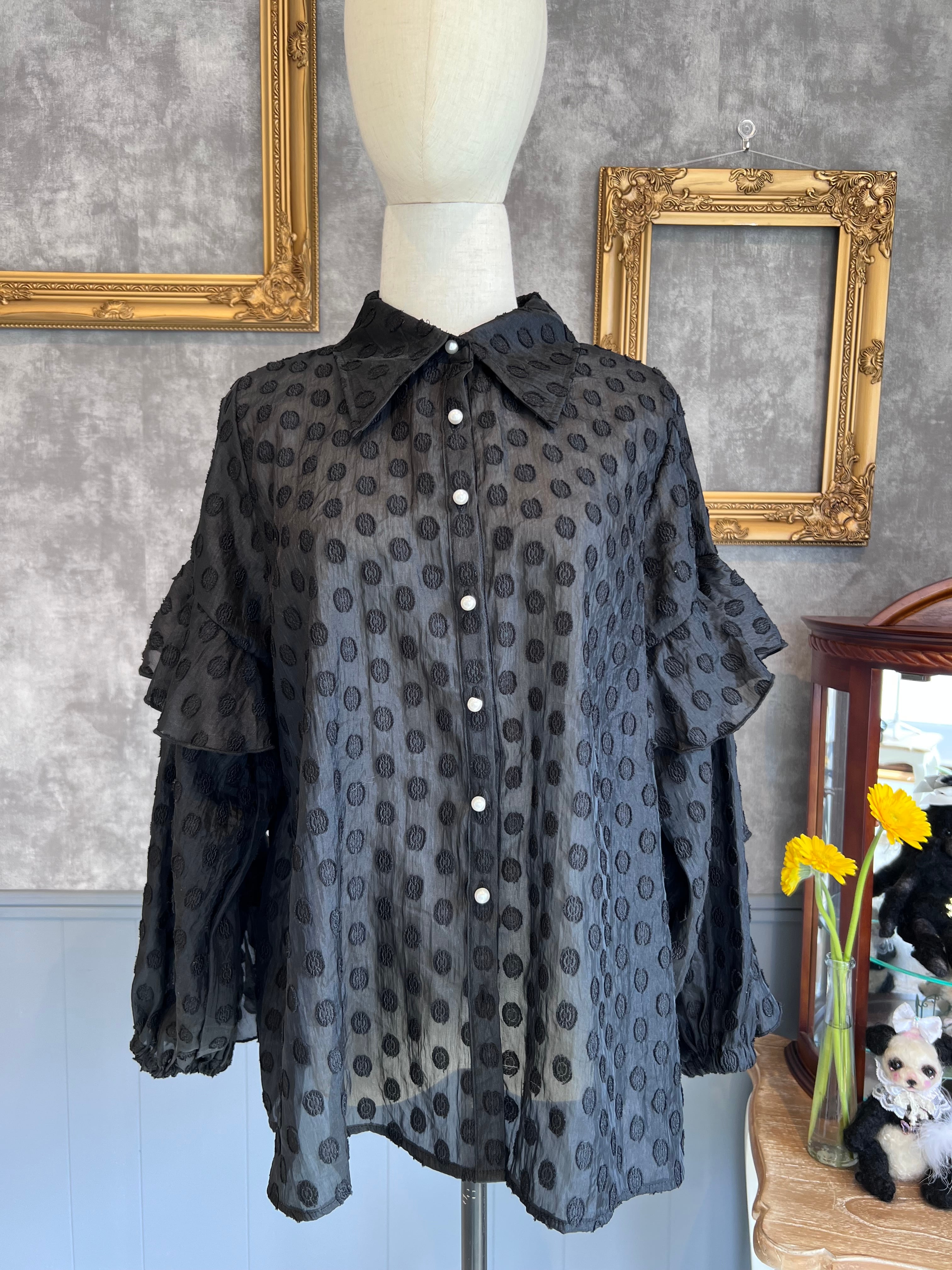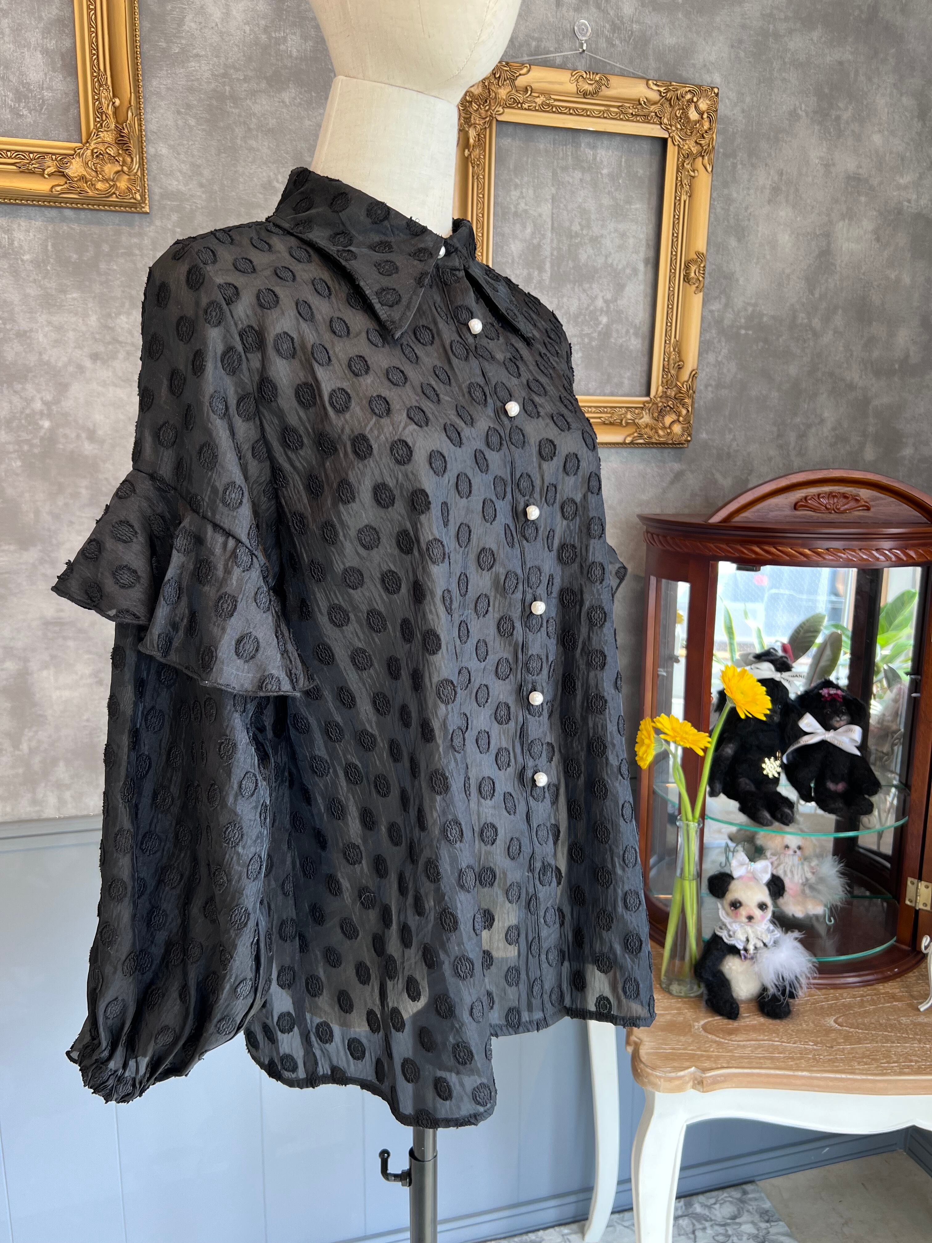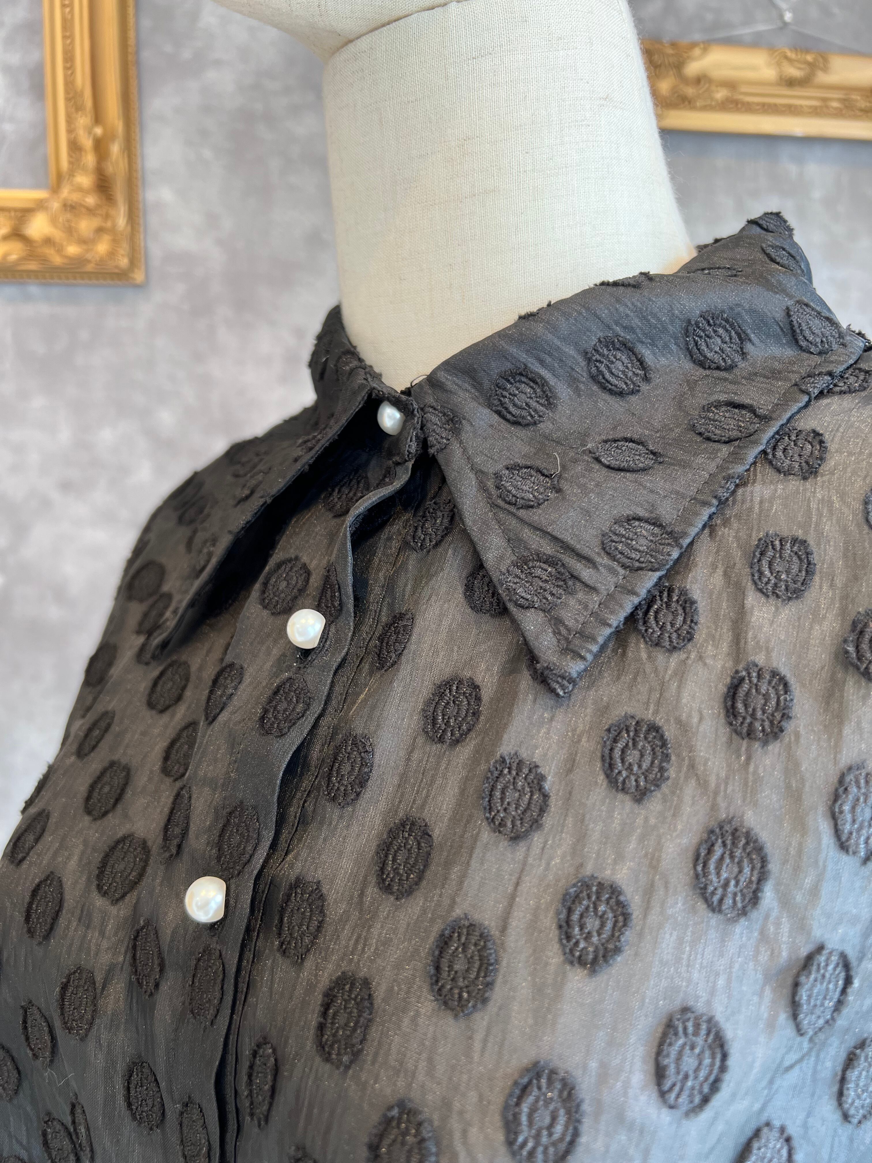 透け感のある、ドット柄のカットジャカードオーガンジー素材を使用した