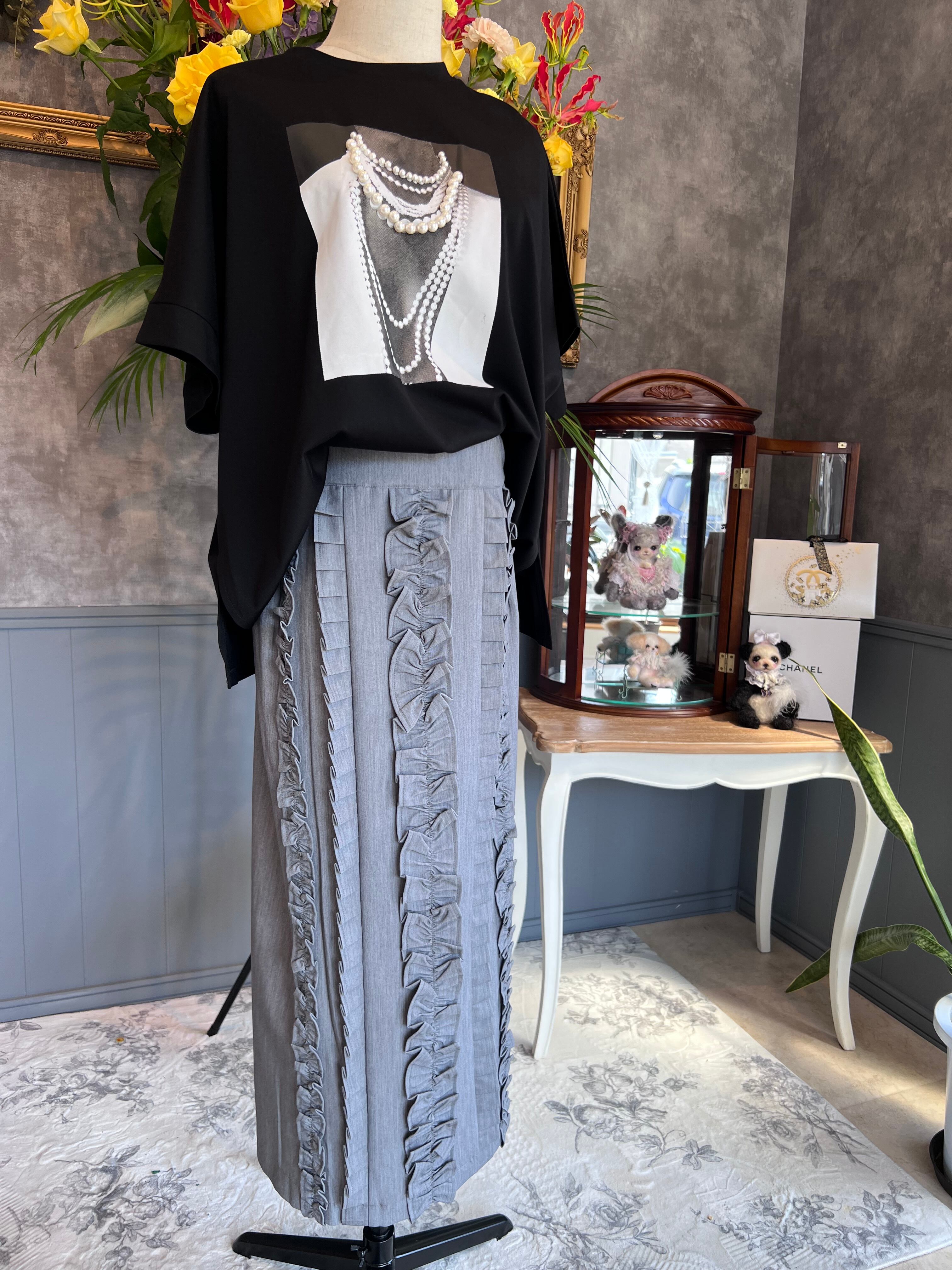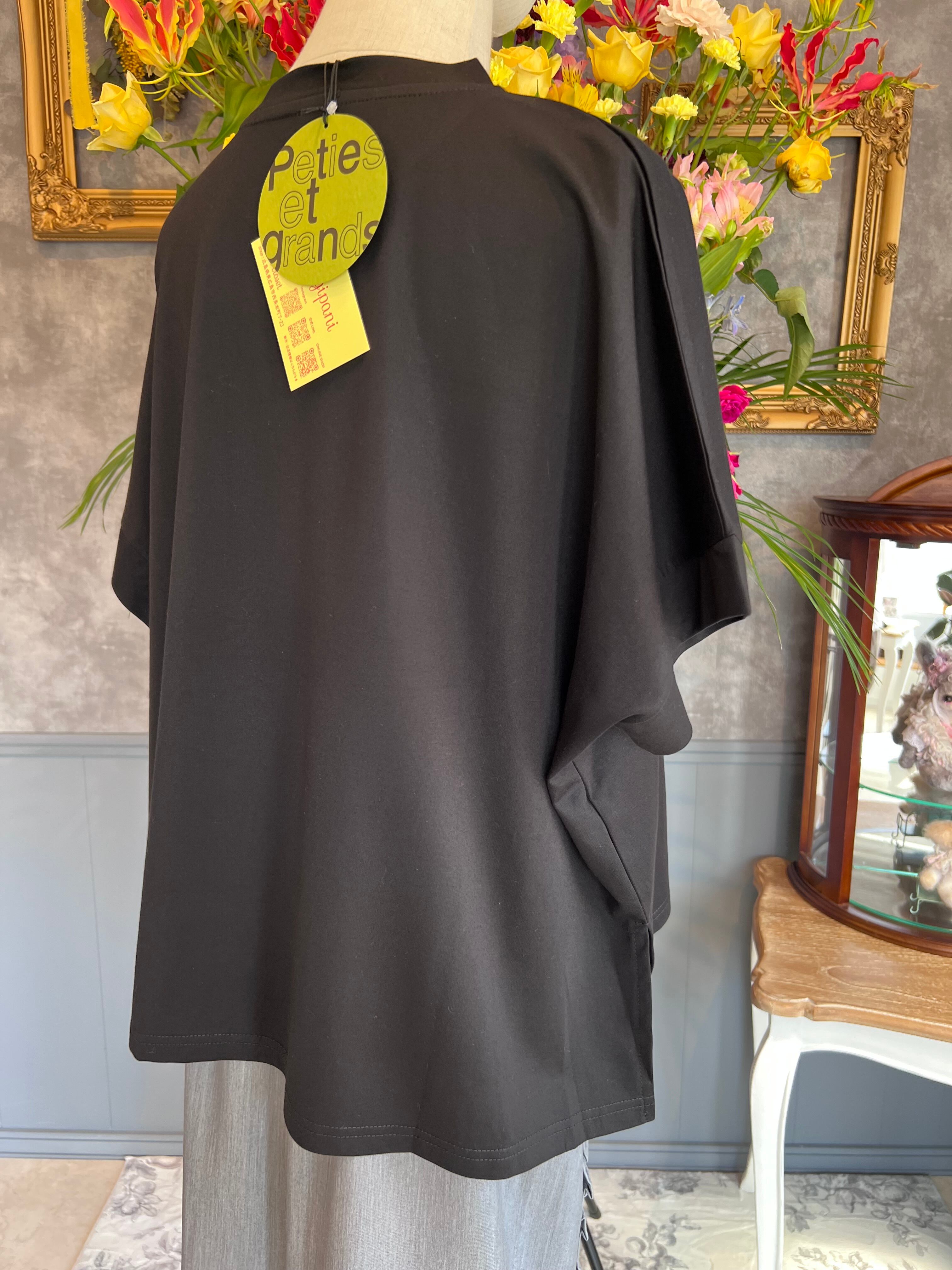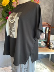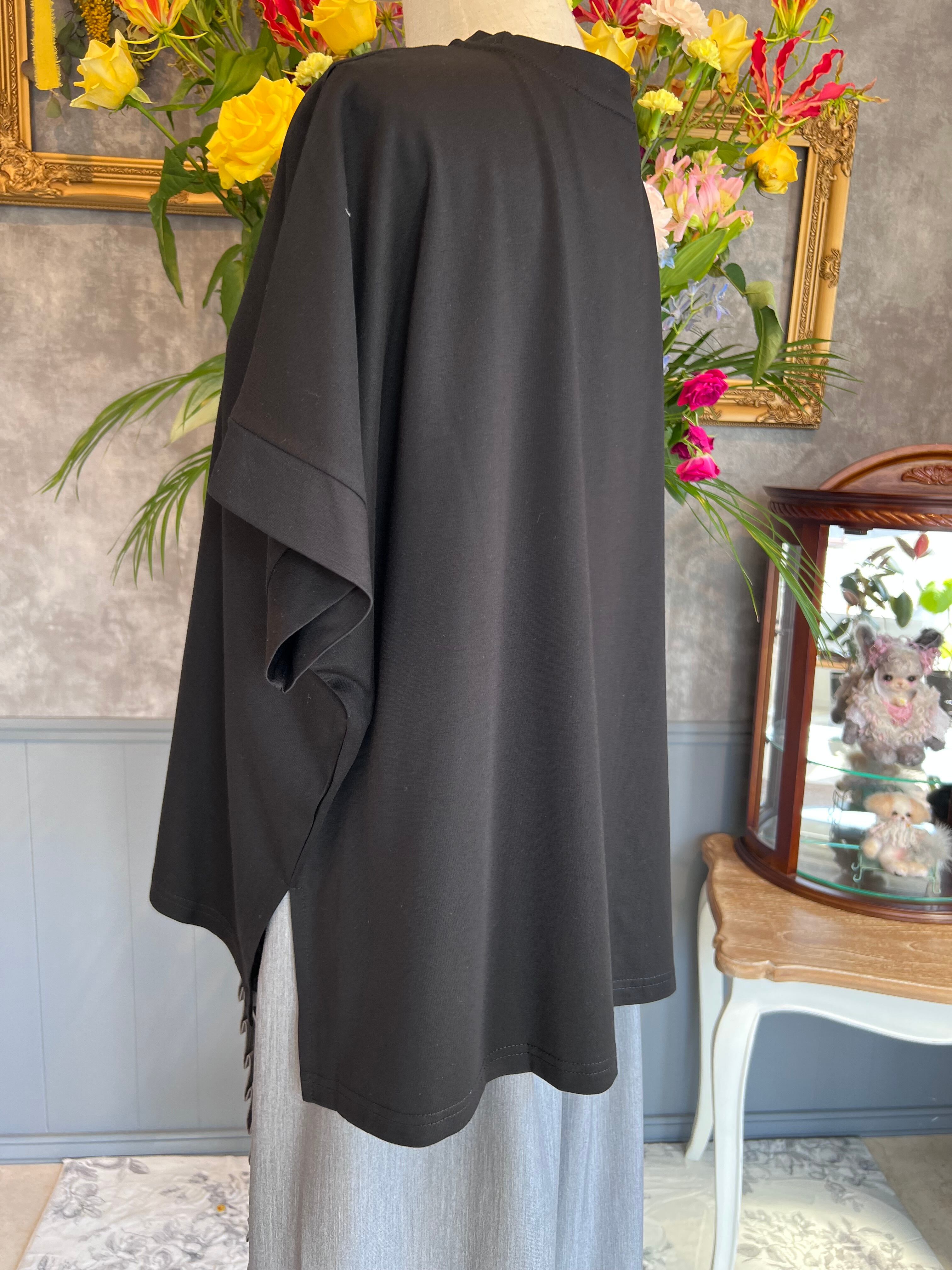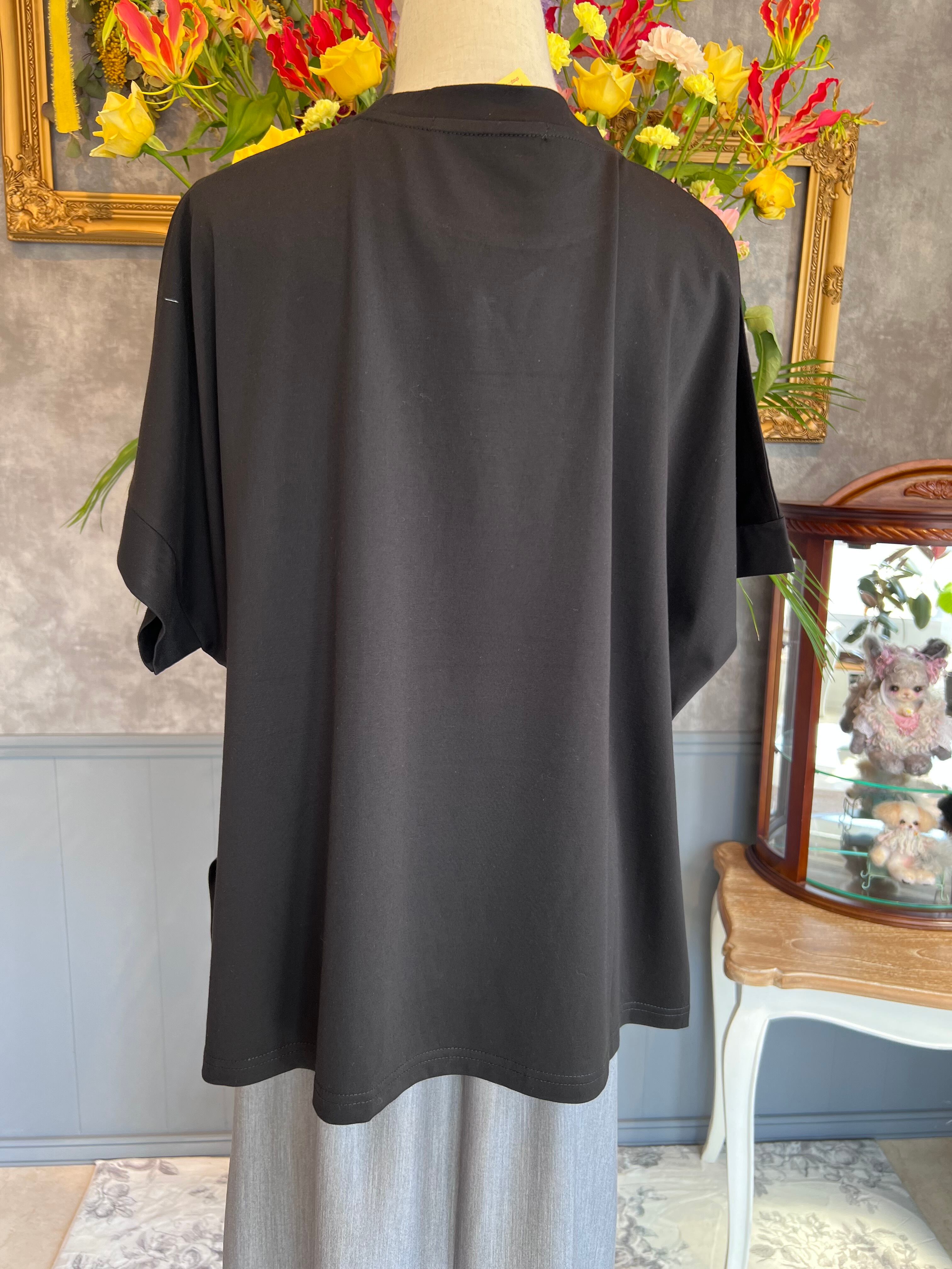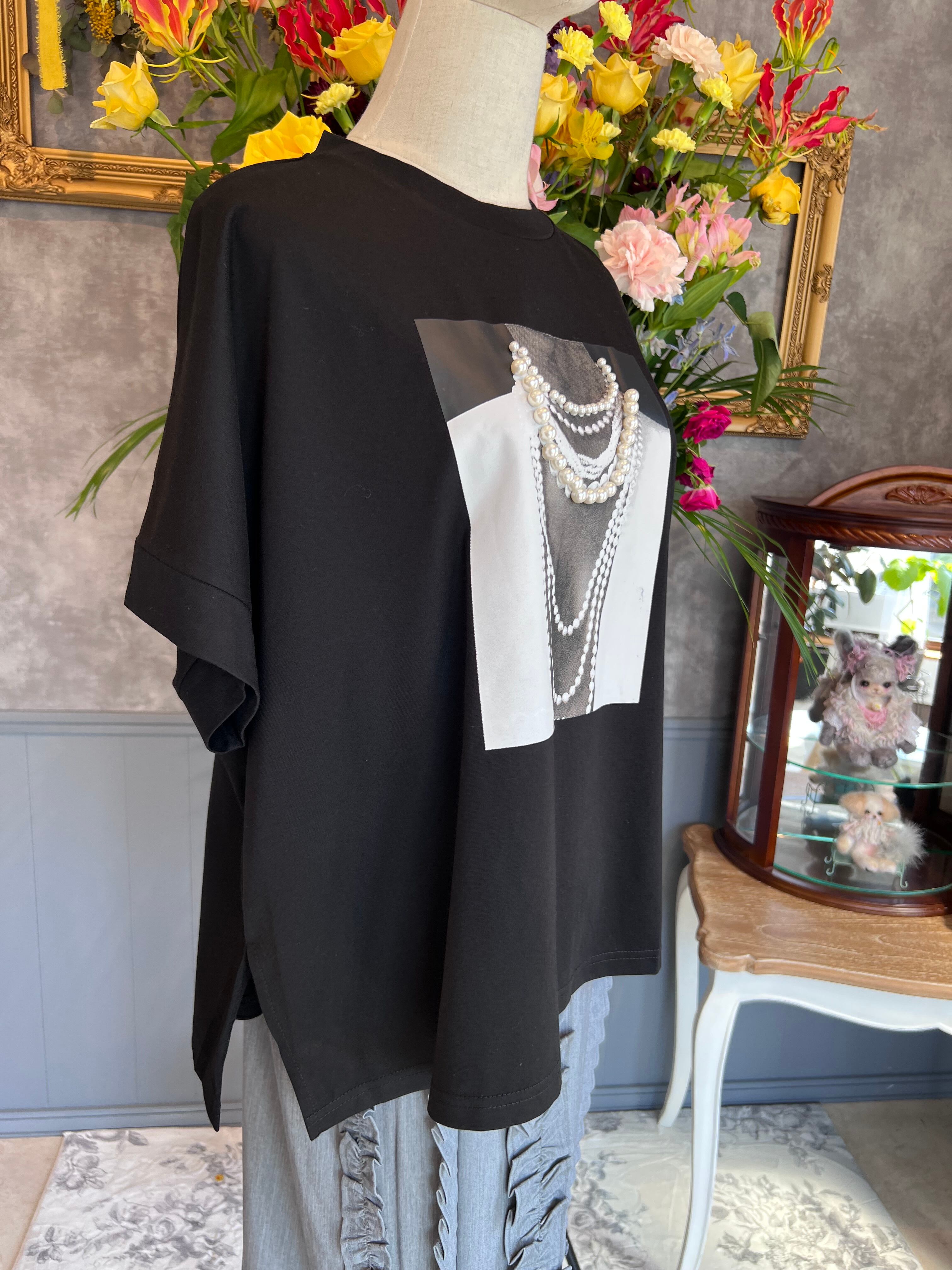 オシャレなブラックのTシャツに、パール装飾を施した大人のカットソー。