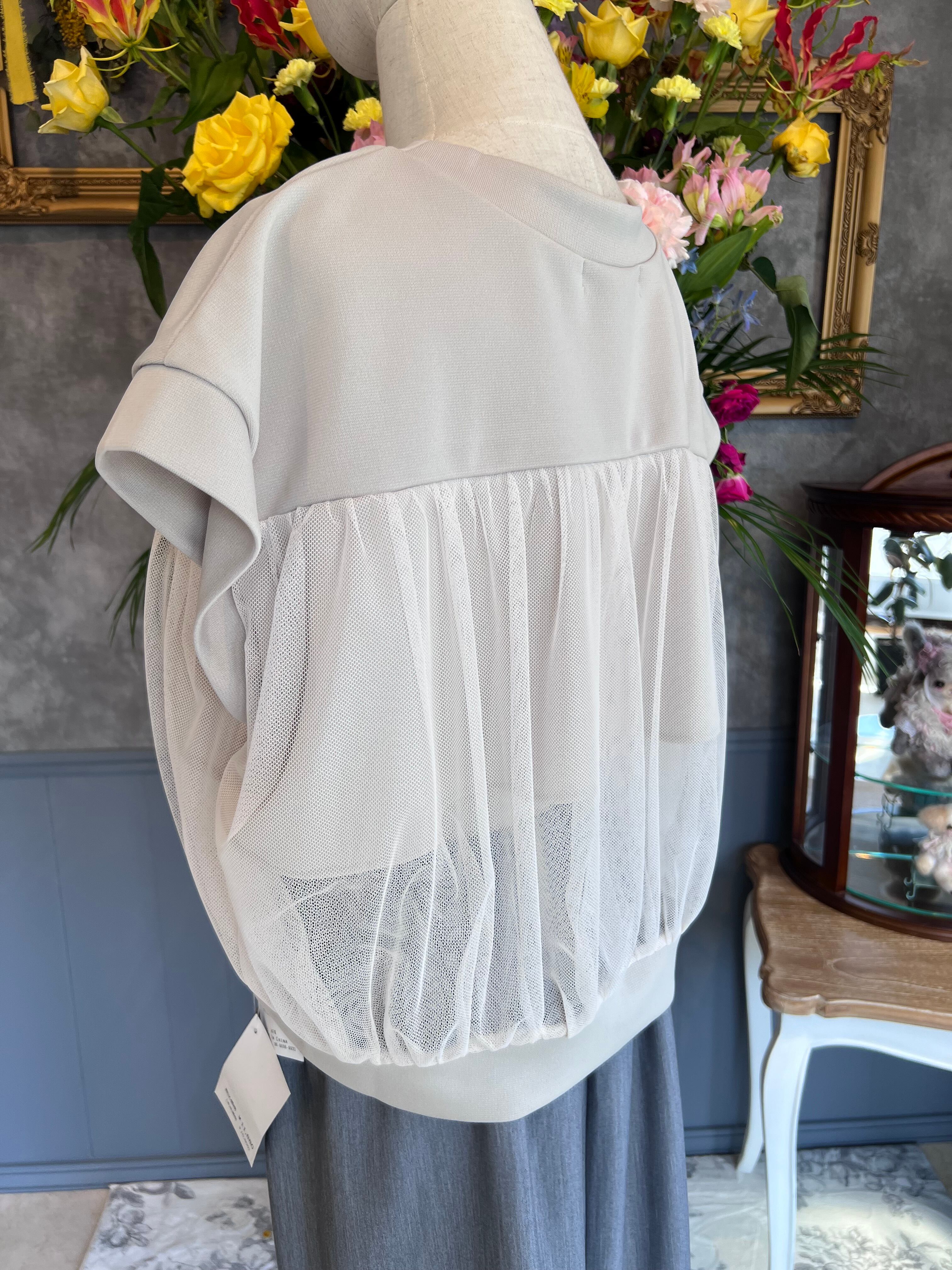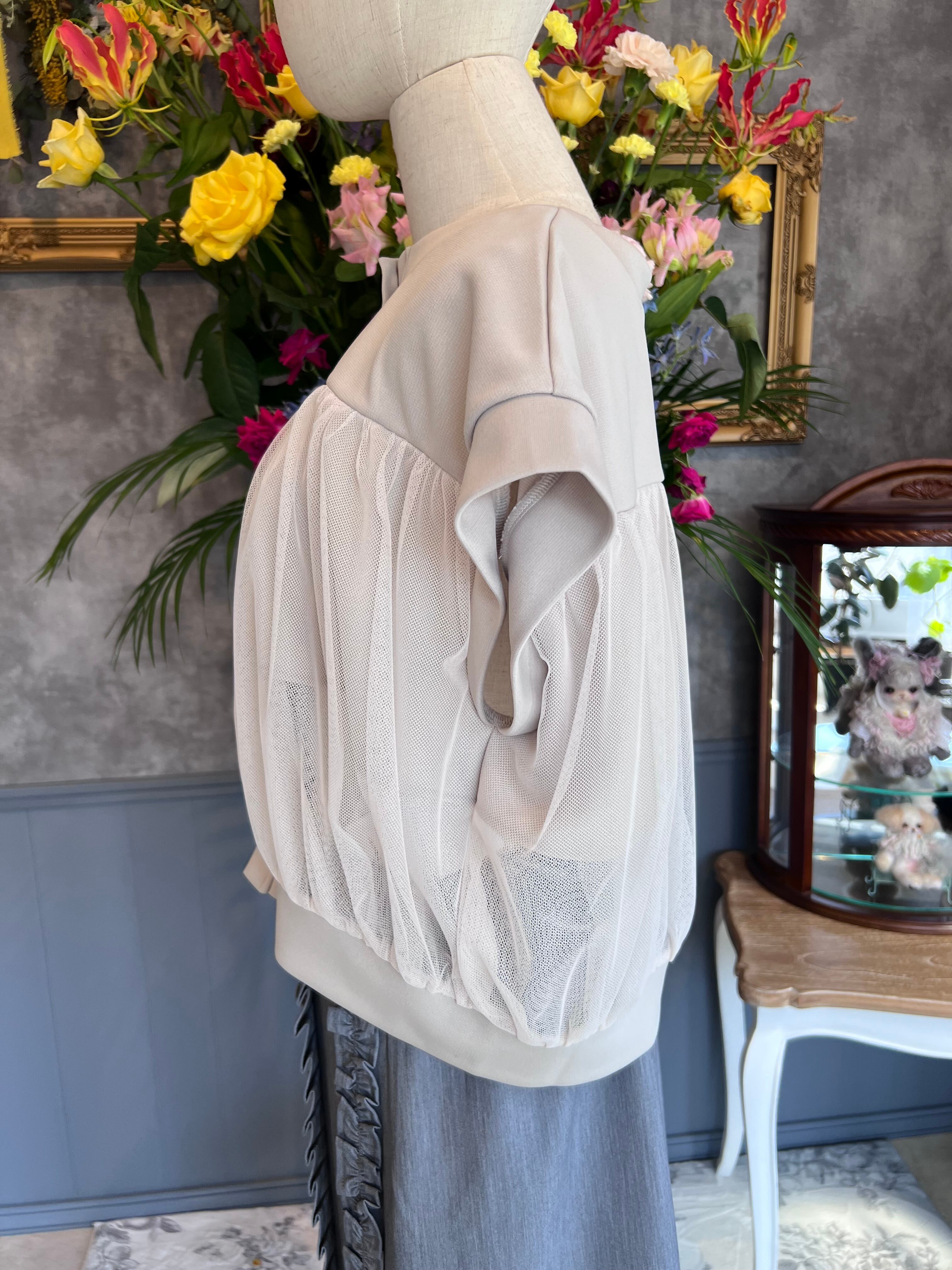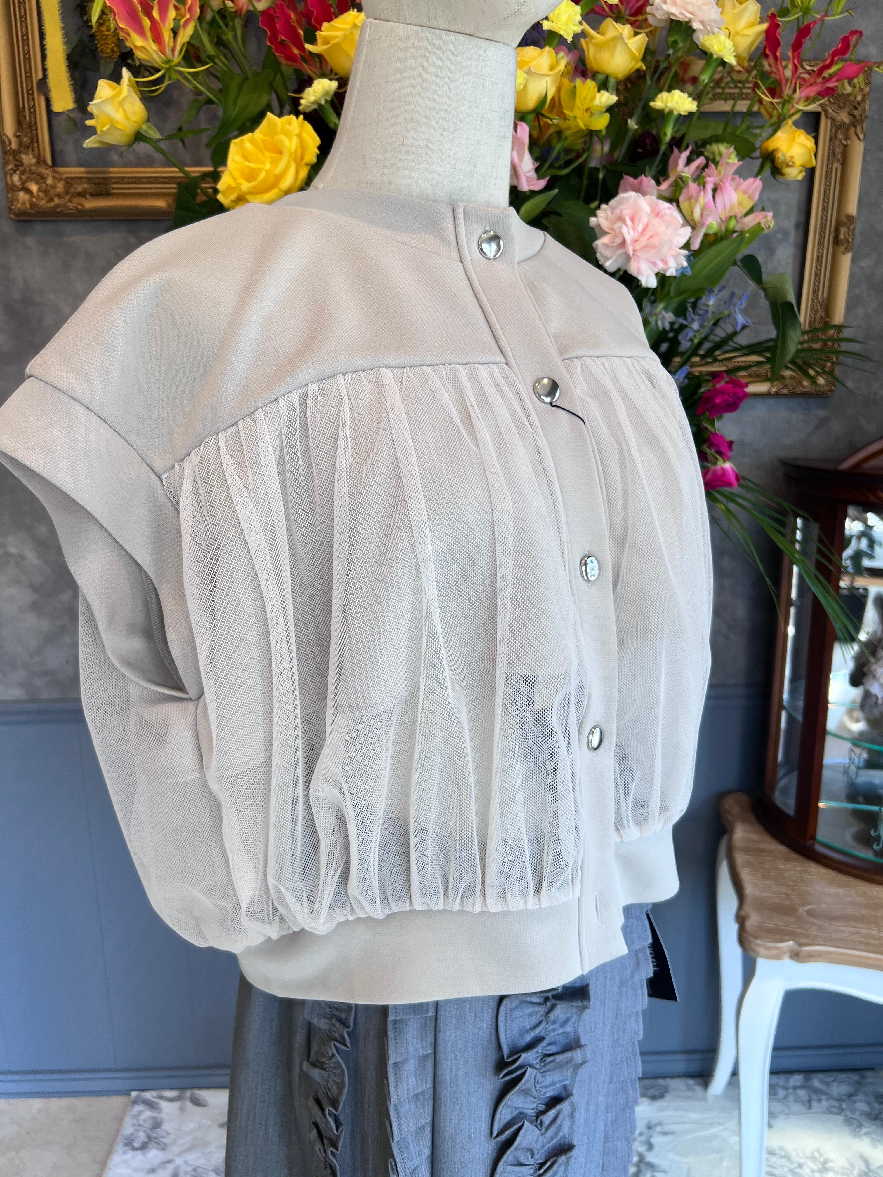 チュール半袖ブルゾン ベージュ
