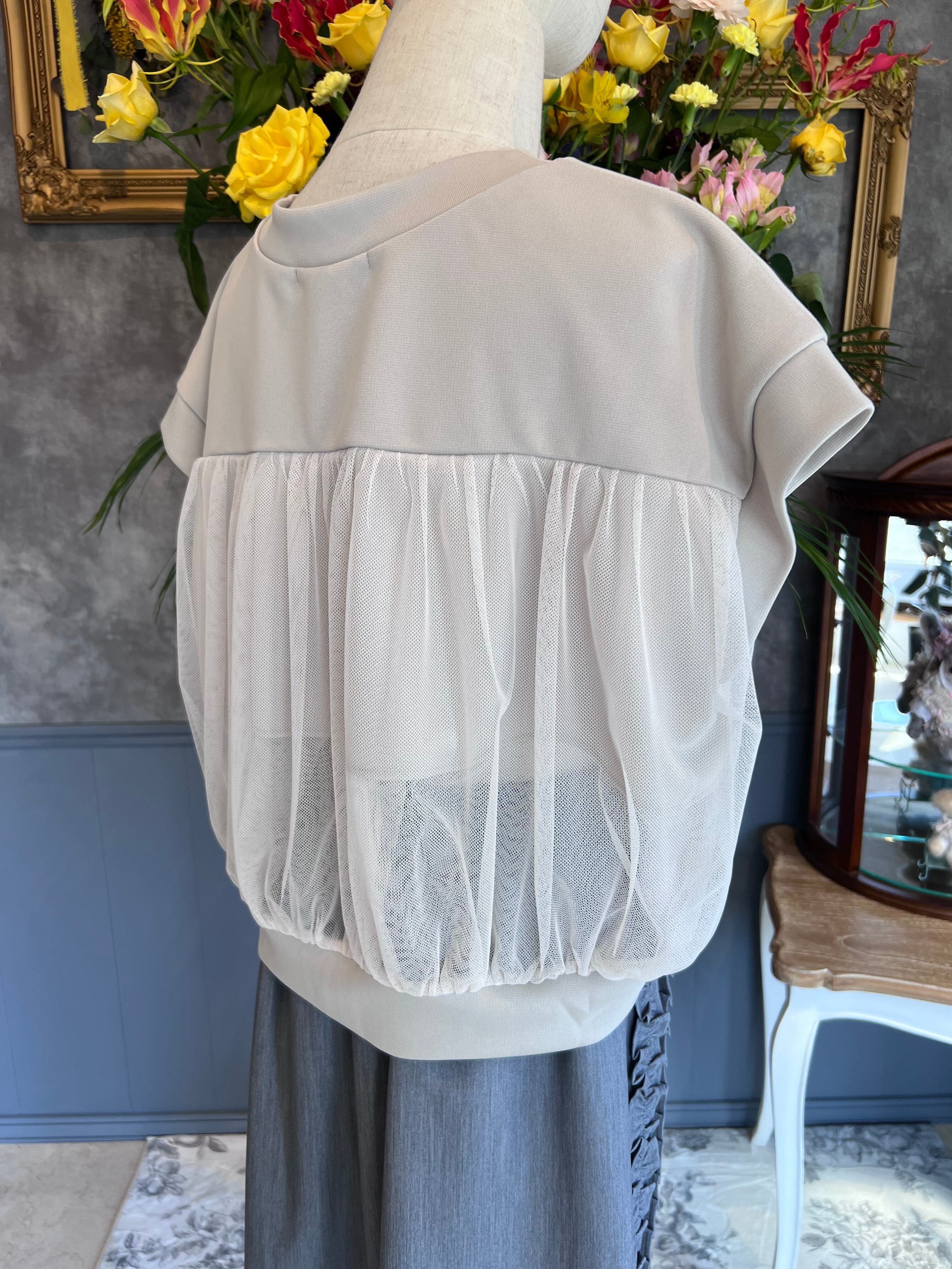 【チュール半袖ベスト ベージュ】