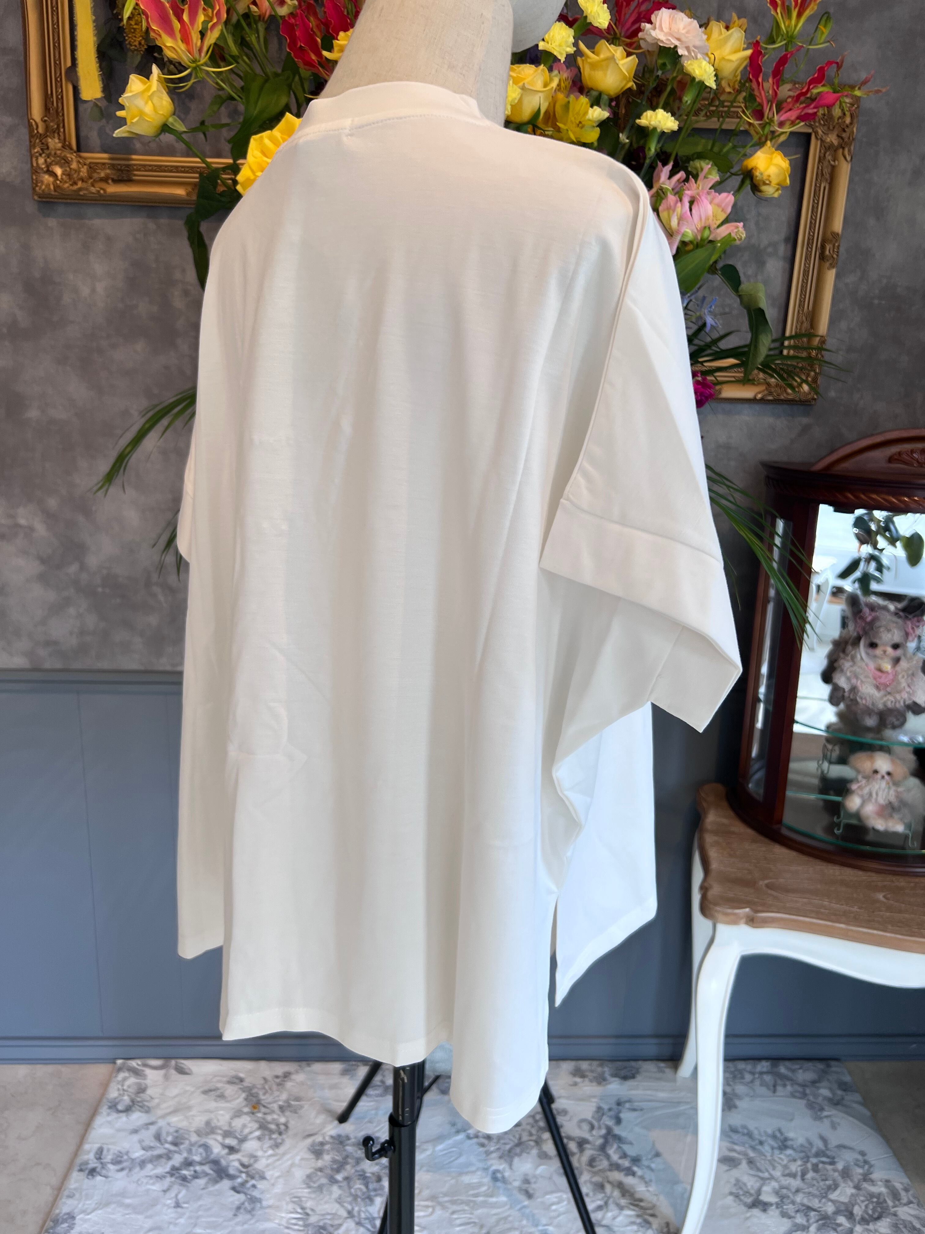 オシャレなホワイトのTシャツに、パール装飾を施した大人のカットソー。