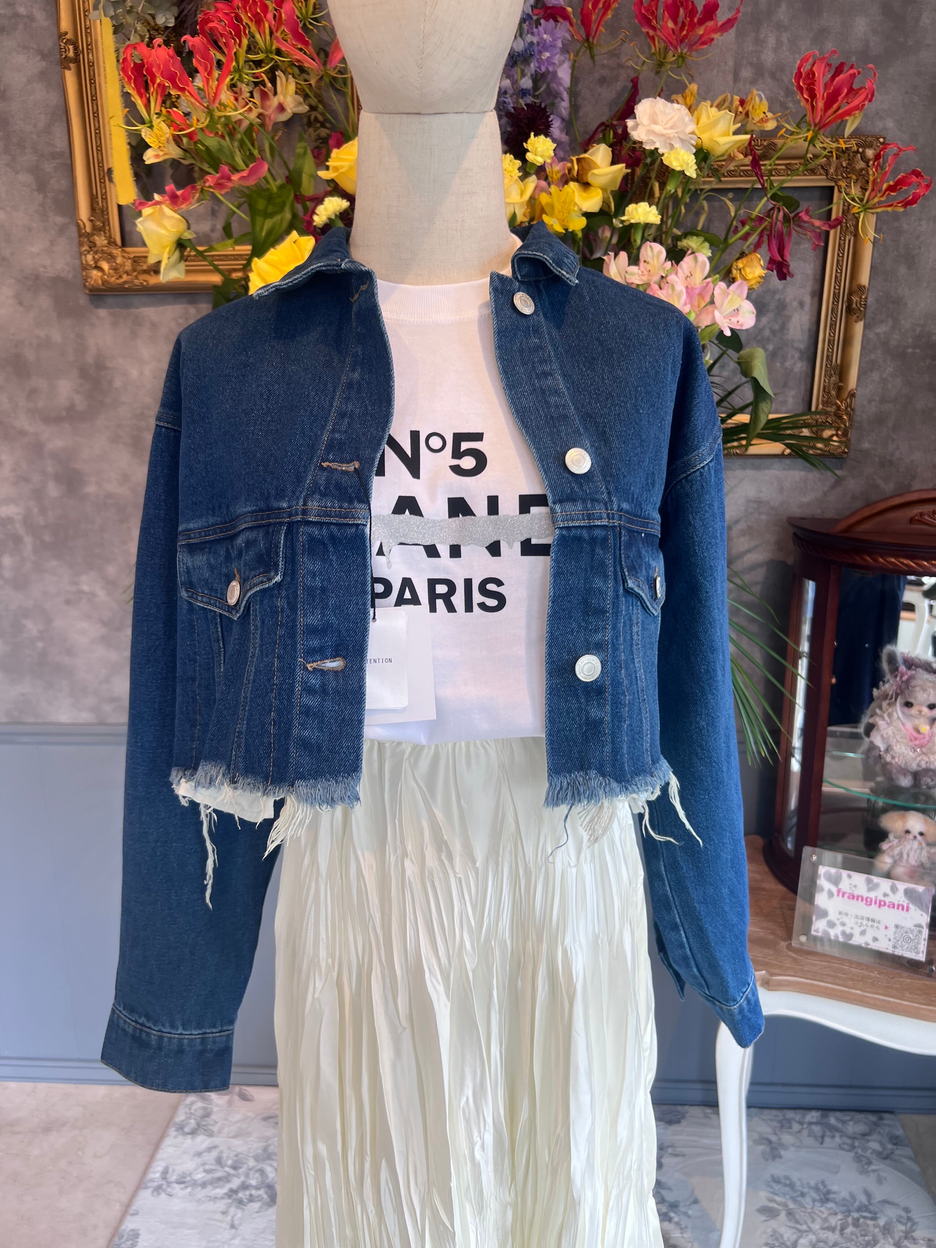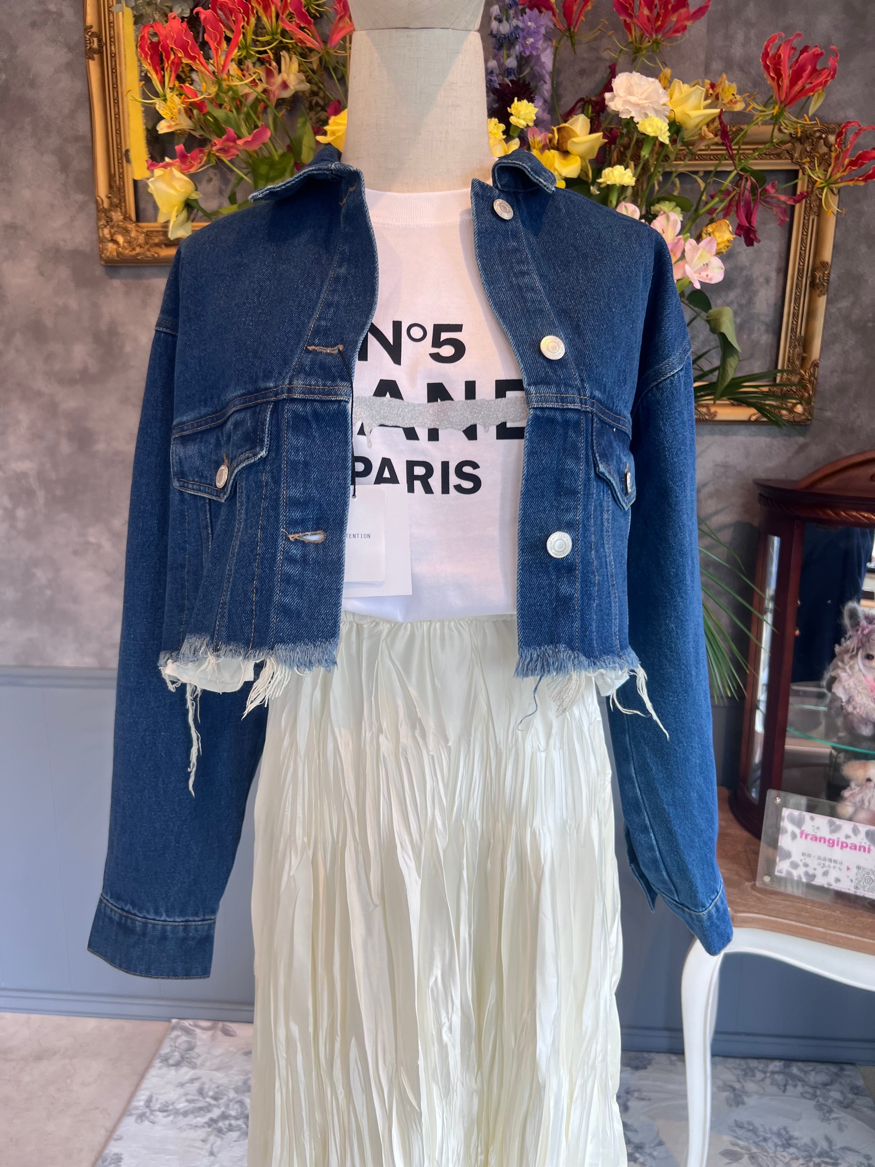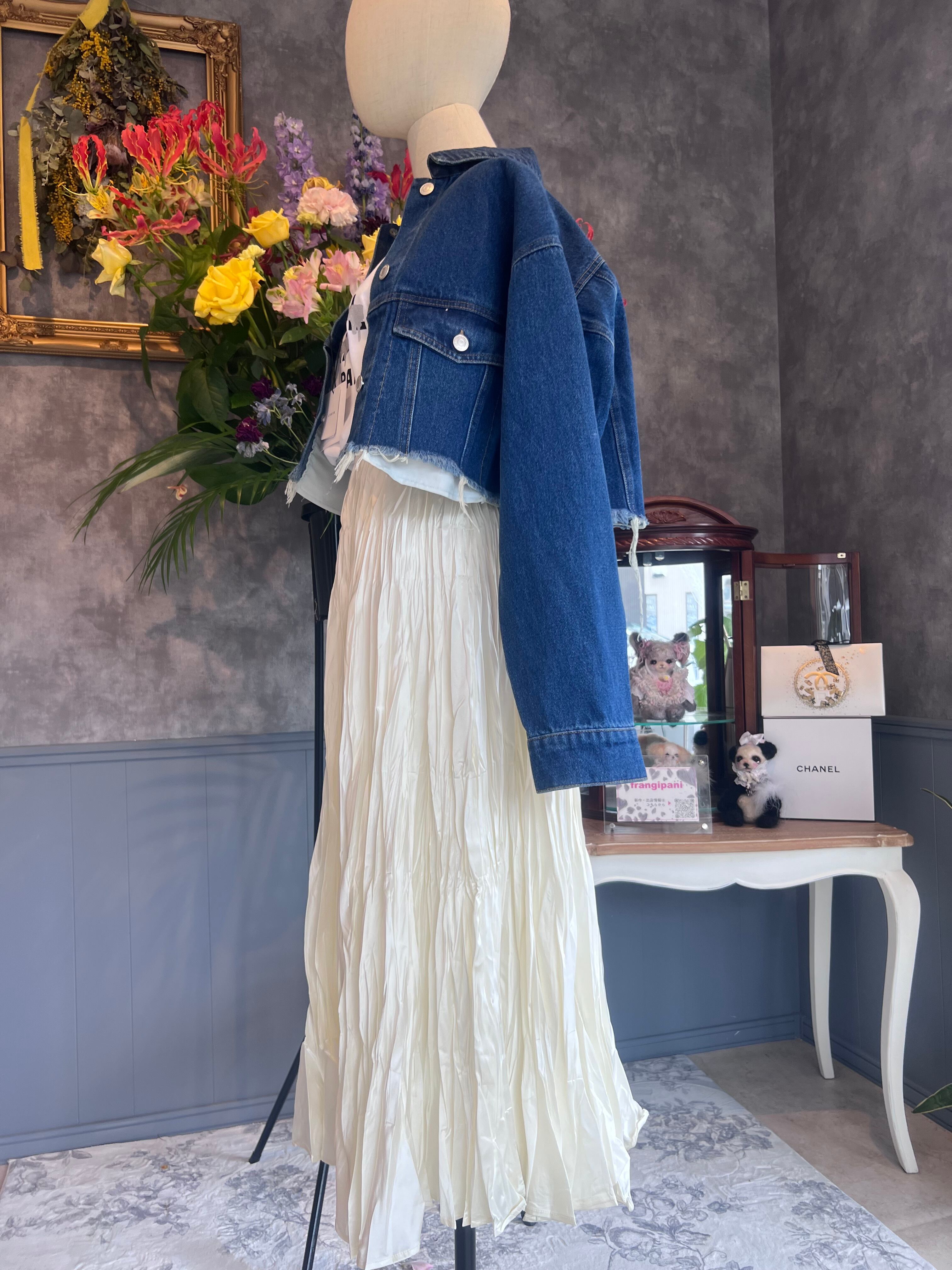 ヴィンテージ感あるデニム素材を使用したクロップドジャケット。