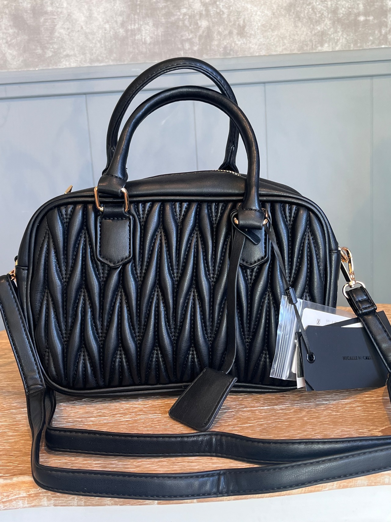 トレンドに敏感な方にぴったりなMICALLEMICALLEバッグ、シックなブラックカラーが魅力的です。