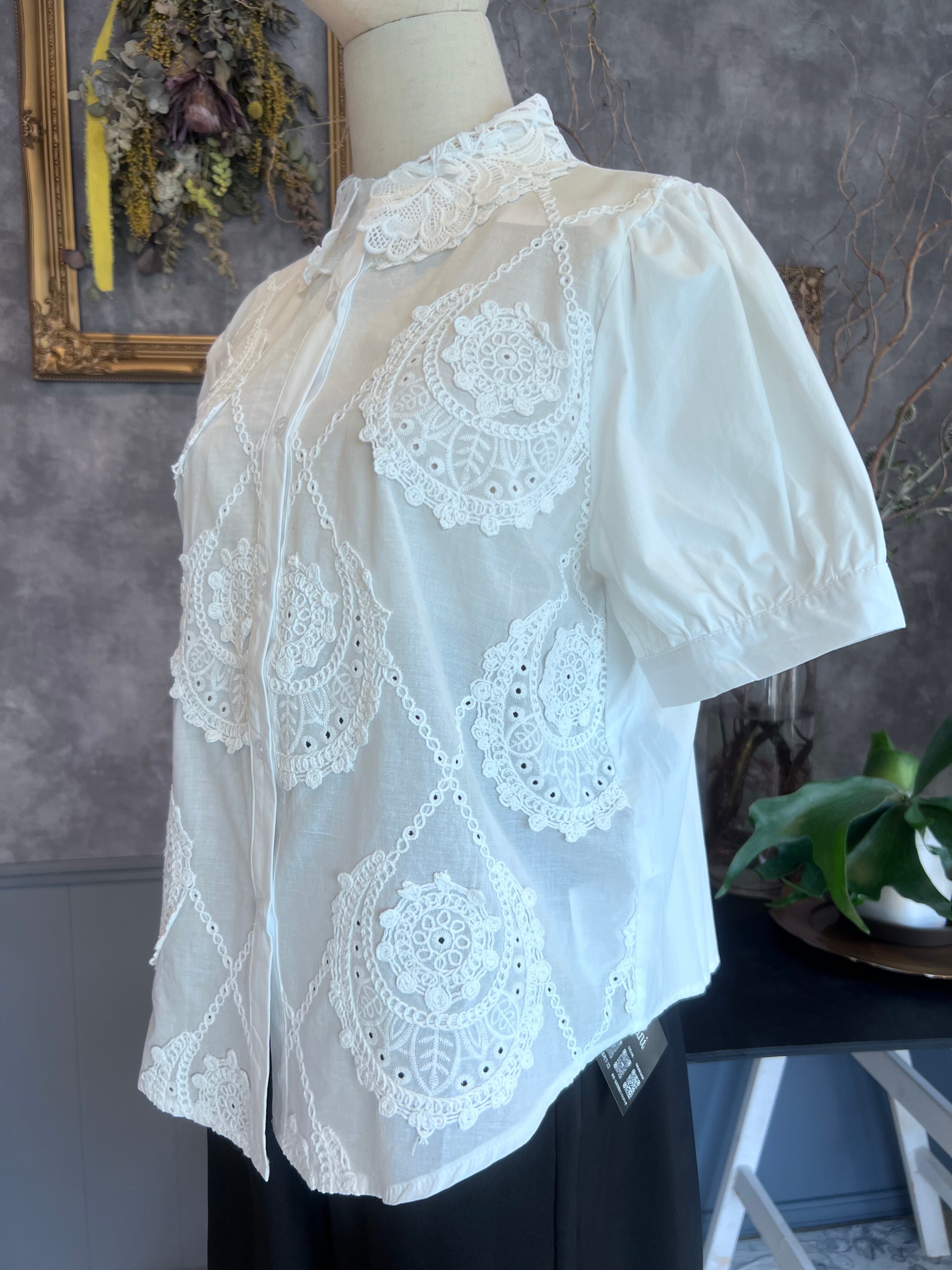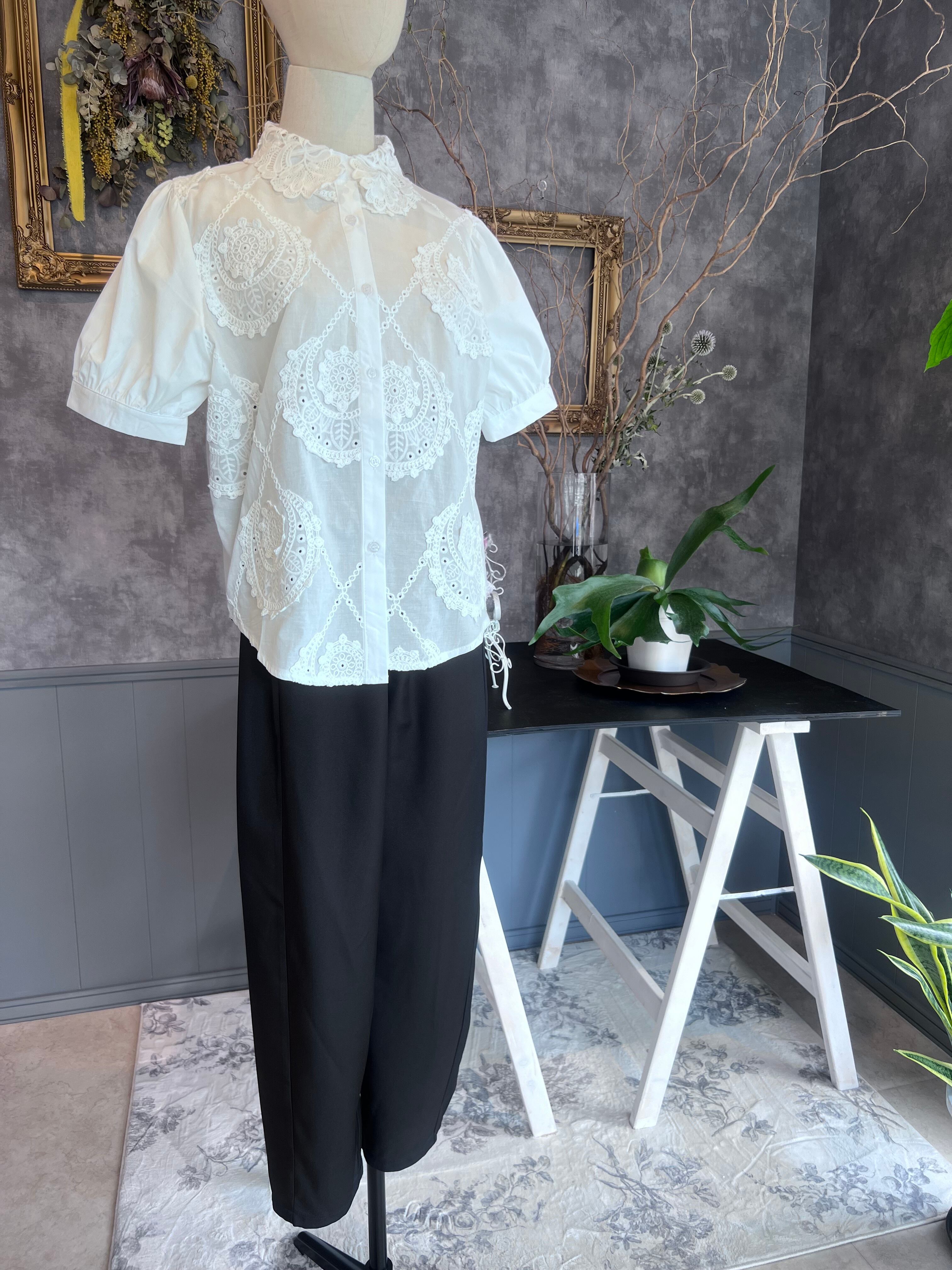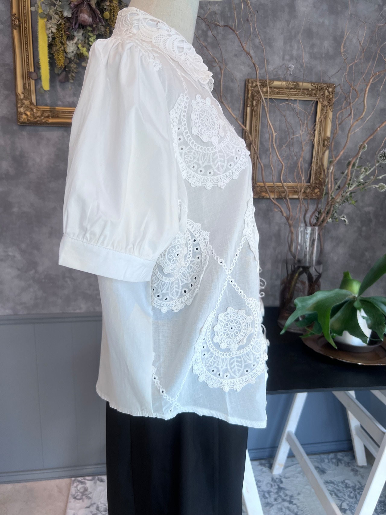 可愛らしさとエレガンスを兼ね備えた、ふんわり袖のレースブラウスです。