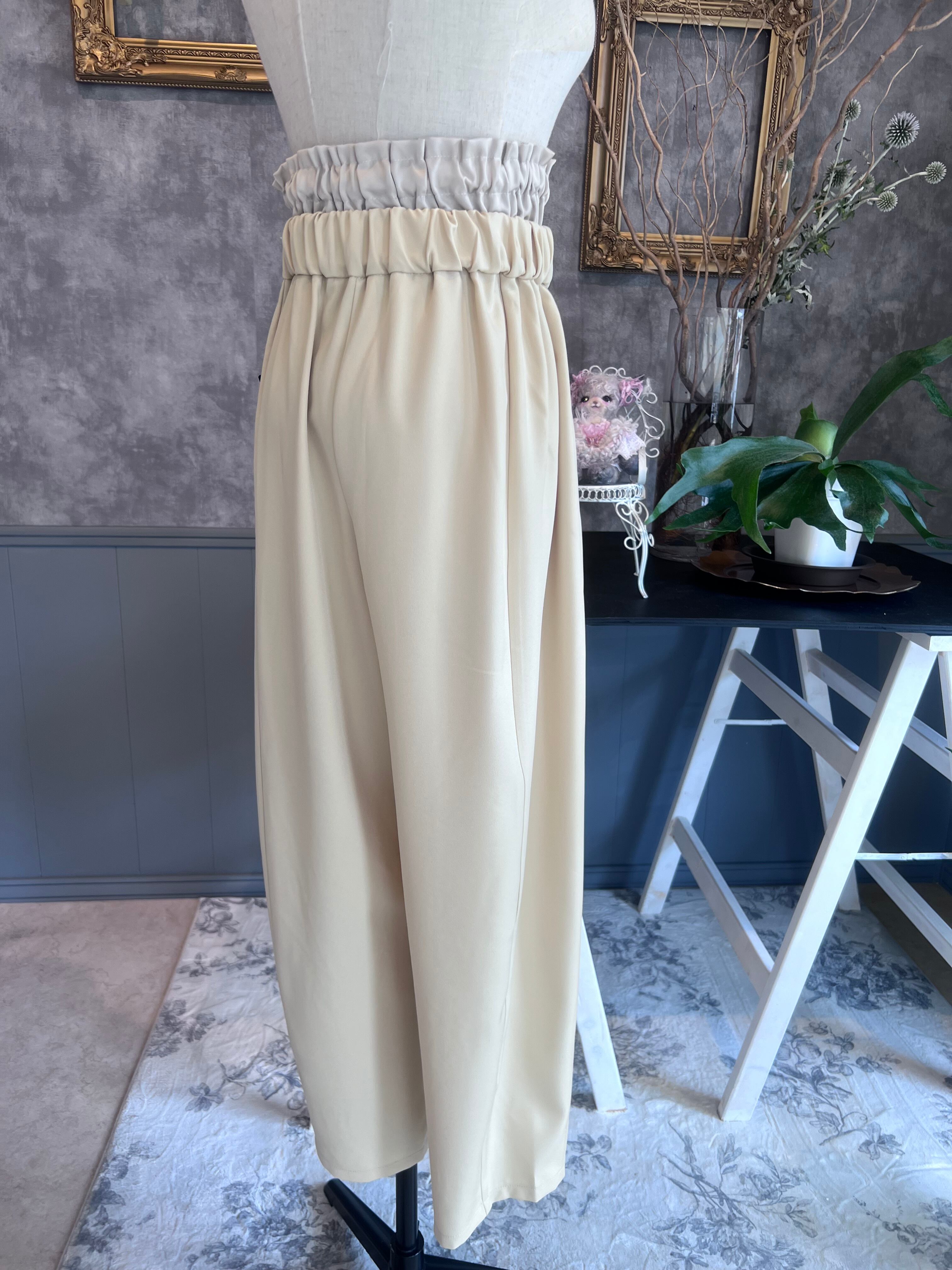脚のラインを拾わない美しいシルエットが魅力で、動くたびに優雅な印象を与えます。
