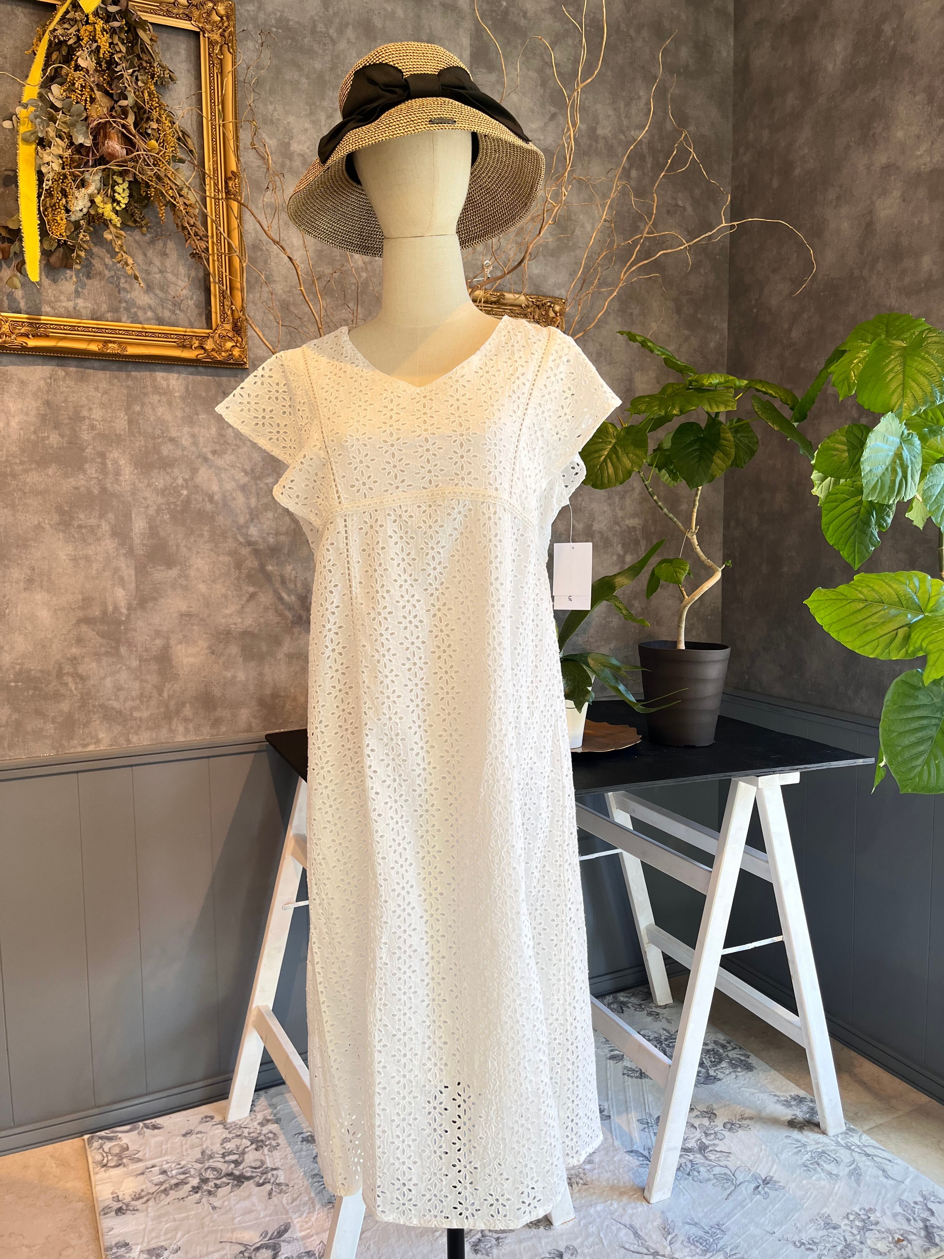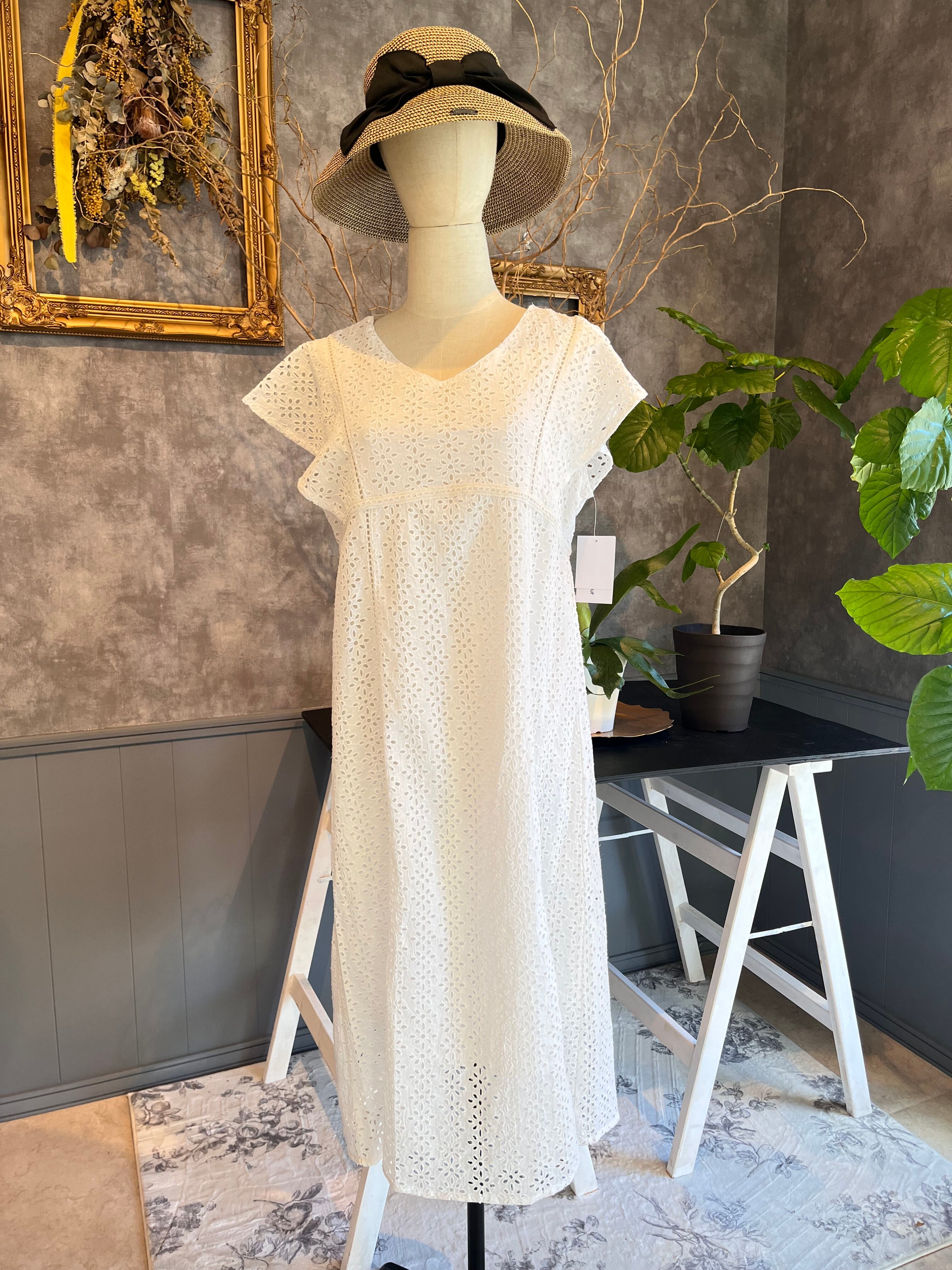 レースカットワーク ワンピース ホワイト