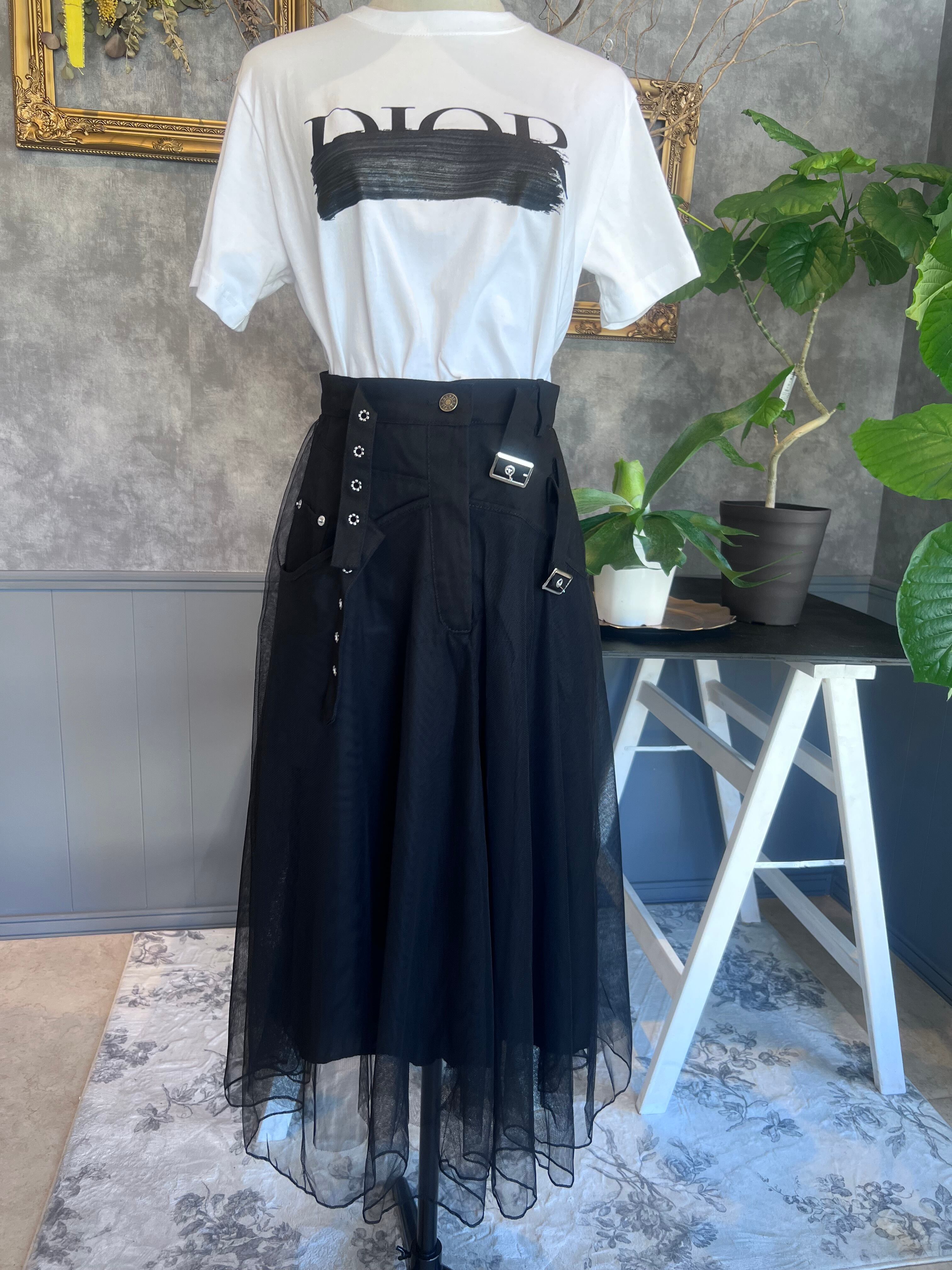 洗練されたおしゃれなデザインが魅力の「ベルトデザイン チュールスカート 」