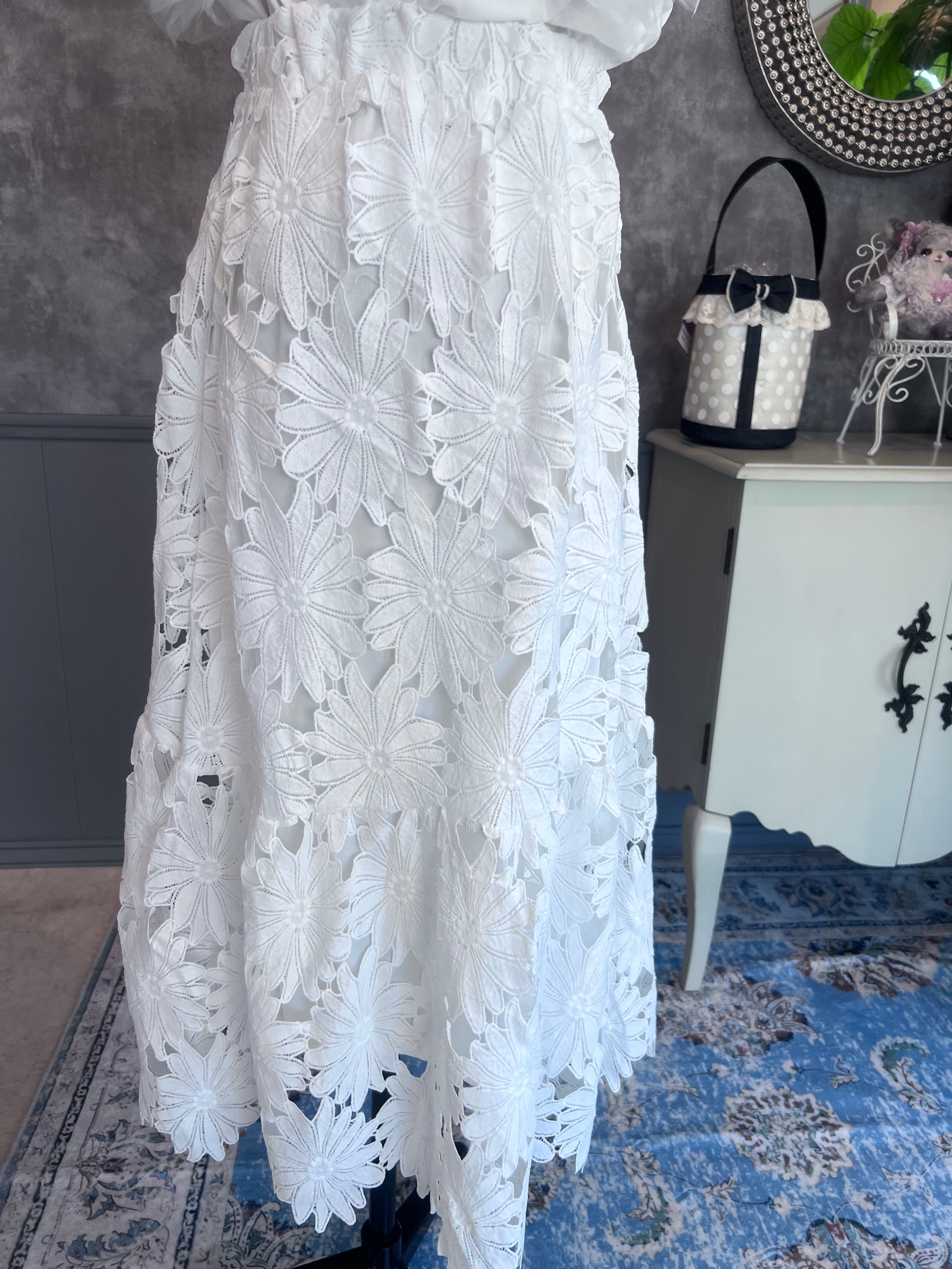 フラワーカットレース スカート White