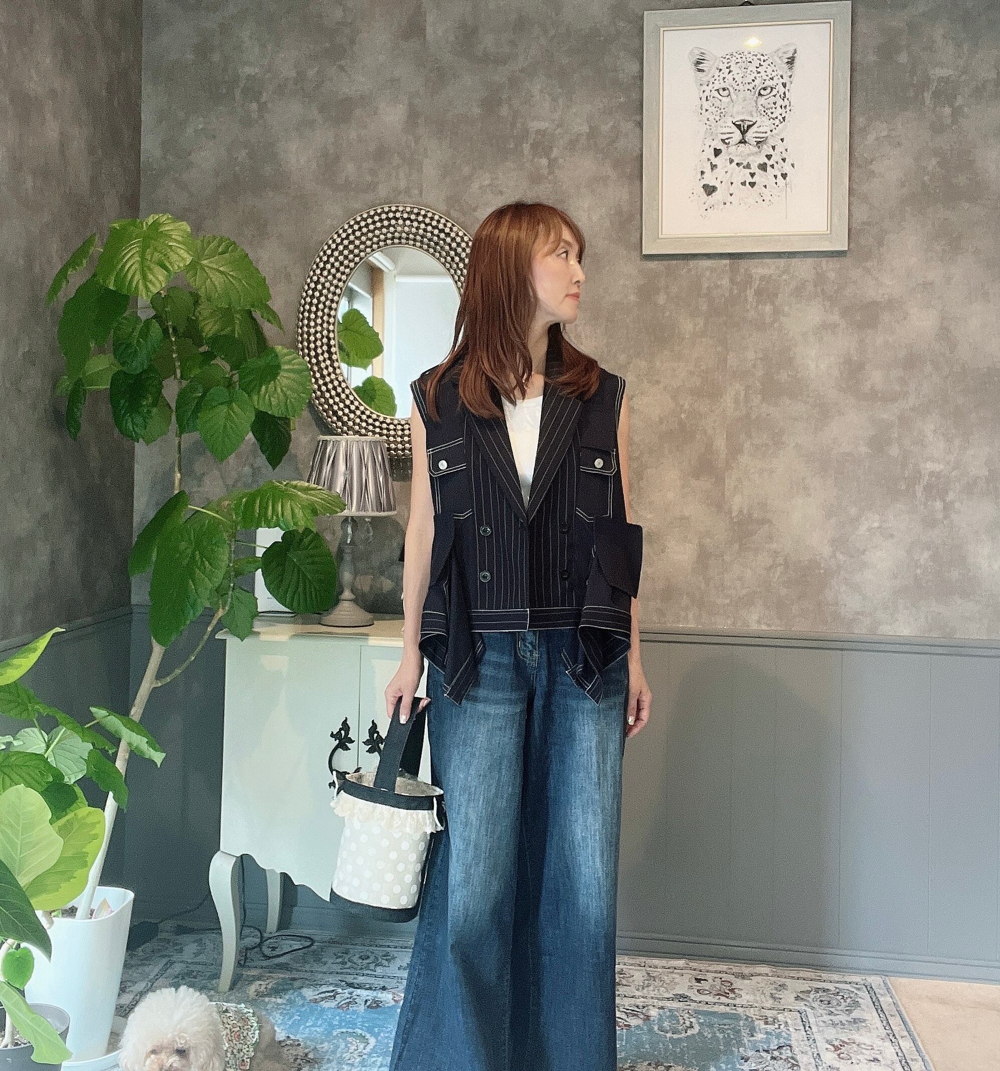 やや腰上のハイウエストでウエスト周りをすっきりと見せつつ、脚長効果も◎