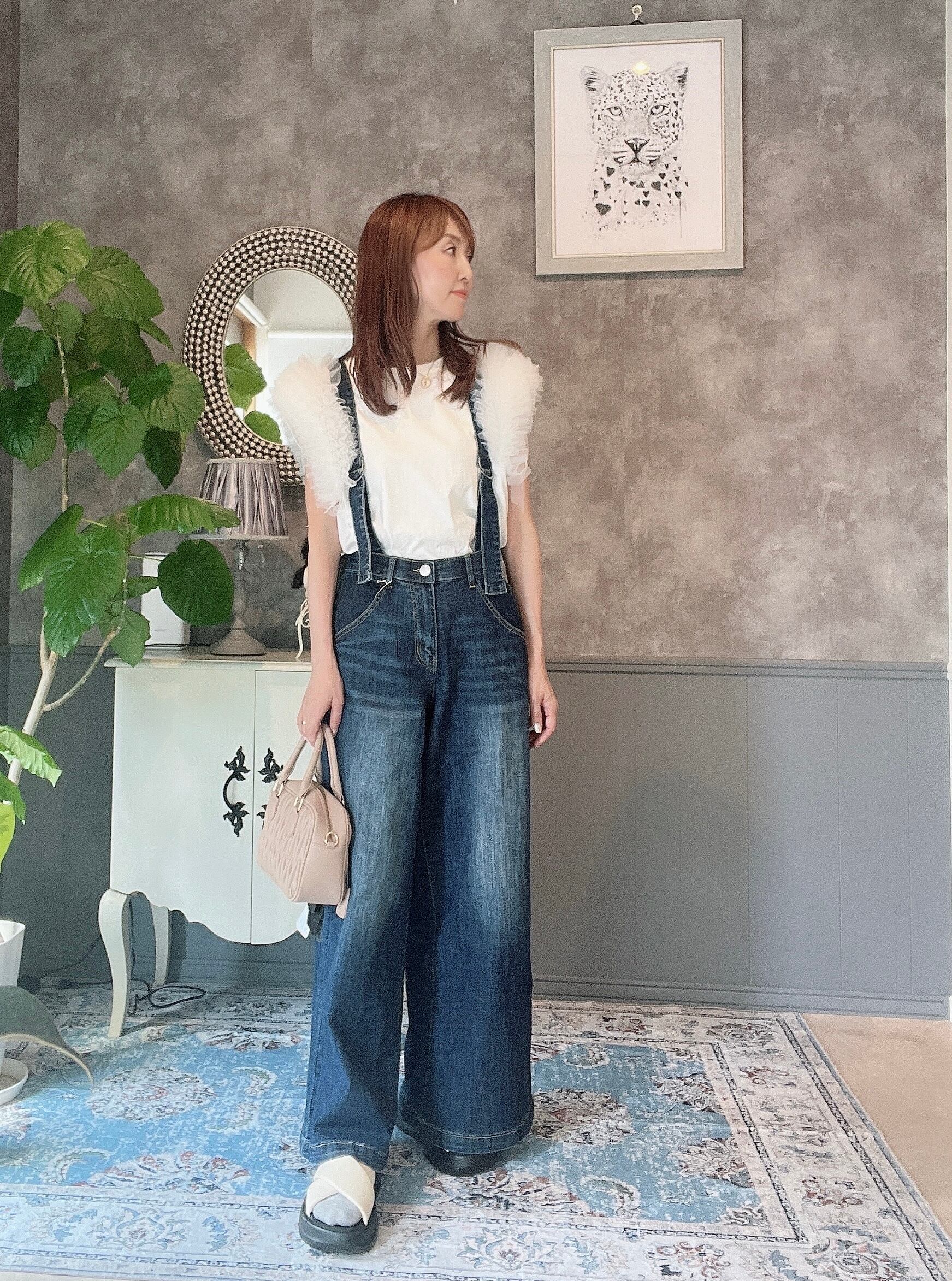 伸縮性に富んだストレッチデニムを使用している為、お腹周り・ヒップの締め付けも軽減されています。