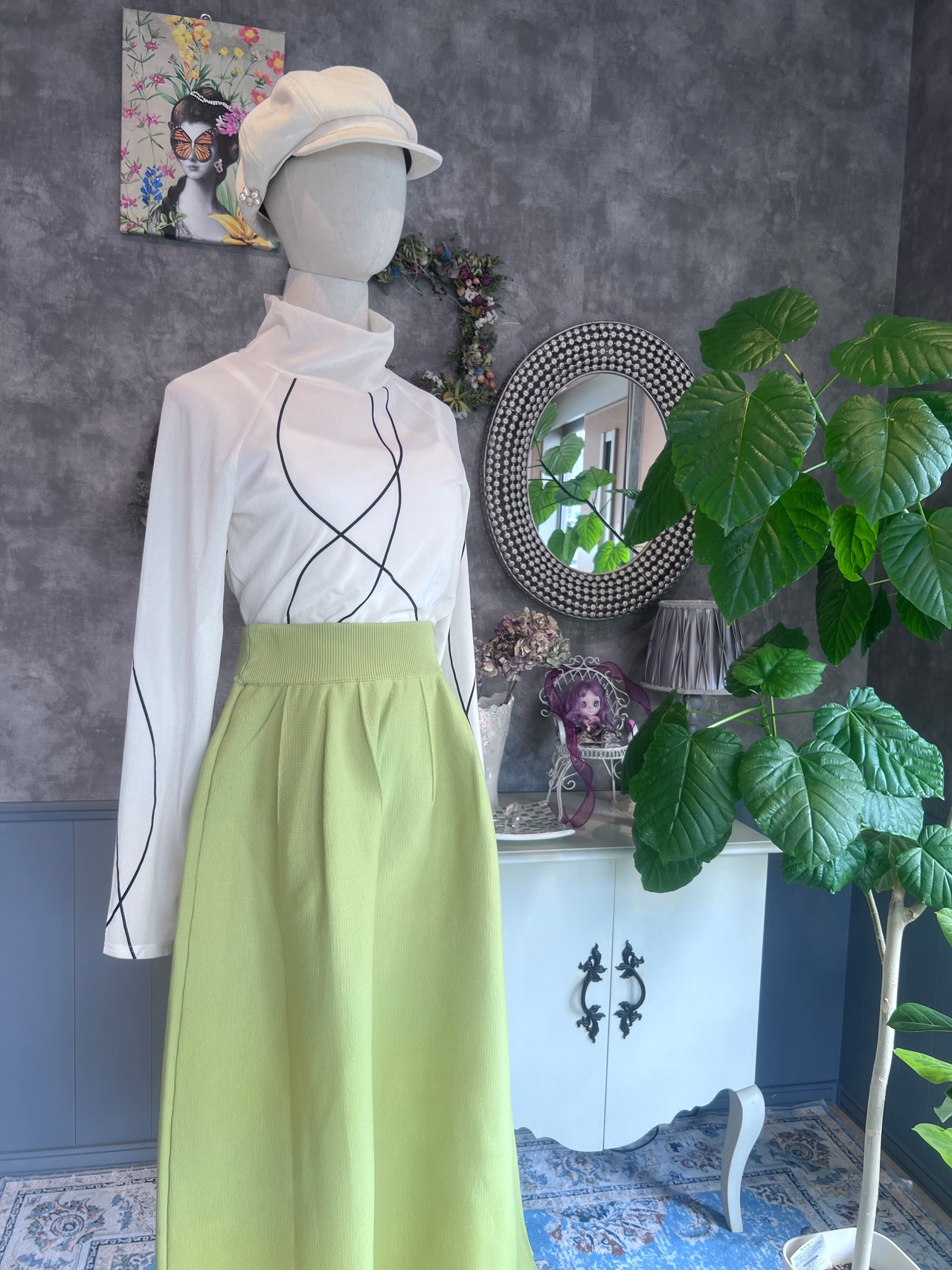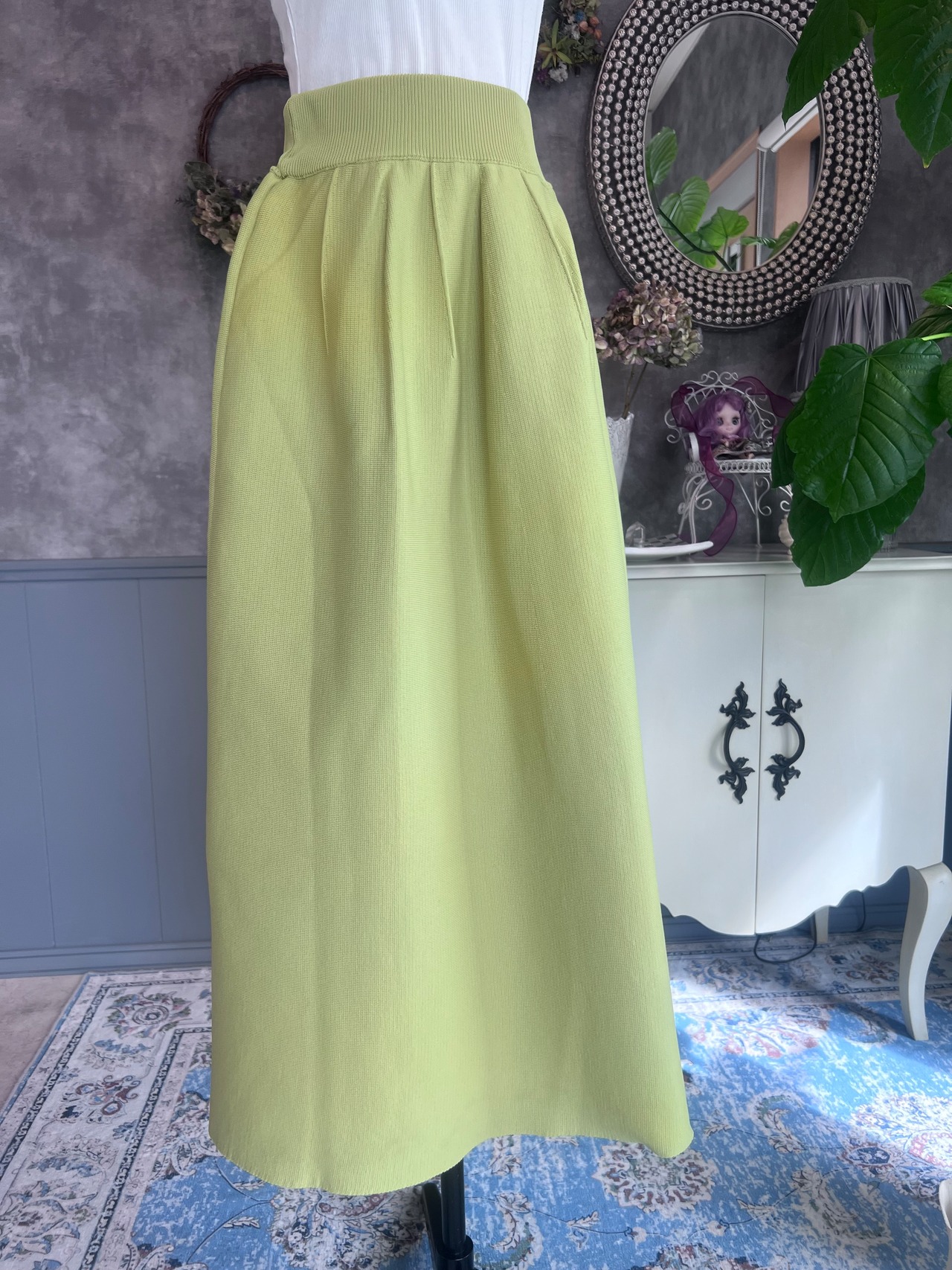 ・軽いニット素材を使用し、快適な着心地を提供するおしゃれなスカートです。