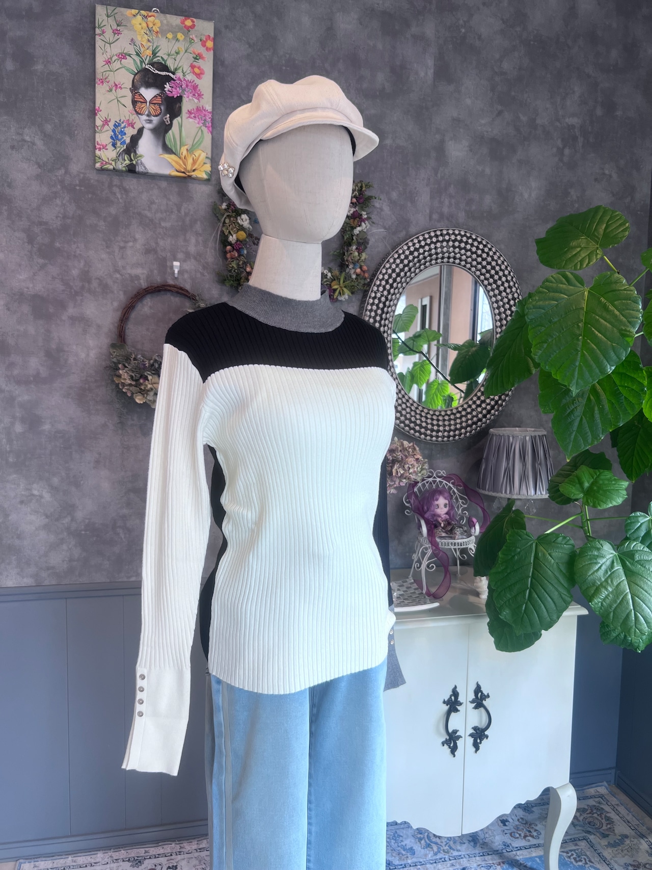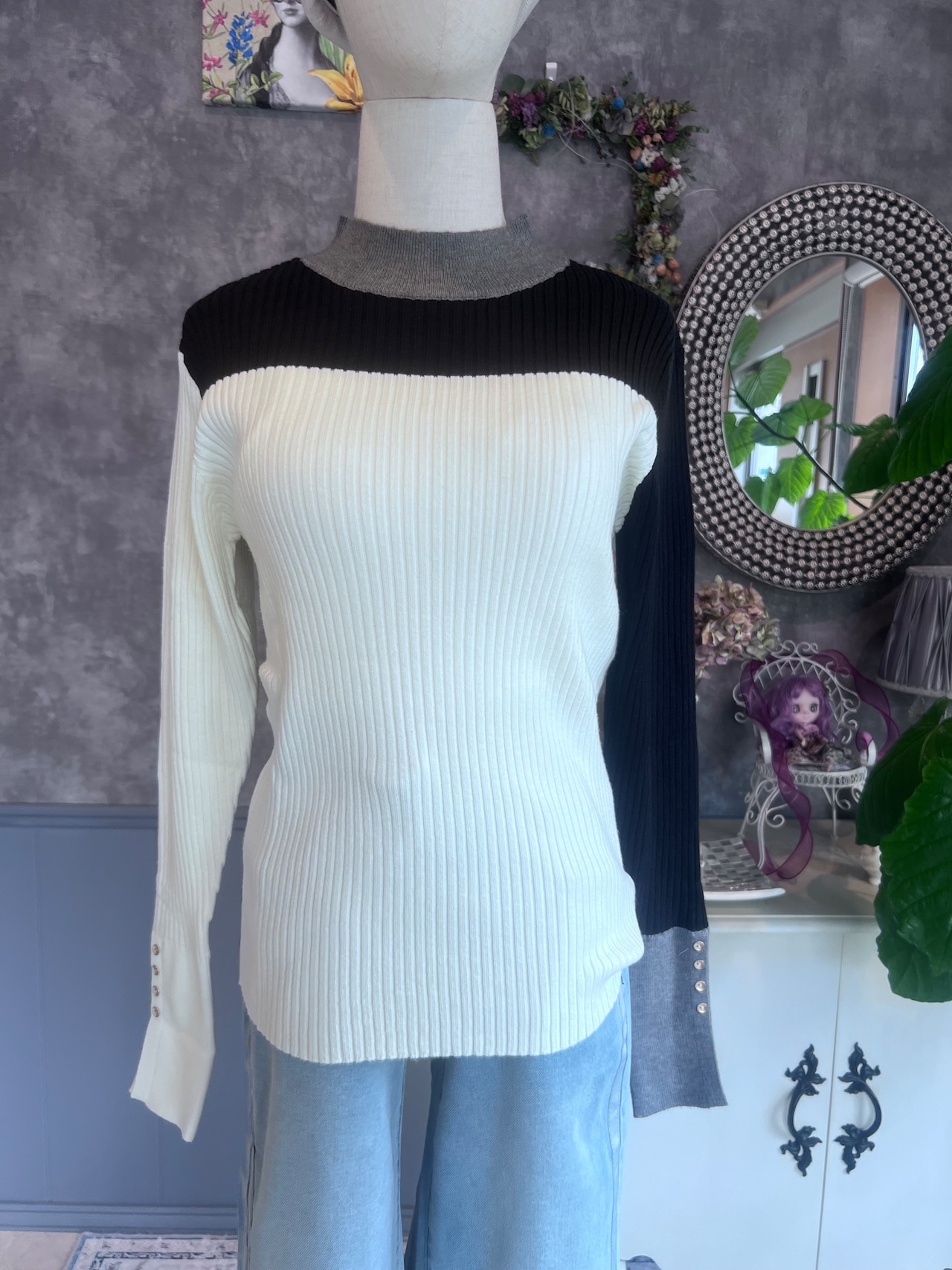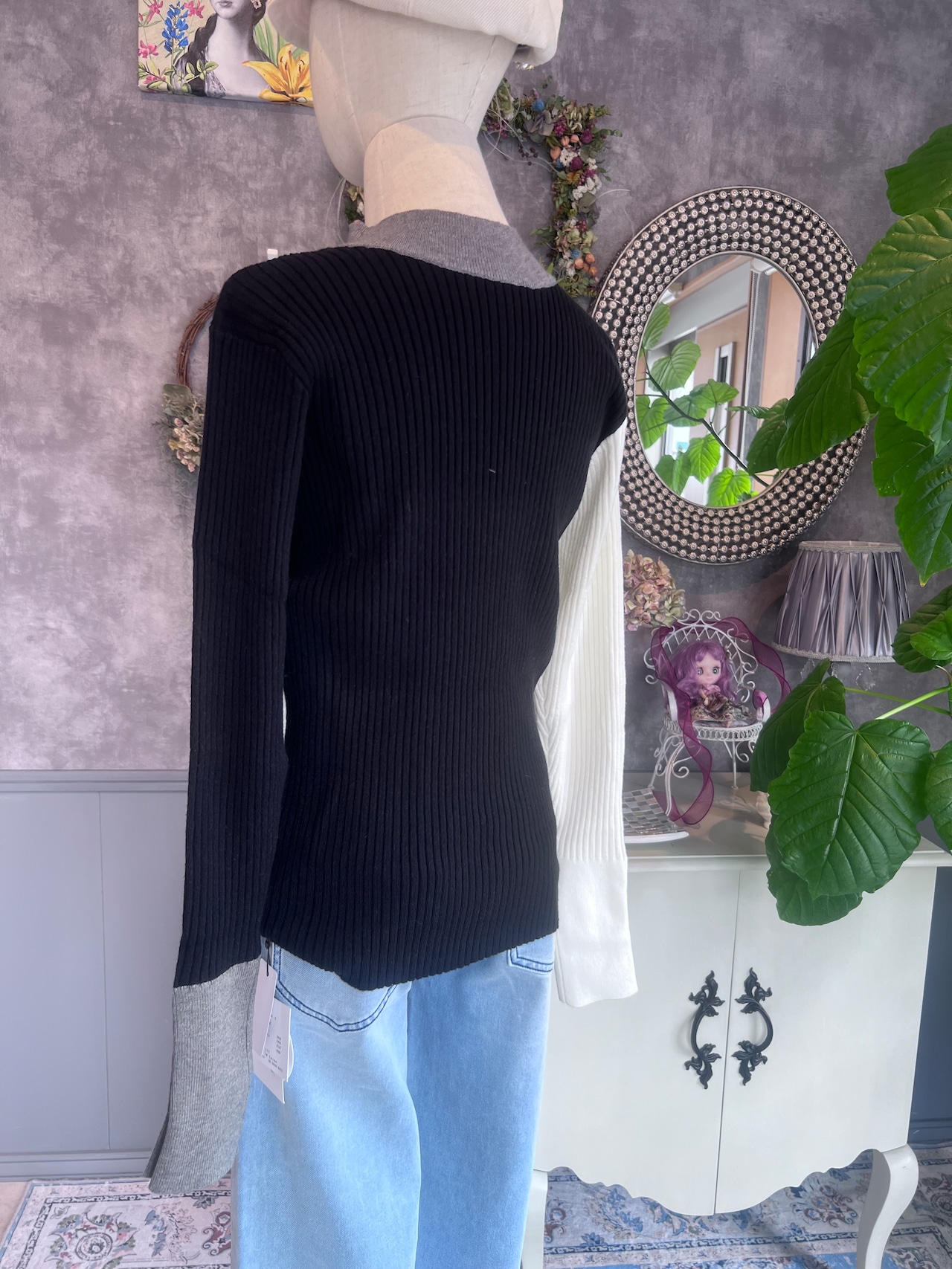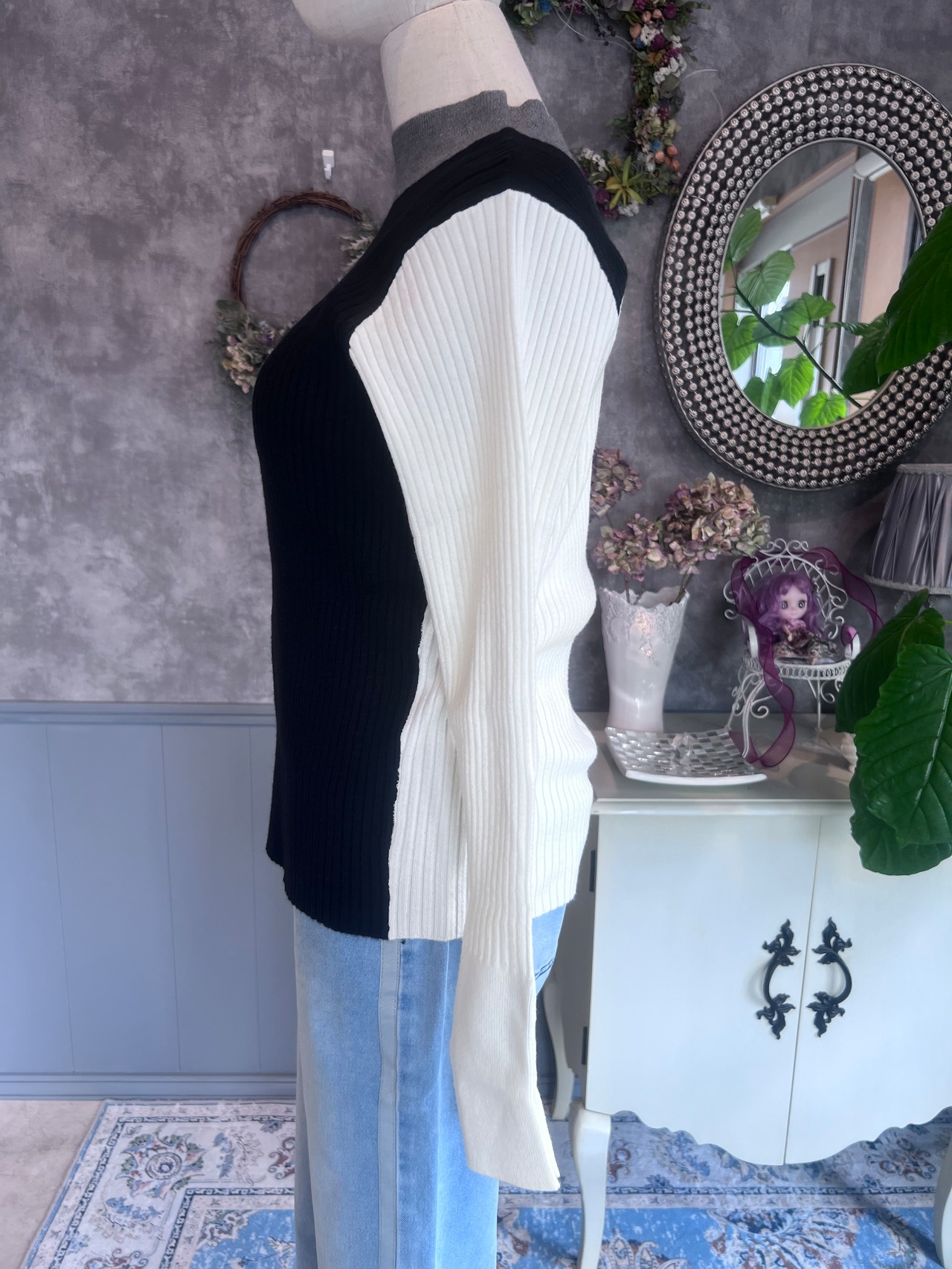 ・前後2wayで楽しめるデザインが魅力のバイカラーリブニットです。