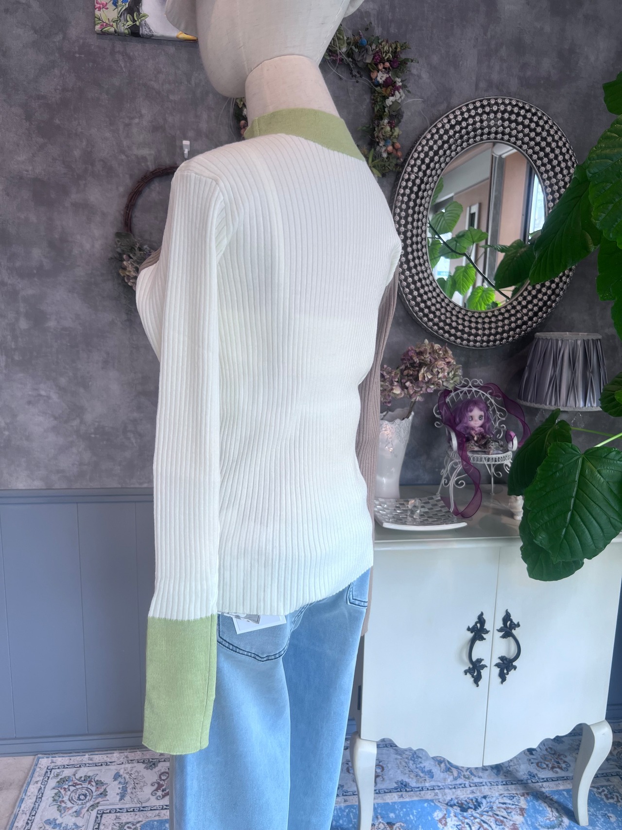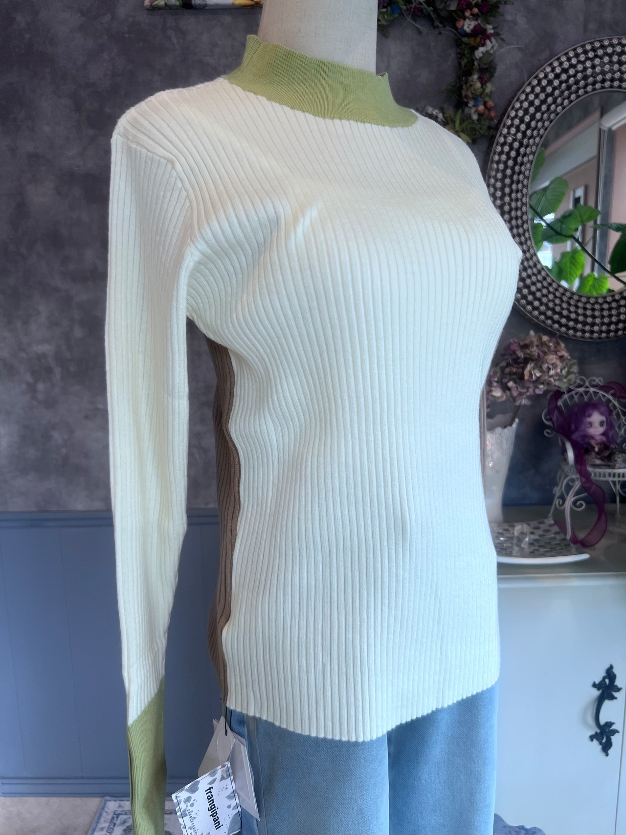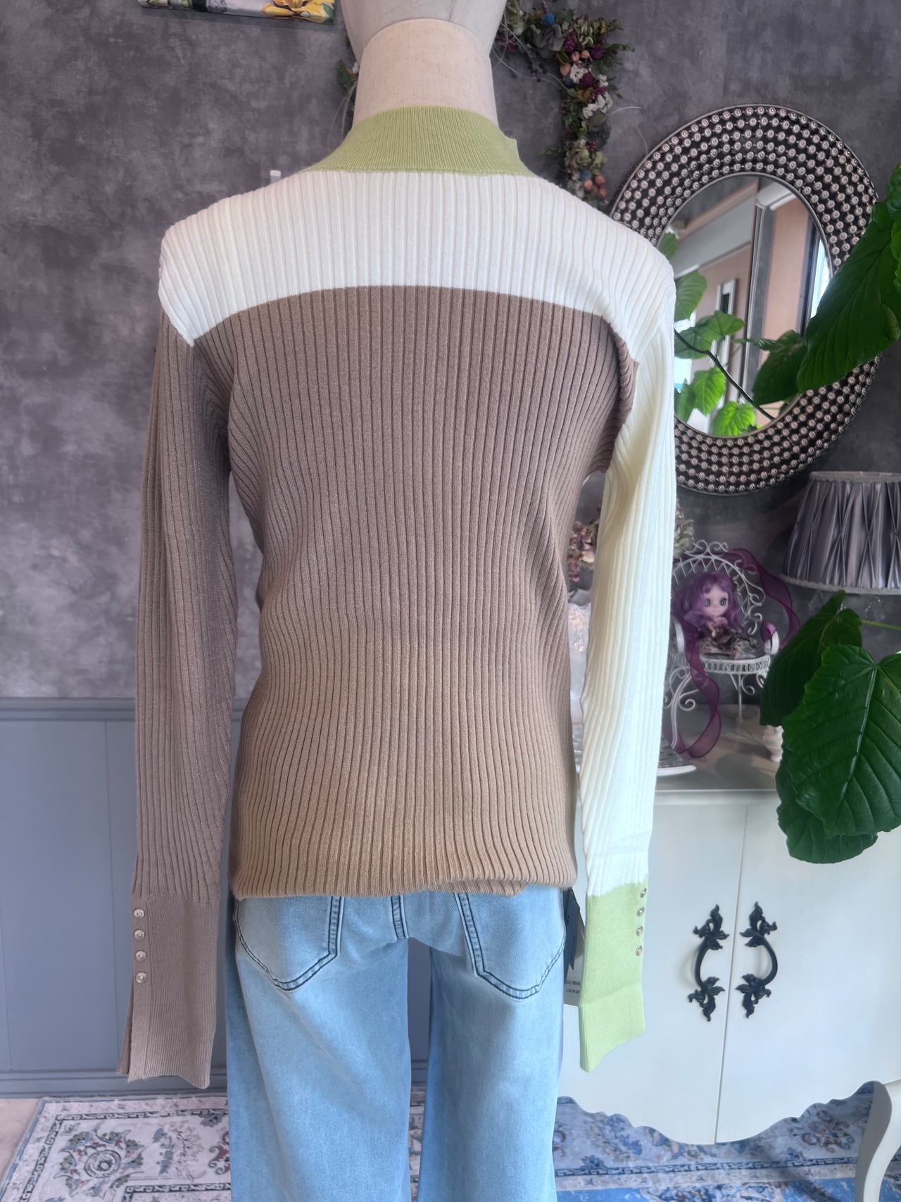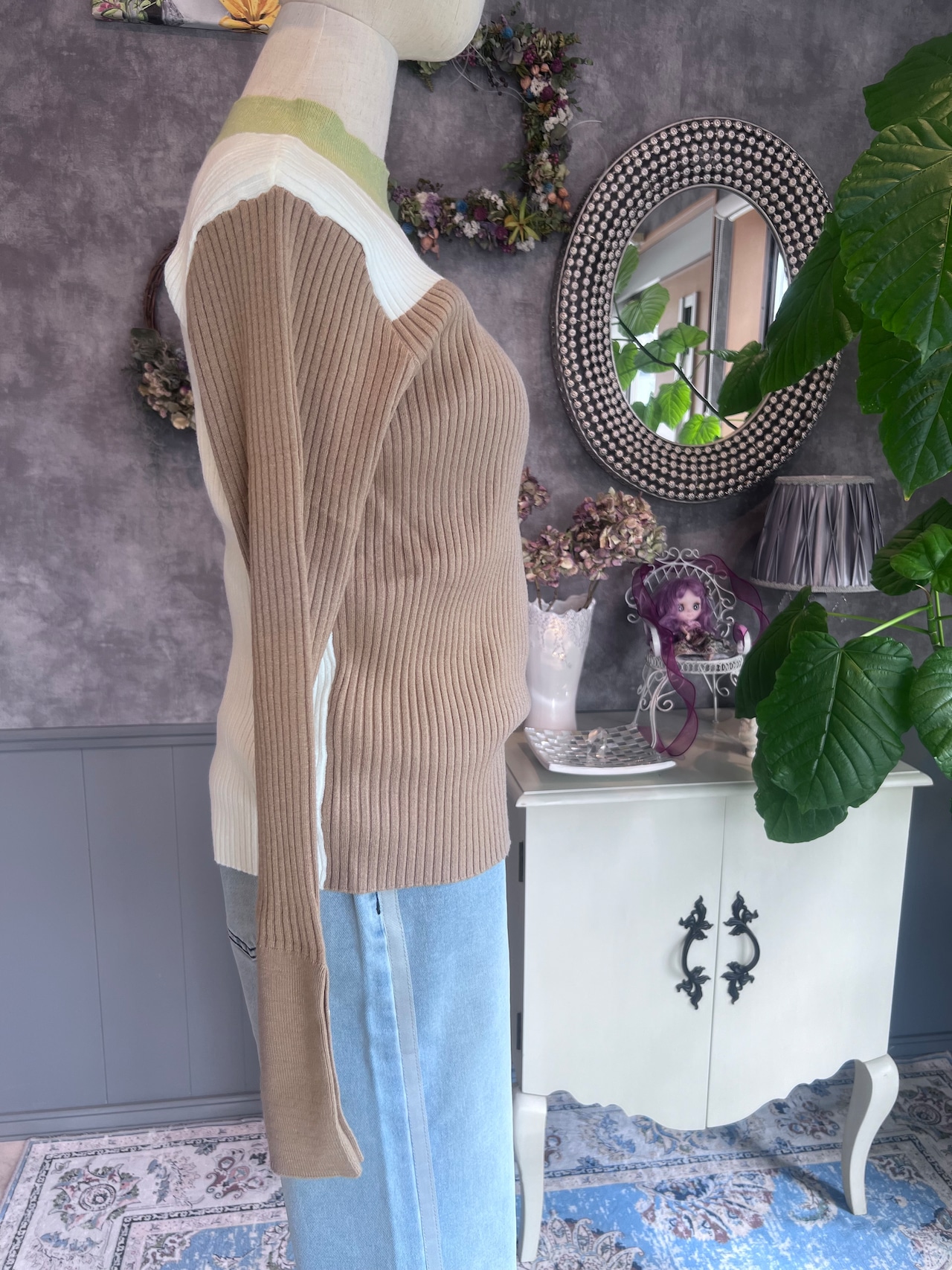 ・前後2wayで楽しめるデザインが魅力のバイカラーリブニットです。
