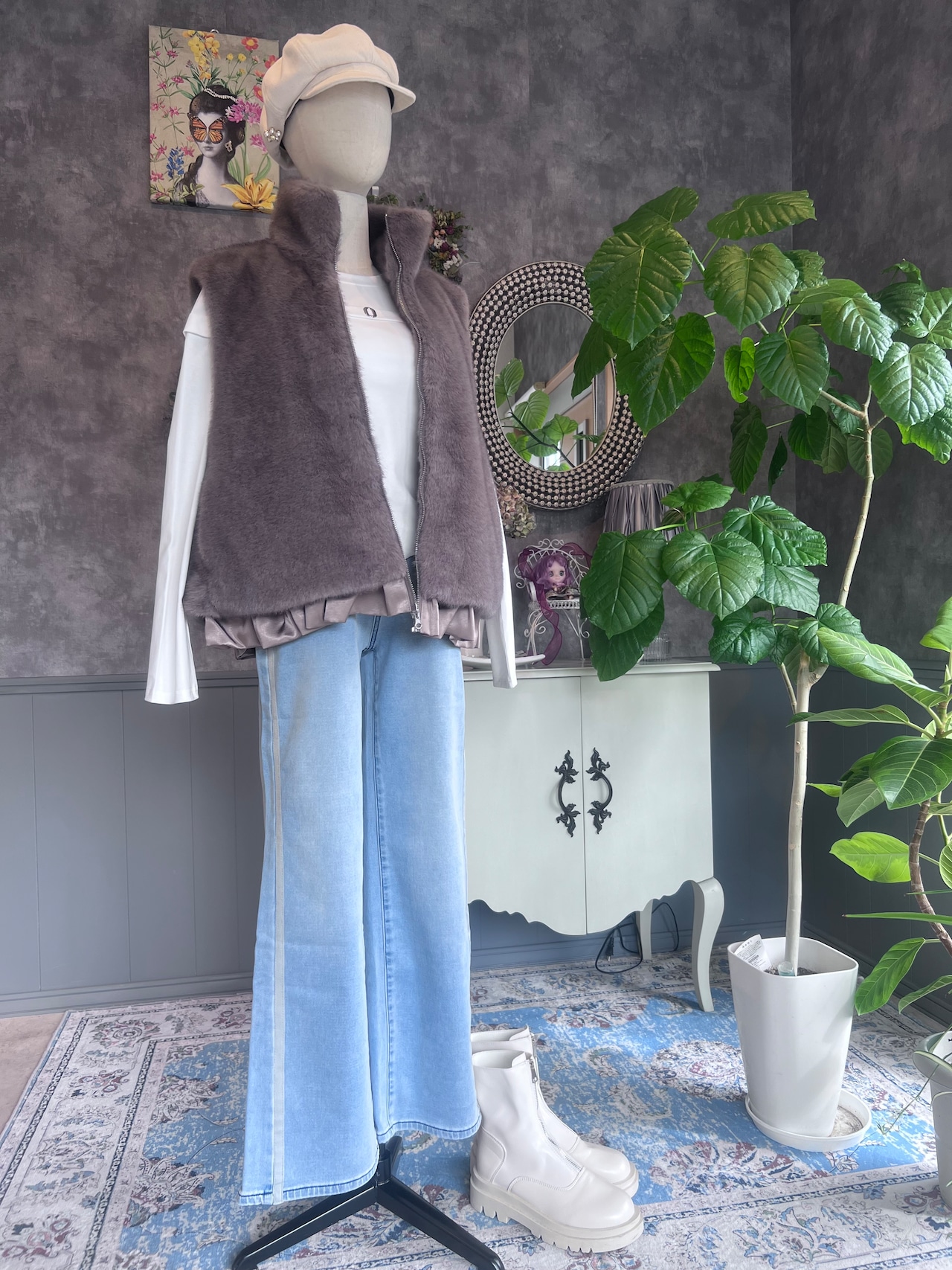 ・フワフワのエコミンクファーが魅力的な、着るだけでおしゃれな印象を与えるベストです。