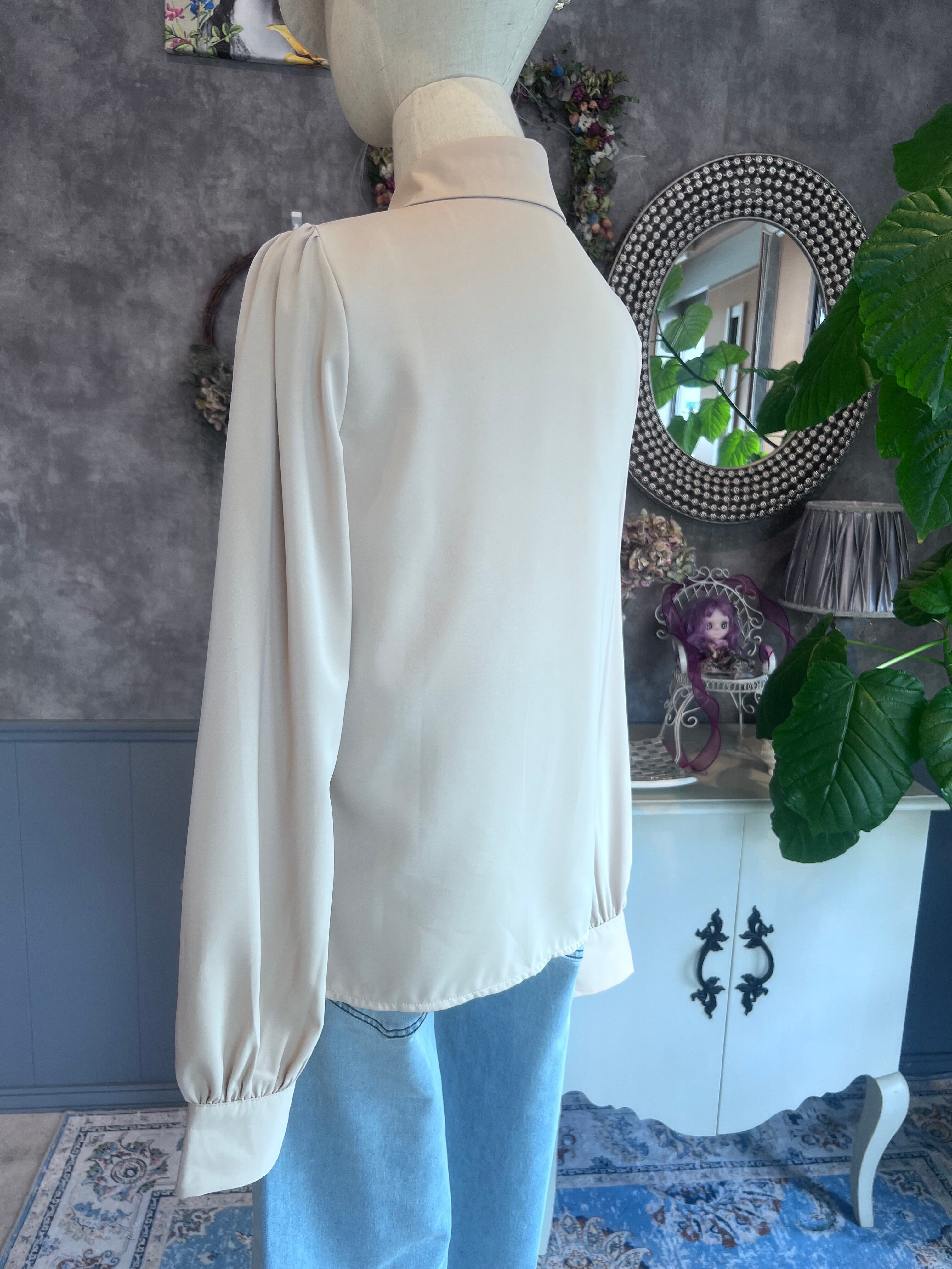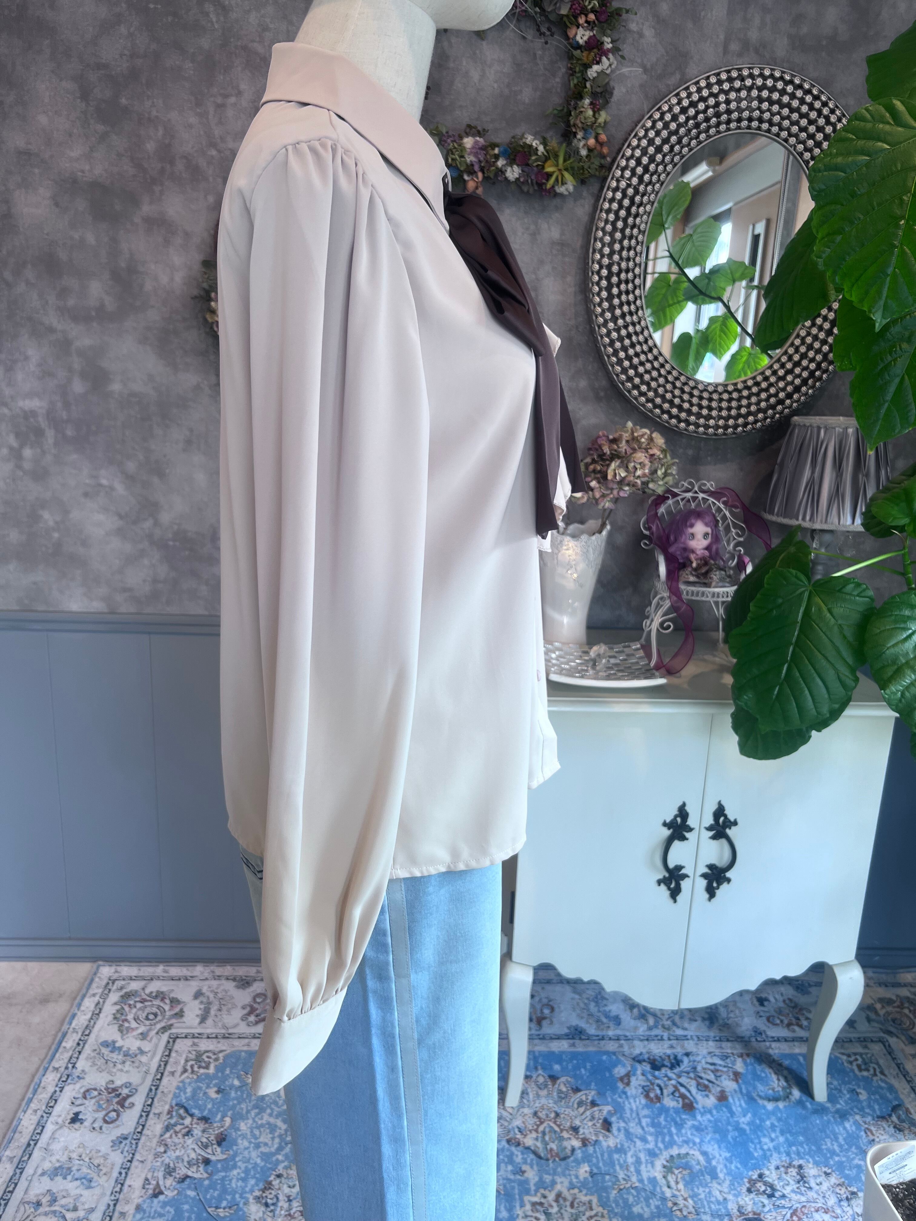 ・華やかなフリルと上品なブラウンカラーが魅力的な、リボン取り外し可能なブラウスです。