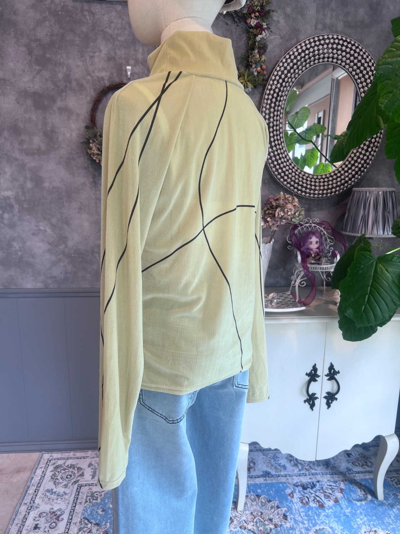 ・シアーな素材感とタトゥーライクなデザインが、あなたのスタイルに個性的な魅力をプラスするおしゃれなトップスです。