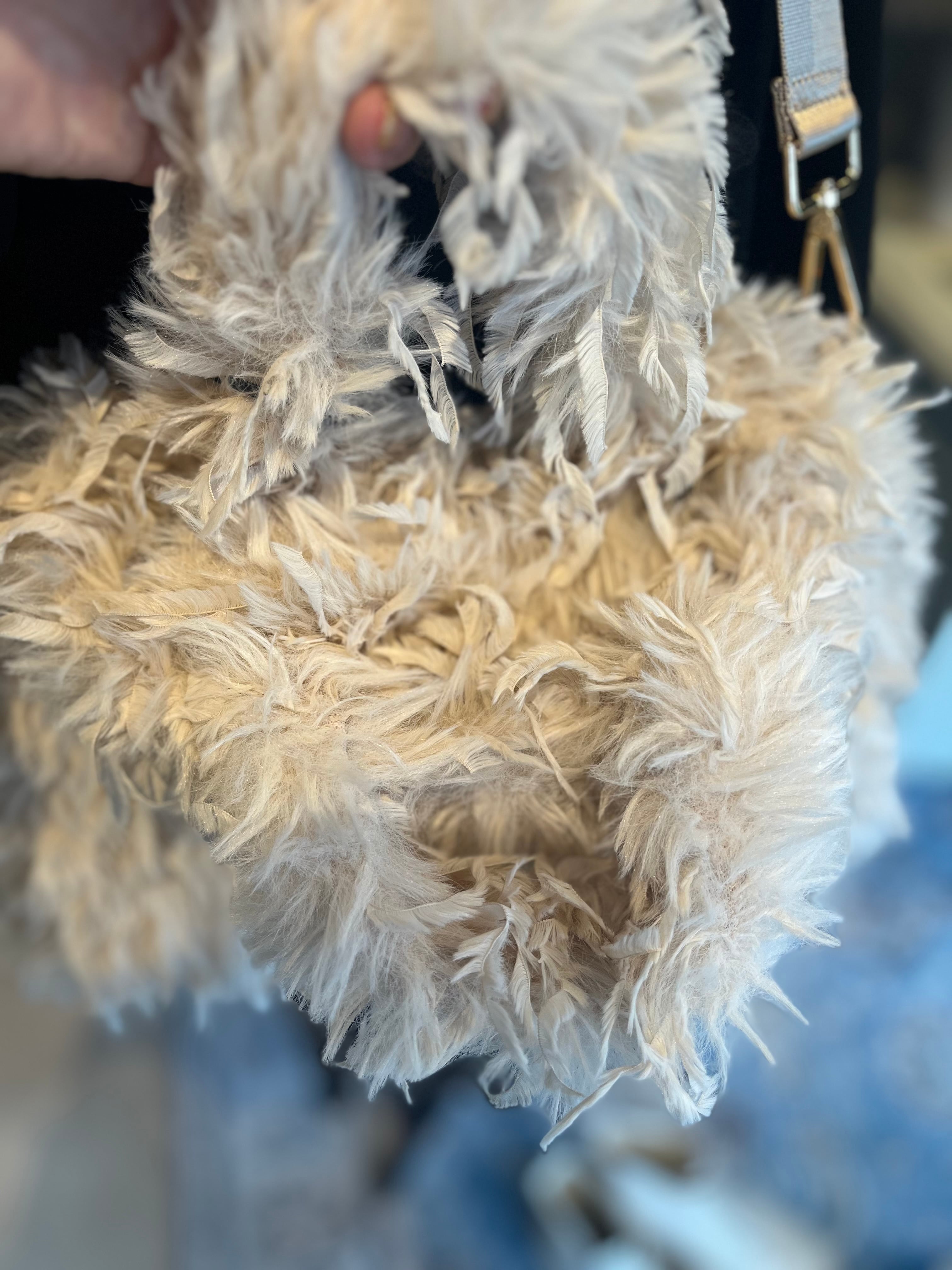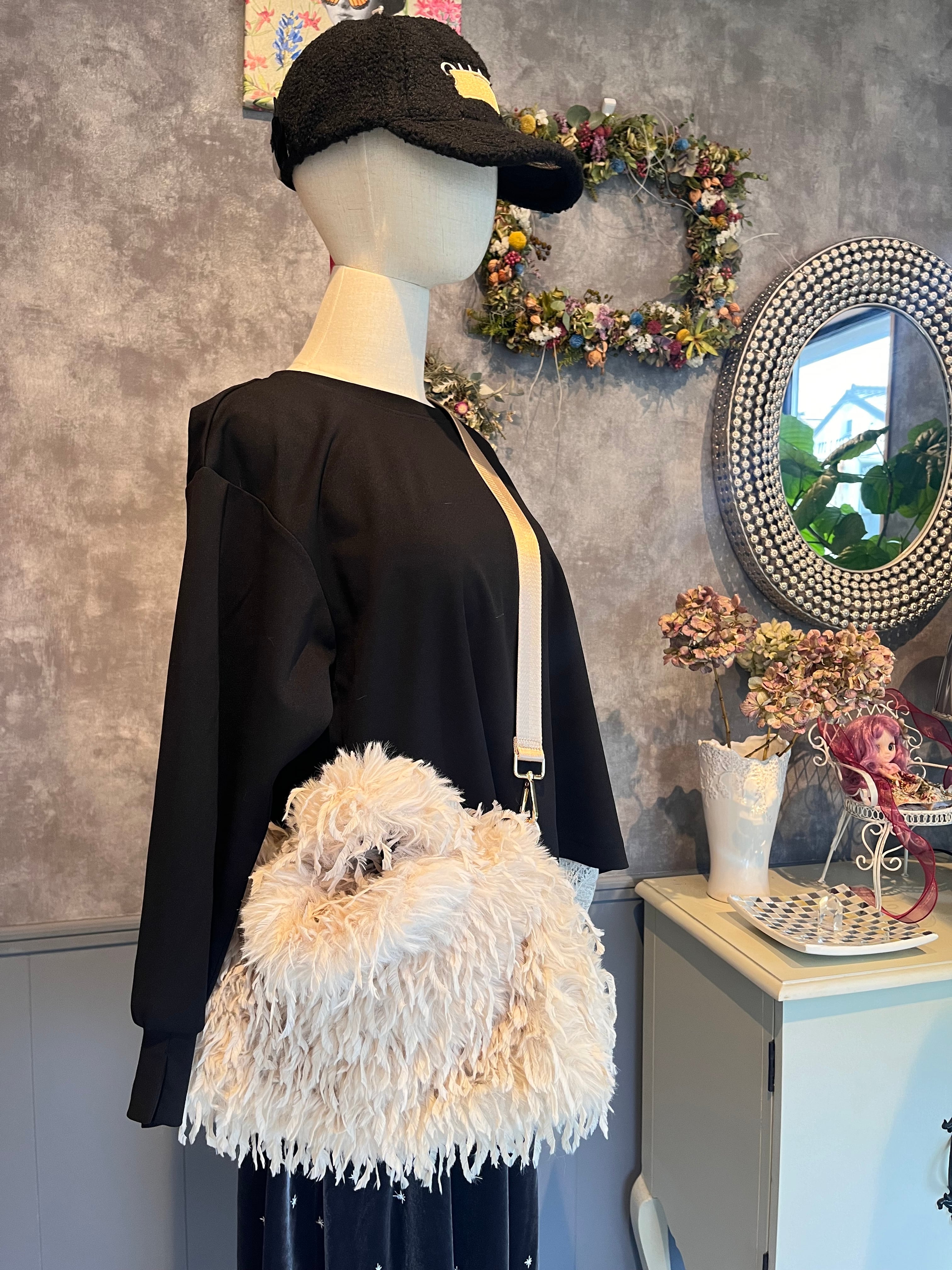 ・フェザー調のデザインが目を引く、存在感たっぷりのトートバッグです。
