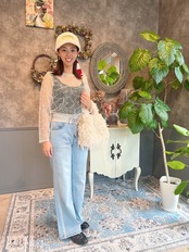 落ち着いた刺繍カラーが大人の抜け感を演出。