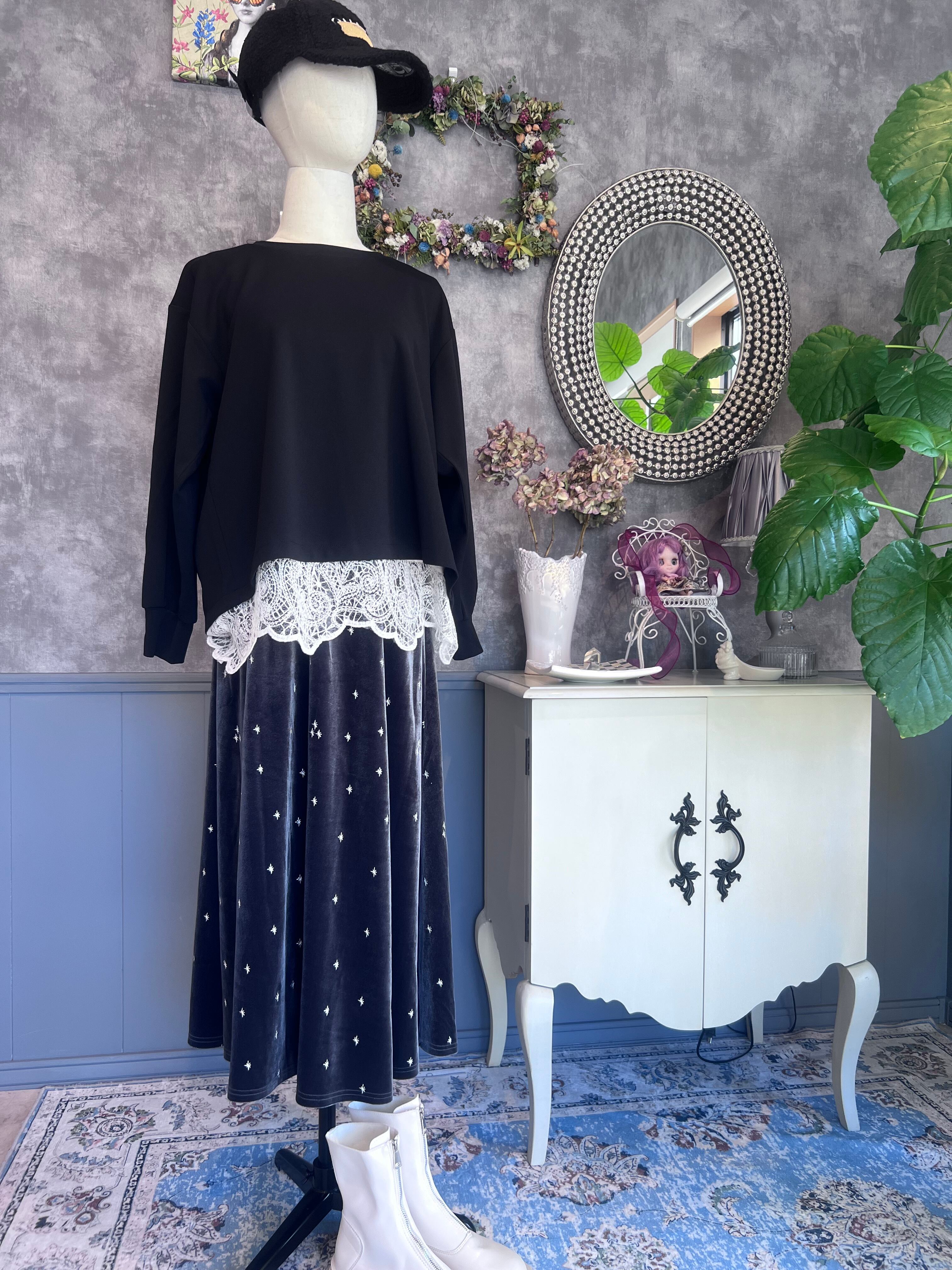 ・後ろと裾にレースが施された、かわいらしくおしゃれなプルオーバーです。