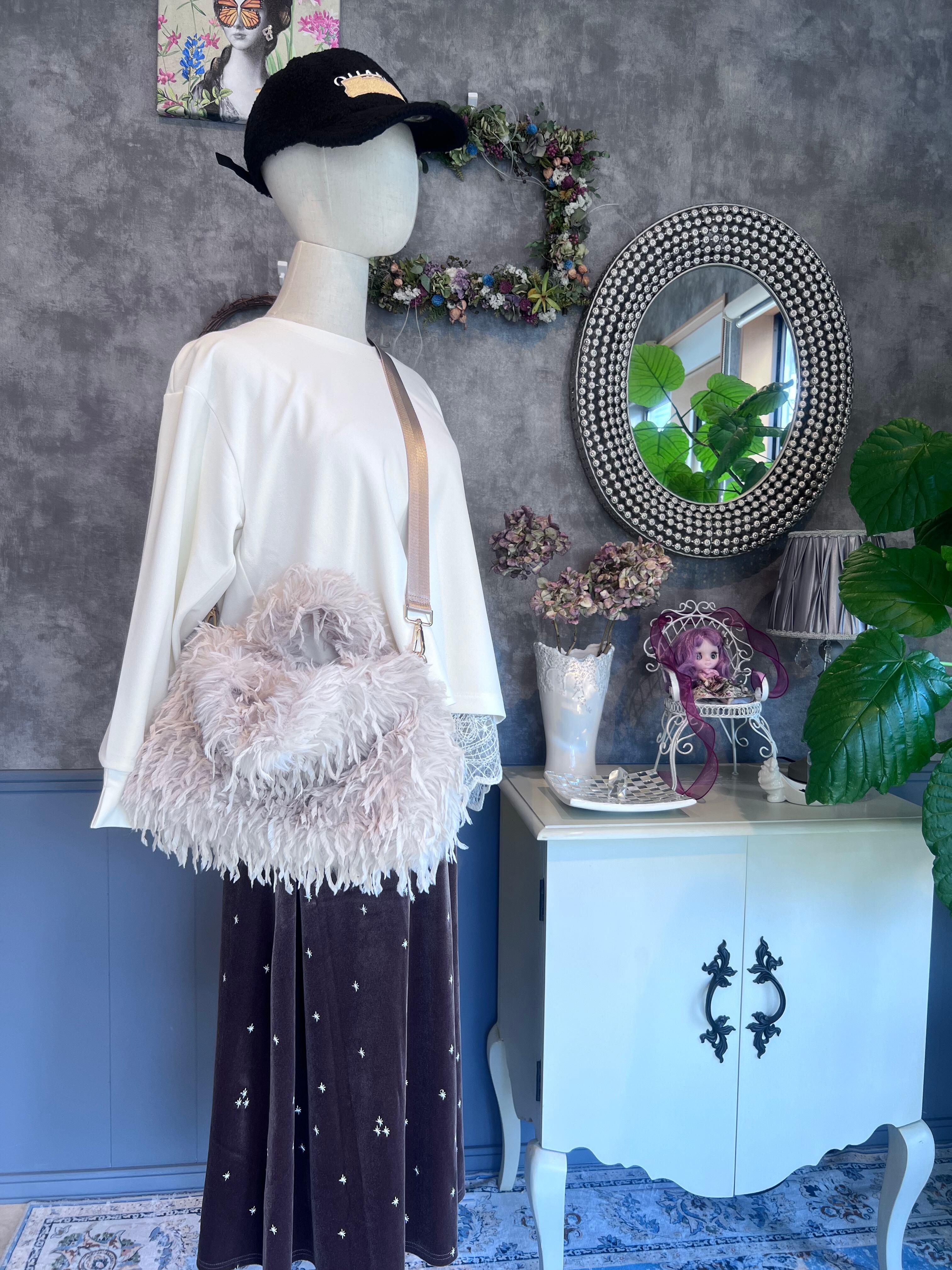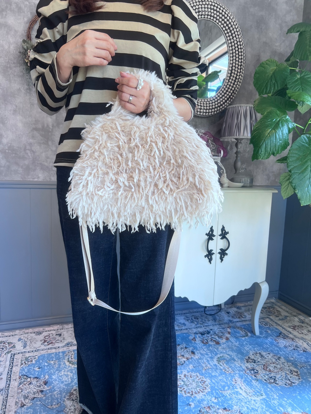 ・もこもこした質感とフリンジが特徴の、おしゃれで可愛らしいショルダーバッグです。