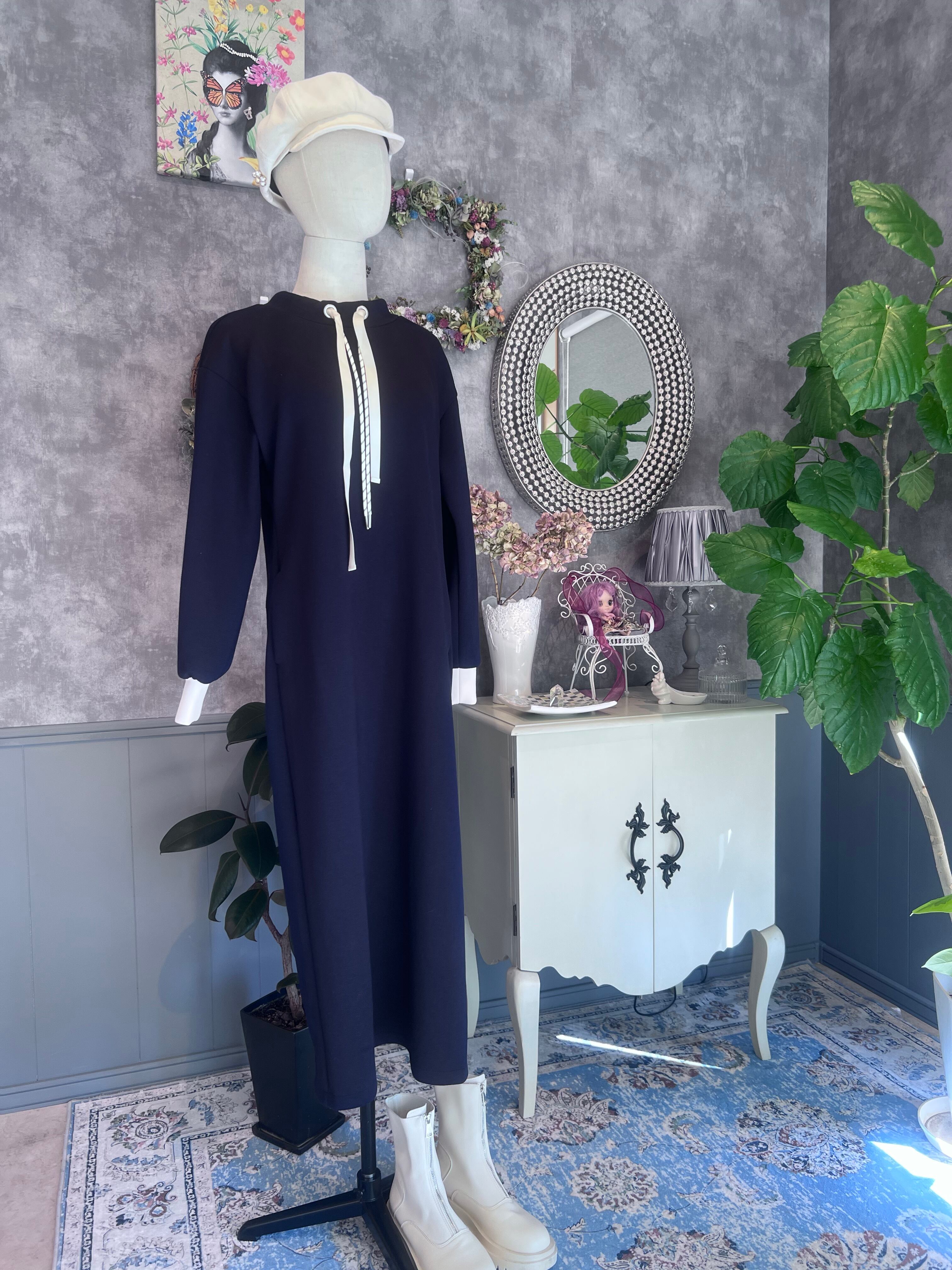 ・ダンボール素材を使用した、独特な質感と軽やかさを兼ね備えたダブルコードワンピースです。
