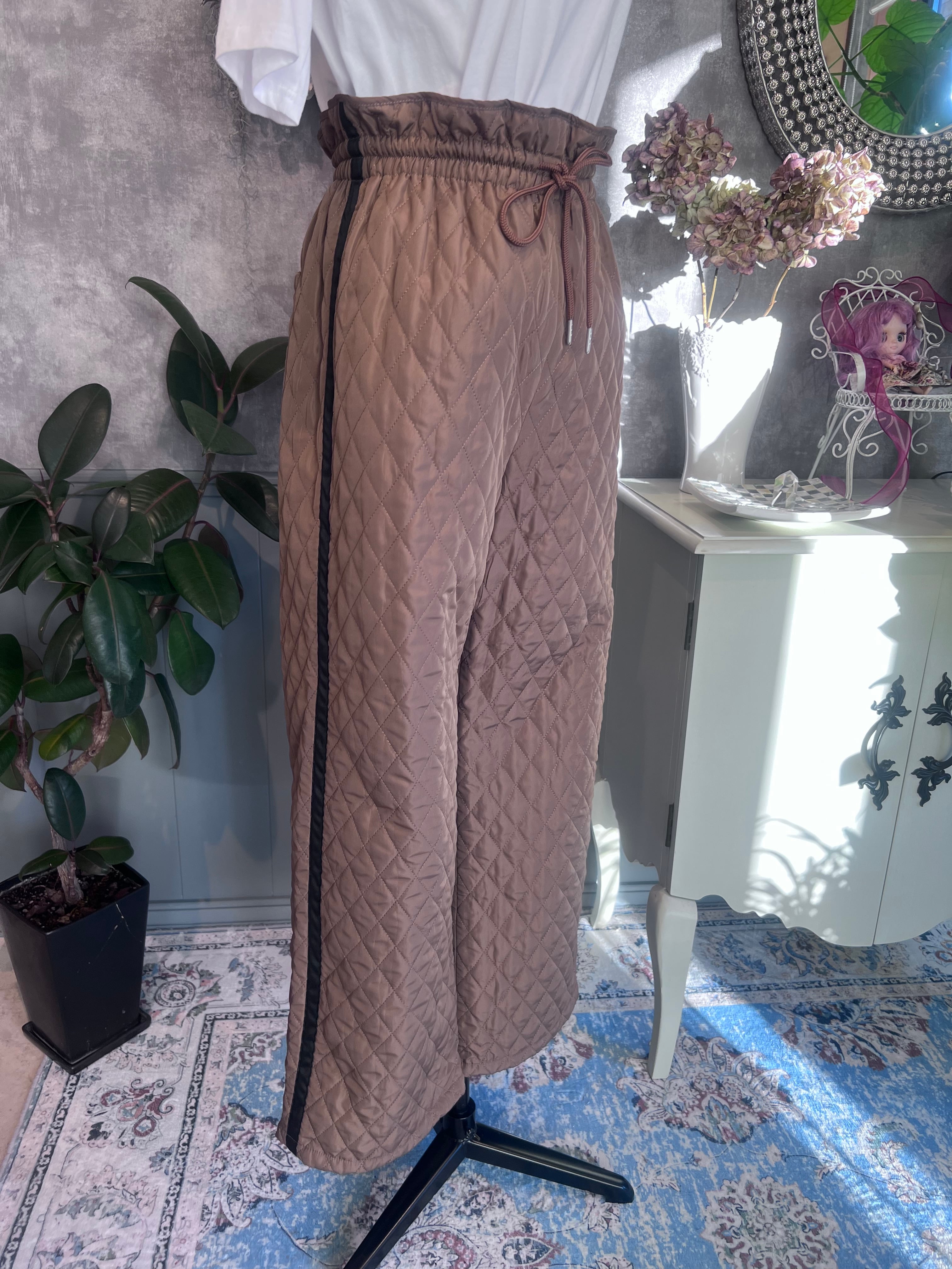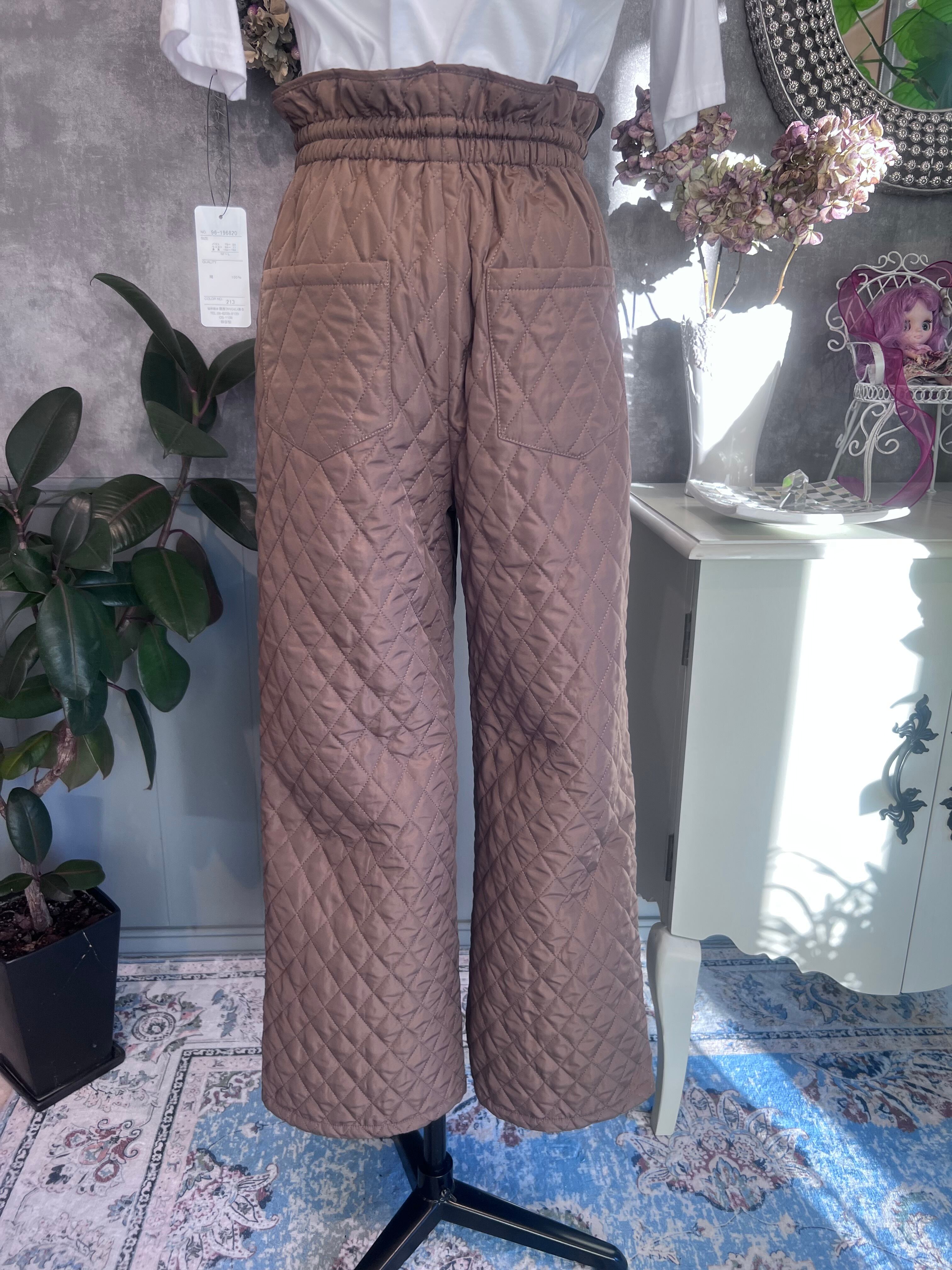 ・軽やかなキルティング素材を使用した、かわいいデザインのハイウェストパンツです。