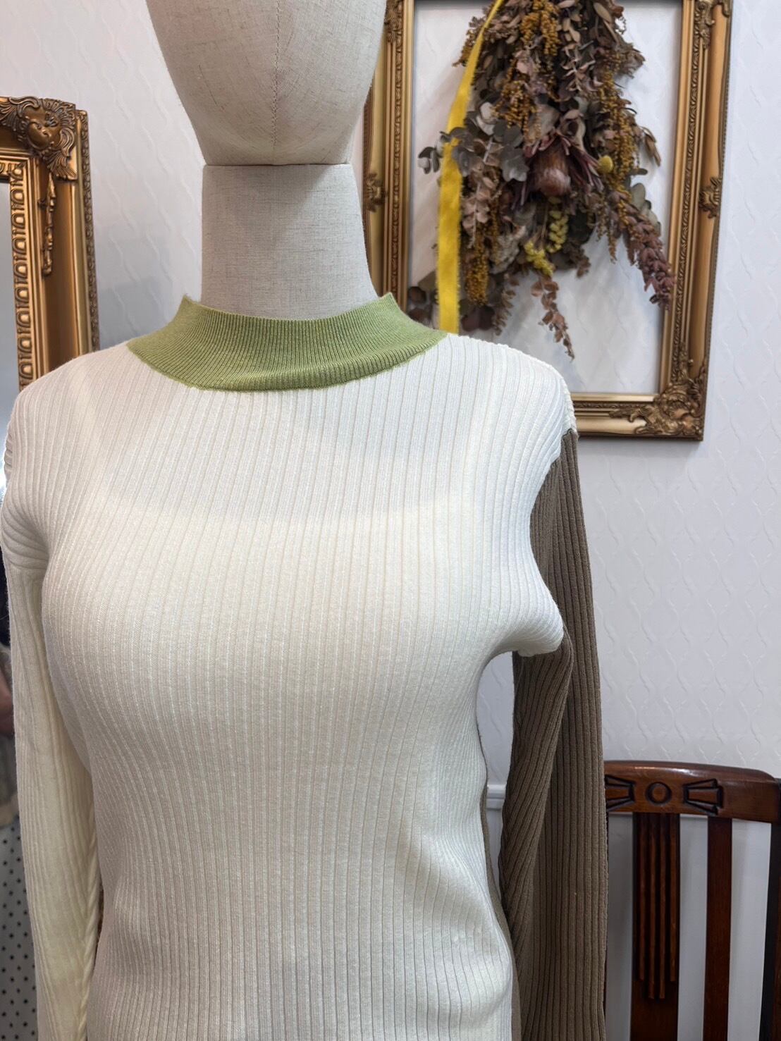 ・前後2wayで楽しめるデザインが魅力のバイカラーリブニットです。