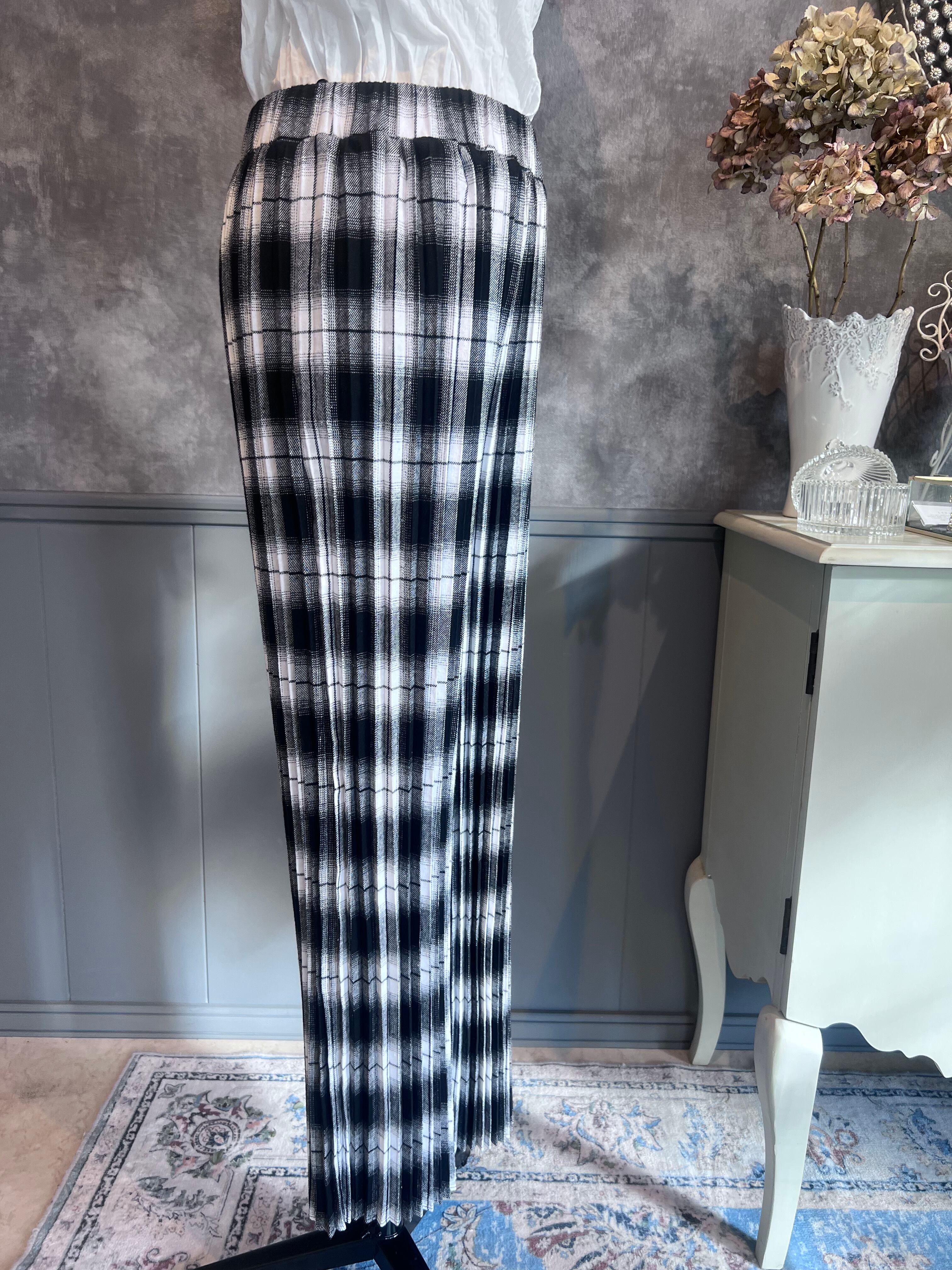 プリーツ加工が施されたかわいらしいチェックパンツ。