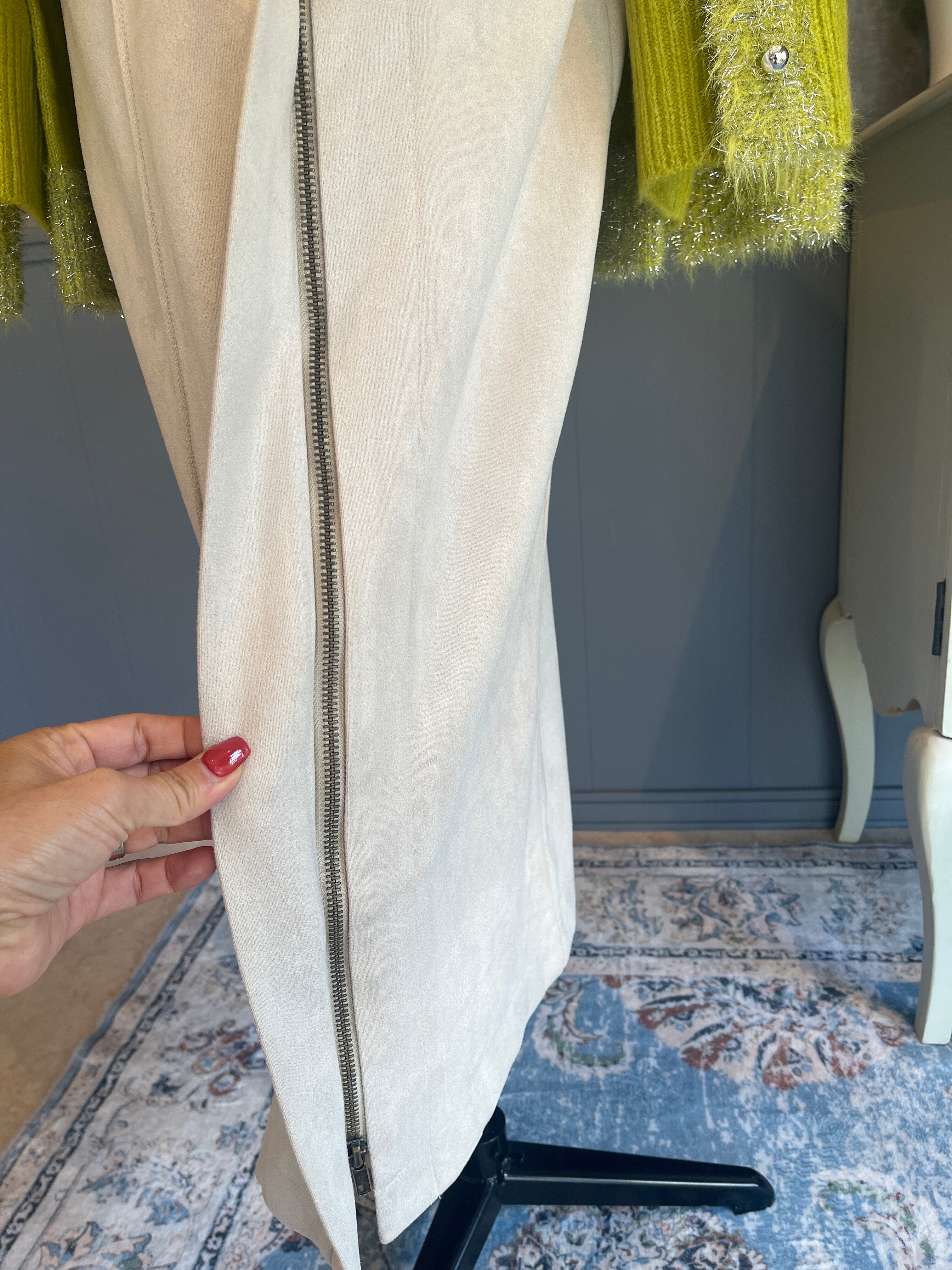 ・スエード調の素材を使用した、スタイリッシュでおしゃれなタイトスカートです。