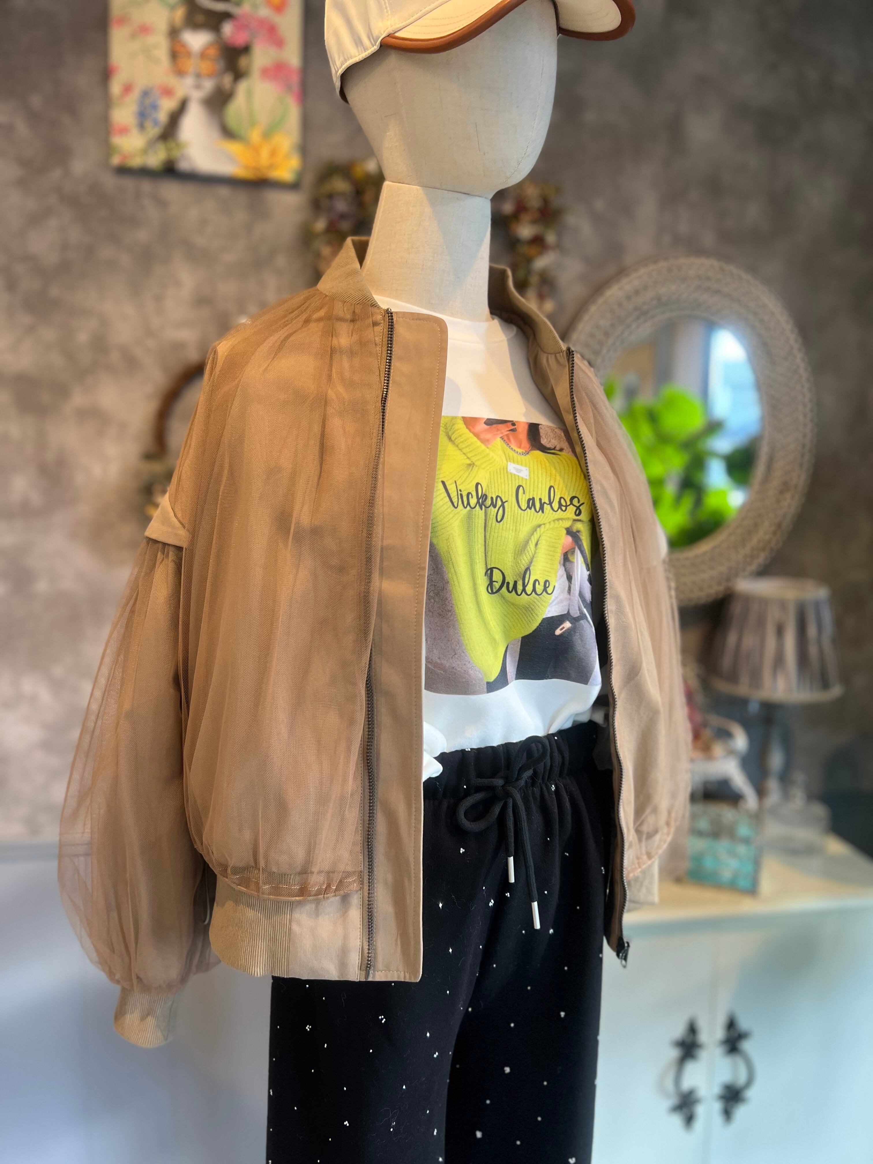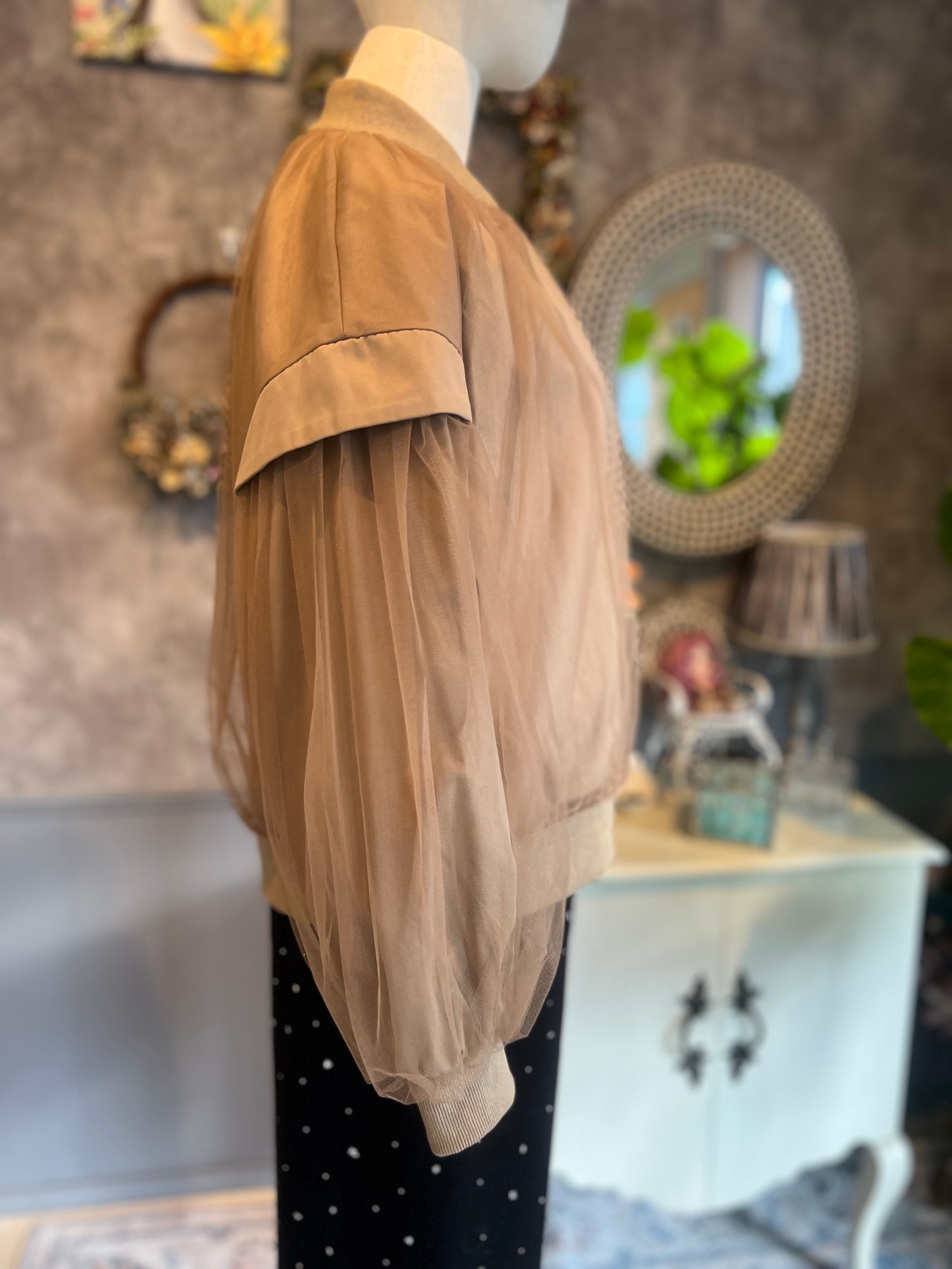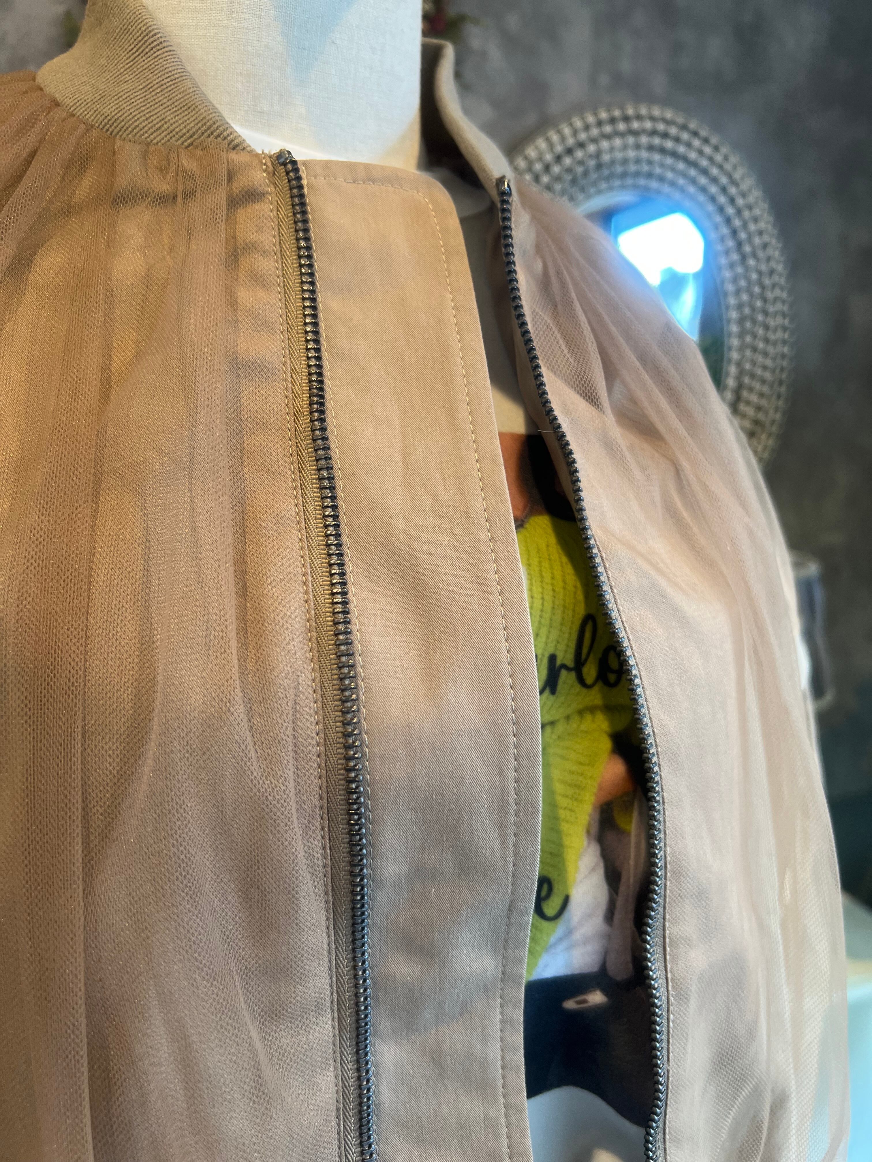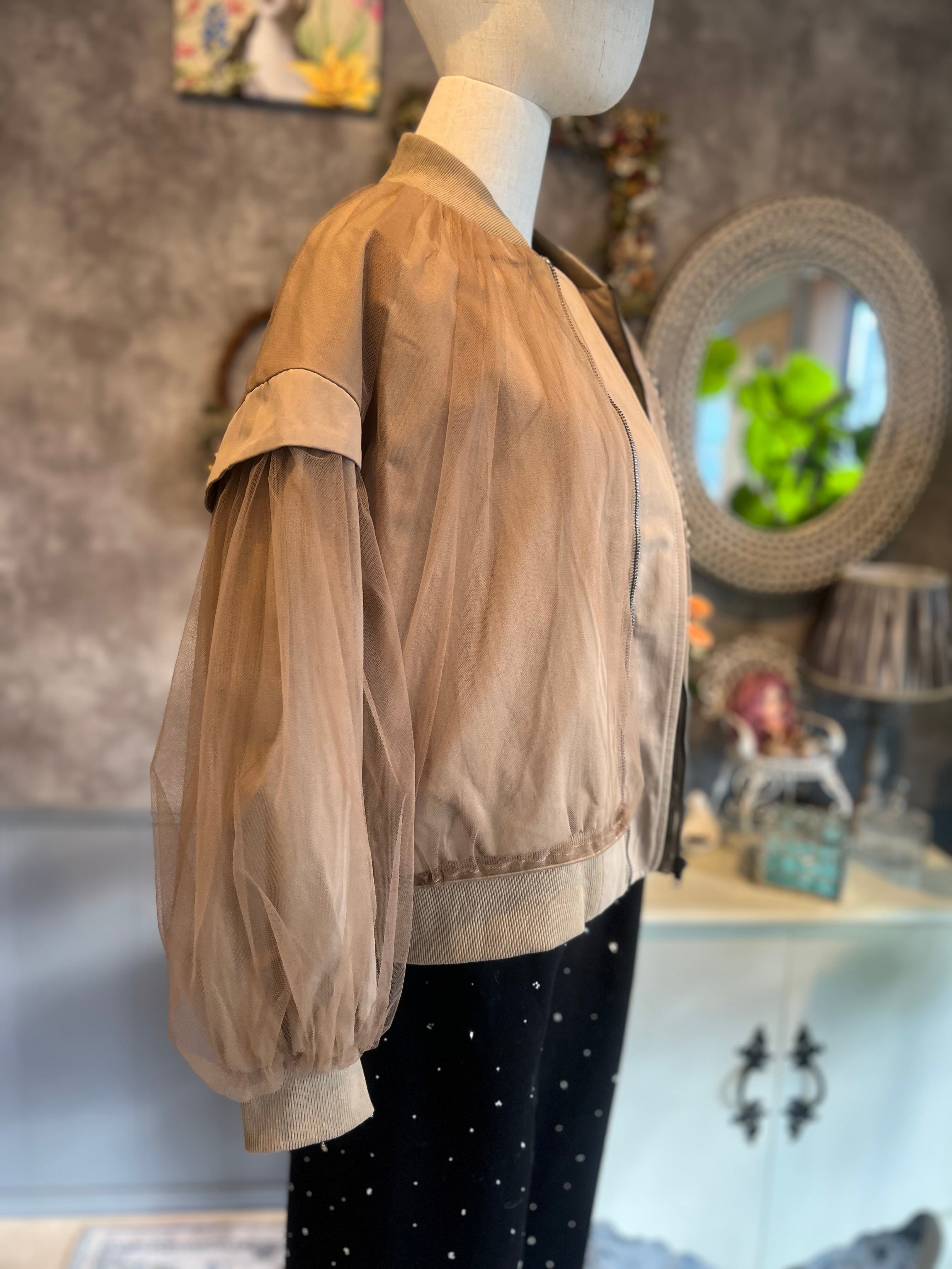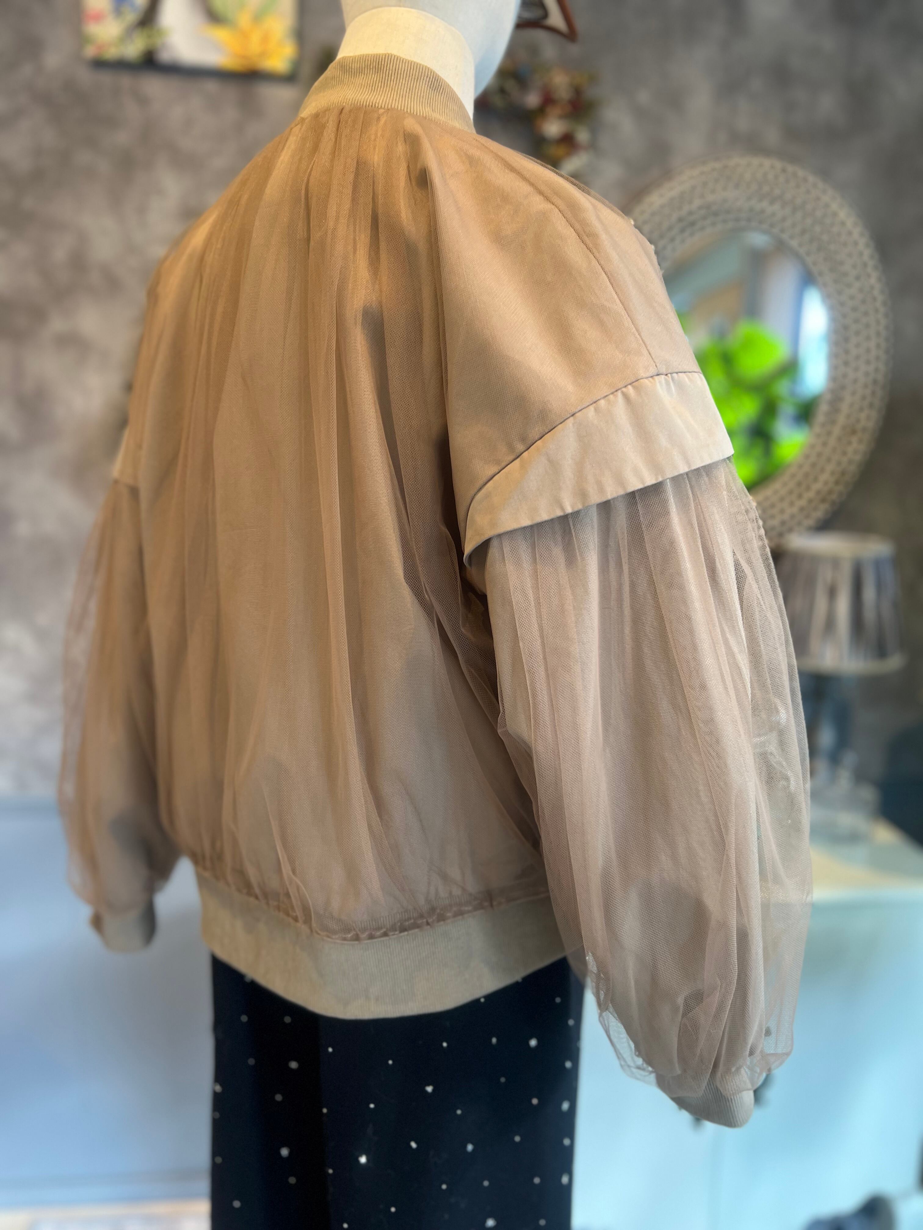 柔らかなチュール素材が、このブルゾンに一味違った魅力をプラスします。
