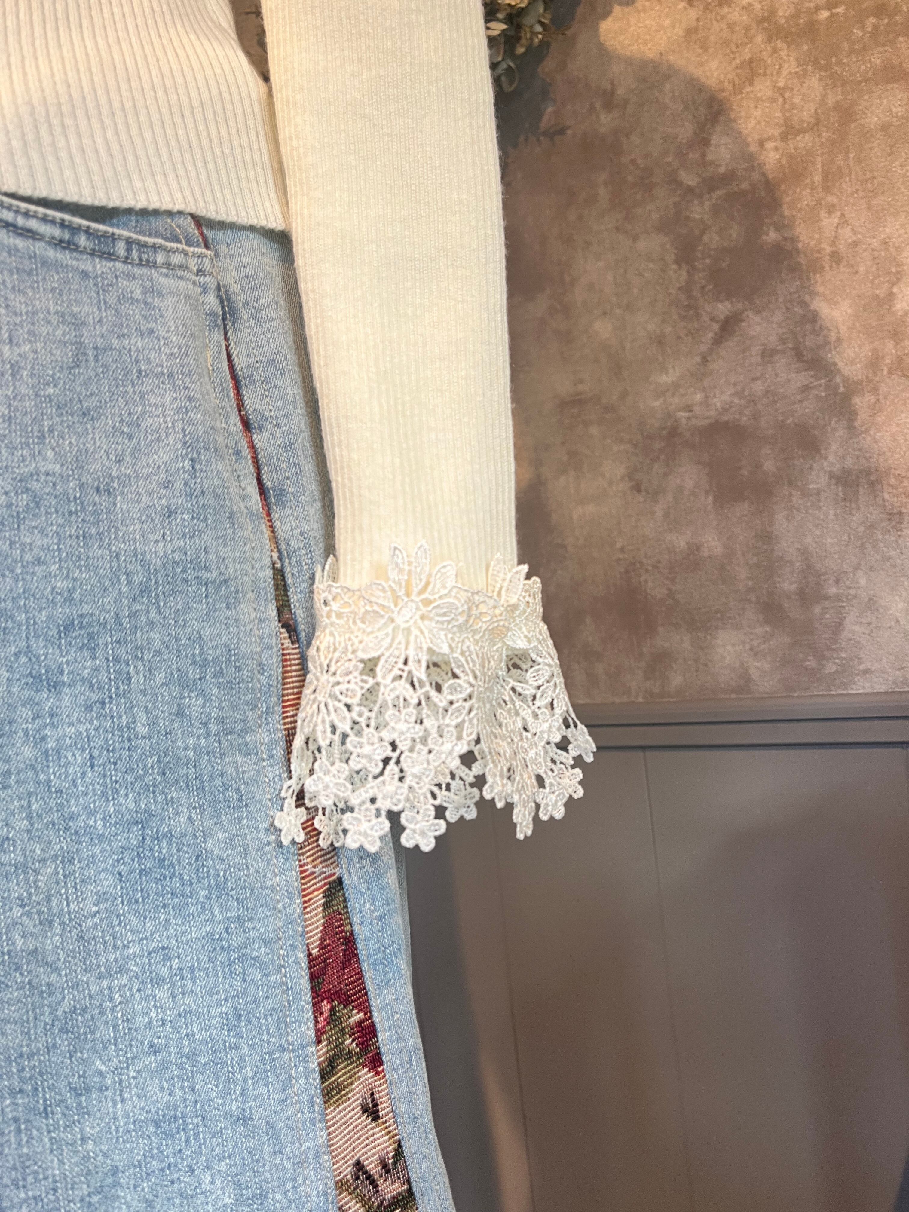 このレースニットトップスは、普段使いだけでなく、特別な日のコーディネートにもぴったりです!