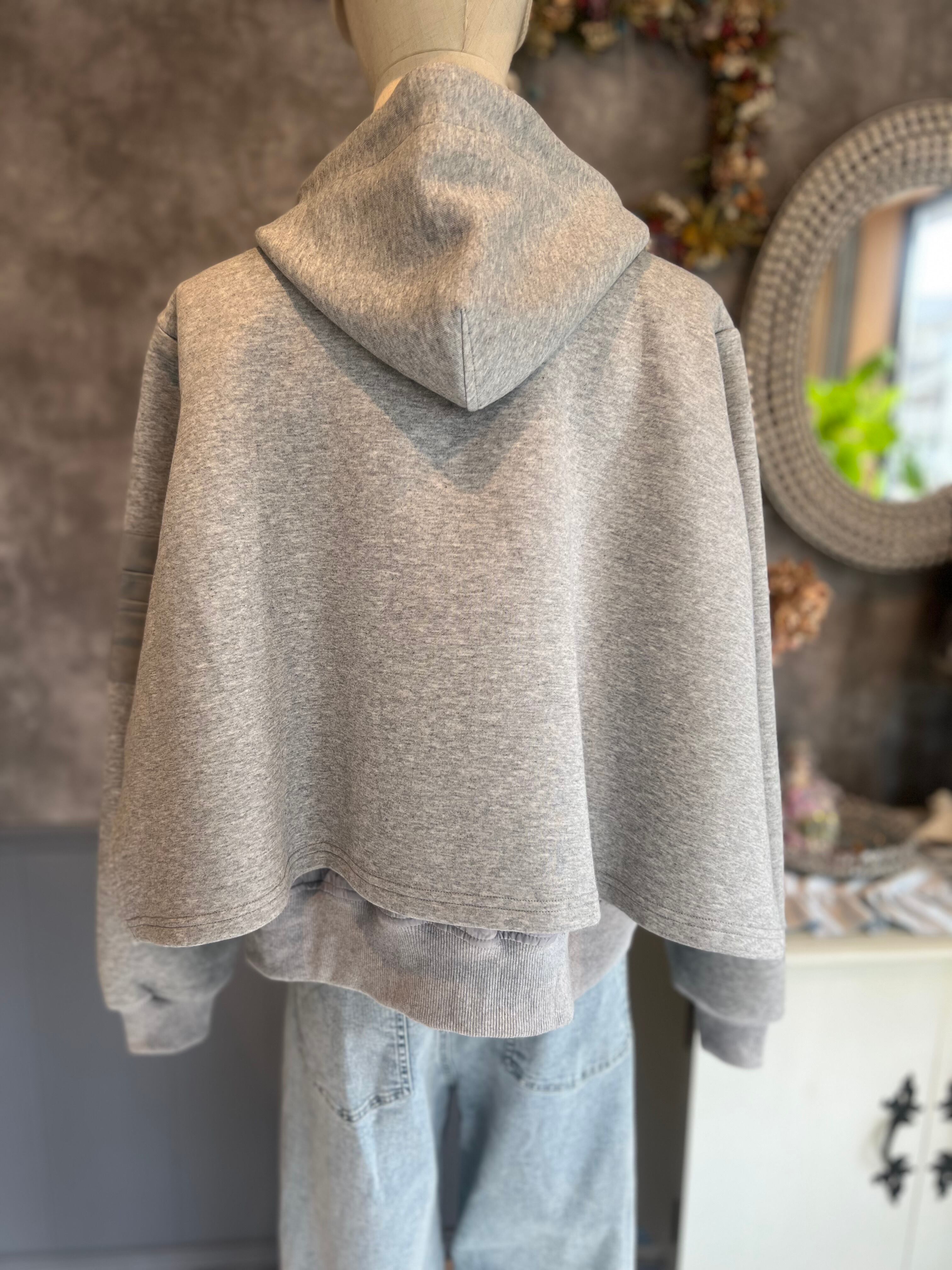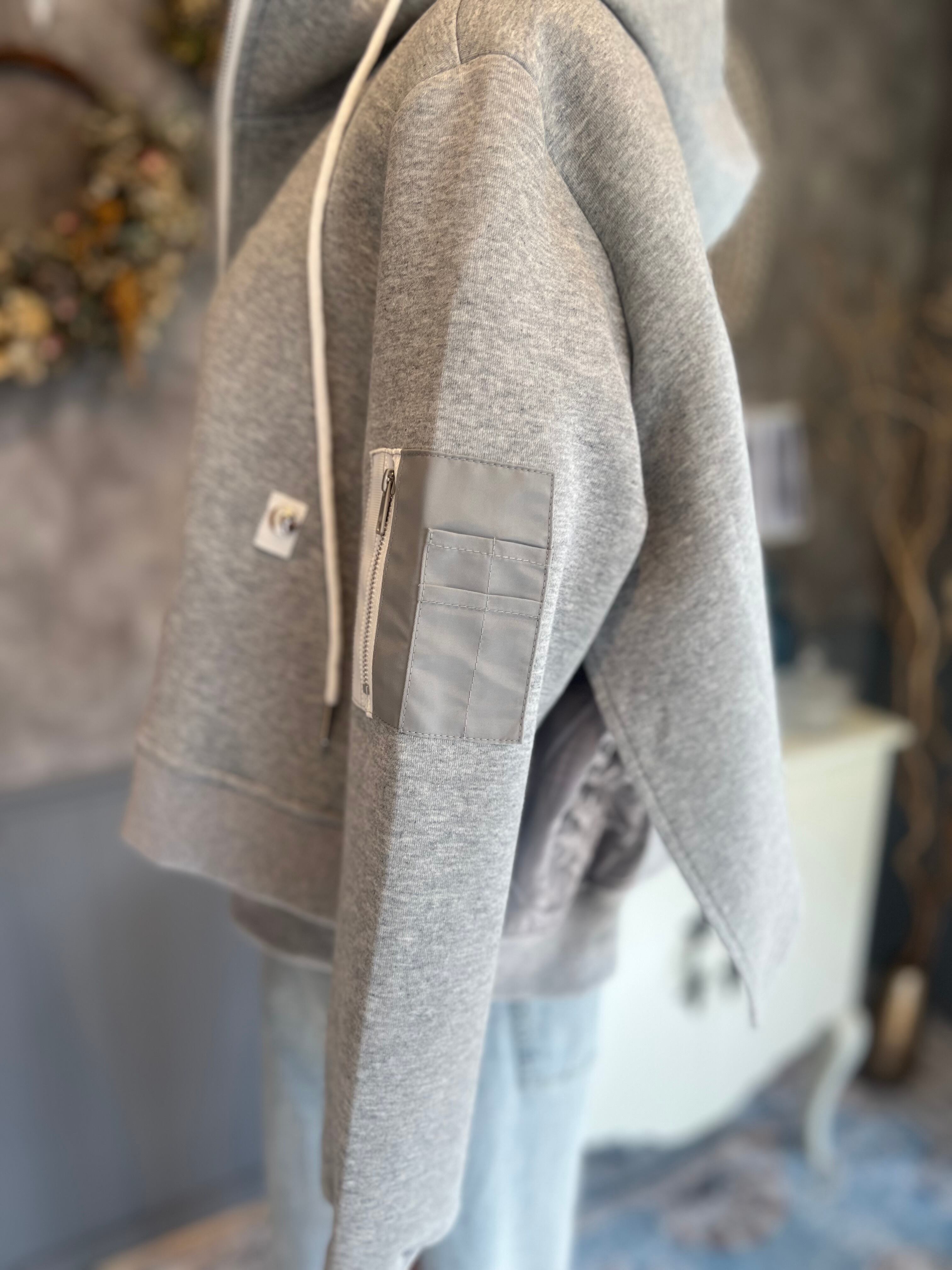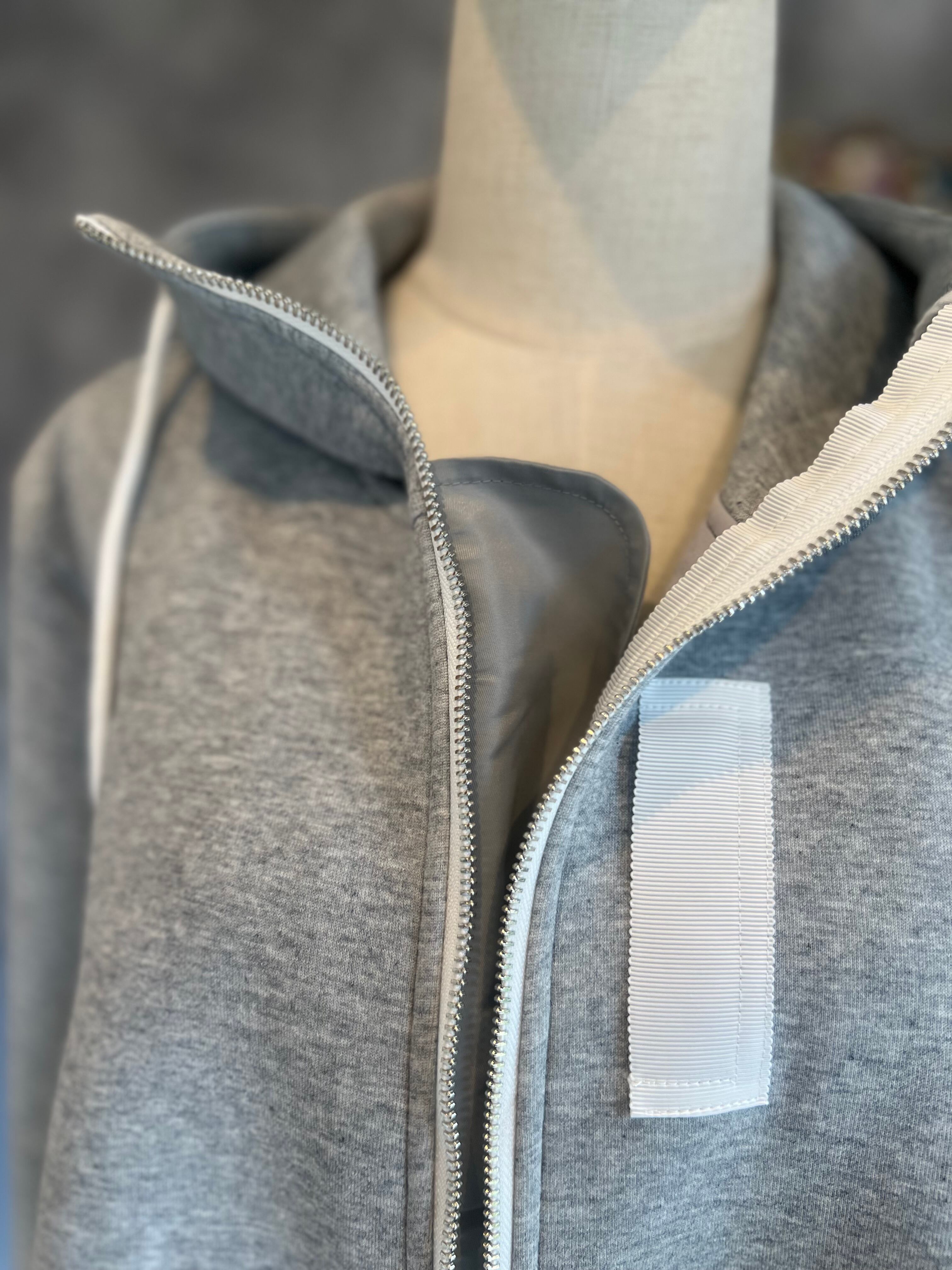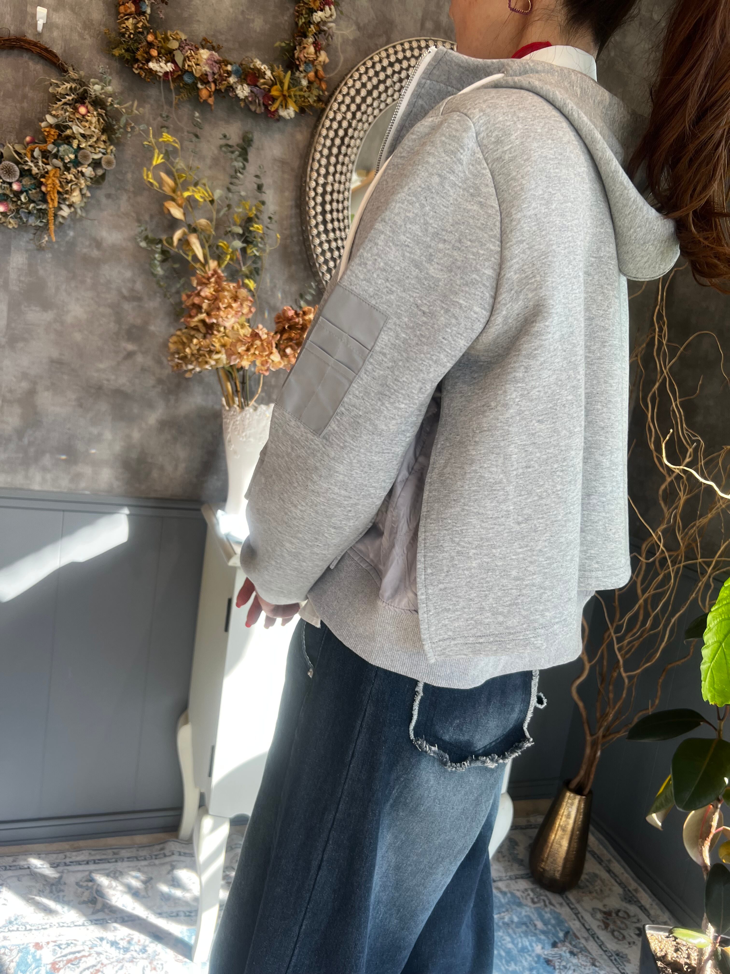 おしゃれなキルティングデザインが施されたスウェットパーカーで、動くたびに洗練された印象を与える一枚です。