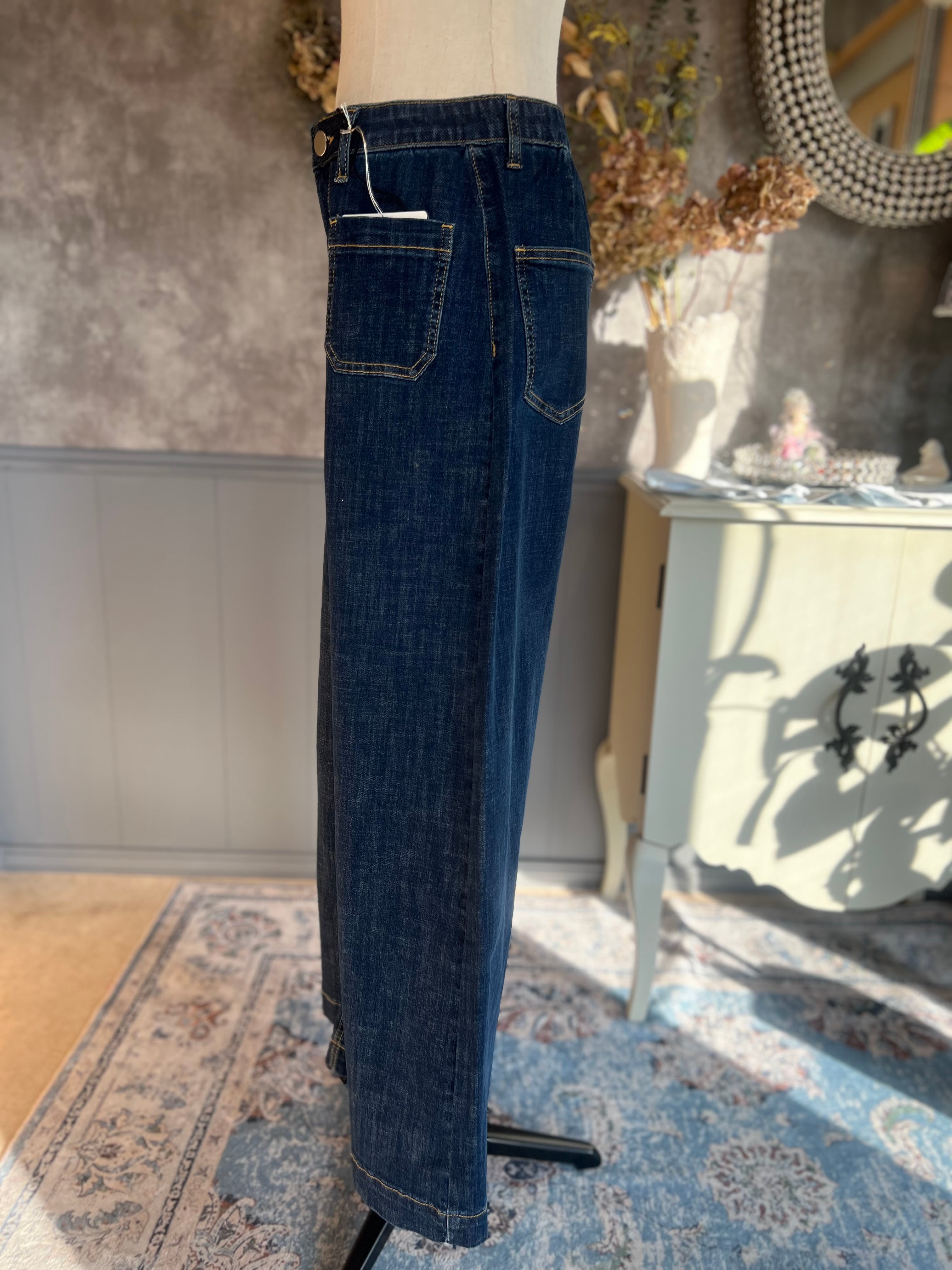 おしゃれなフロントポケットデザインが施されたデニムパンツで、着るたびに洗練された印象を与える一枚です。