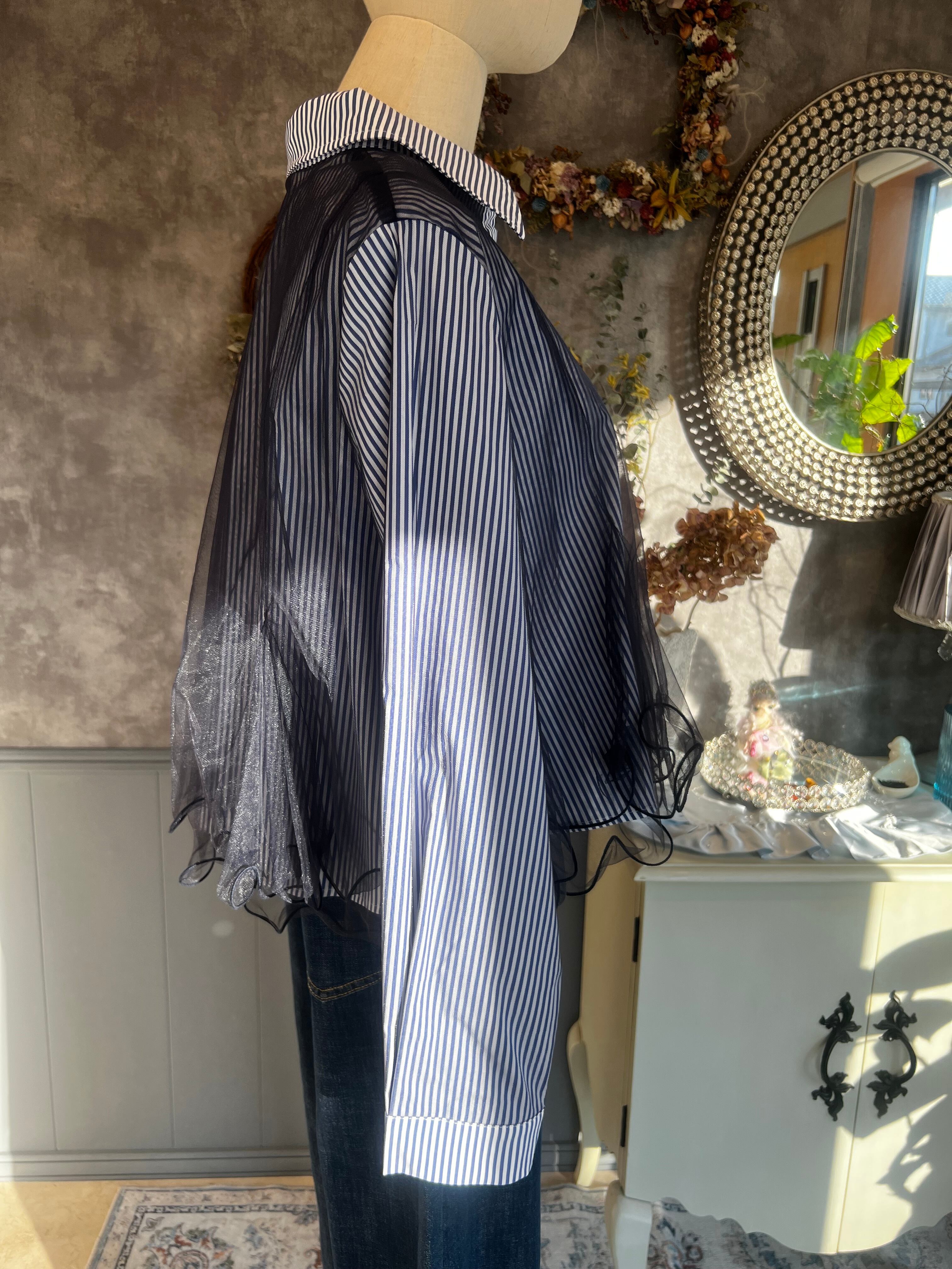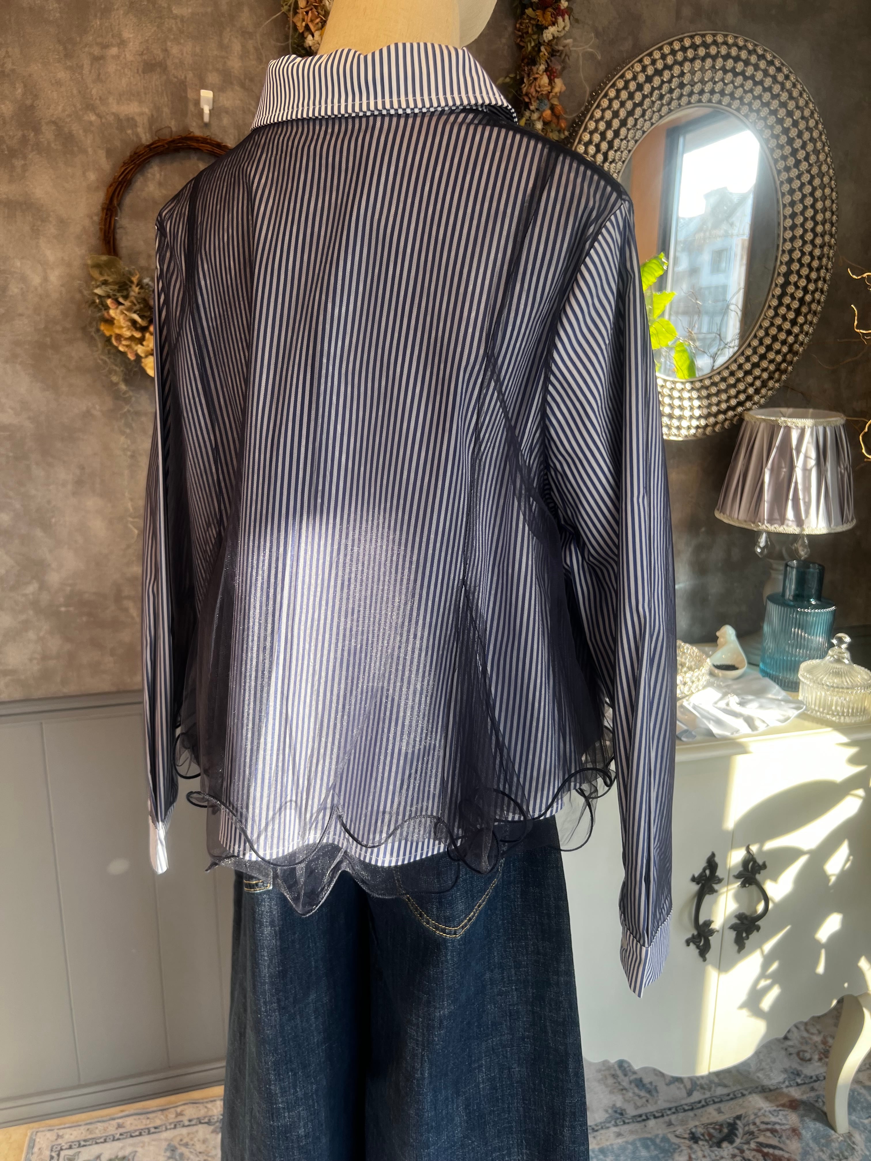 MICALLE MICALLE チュールドッキングストライプシャツ