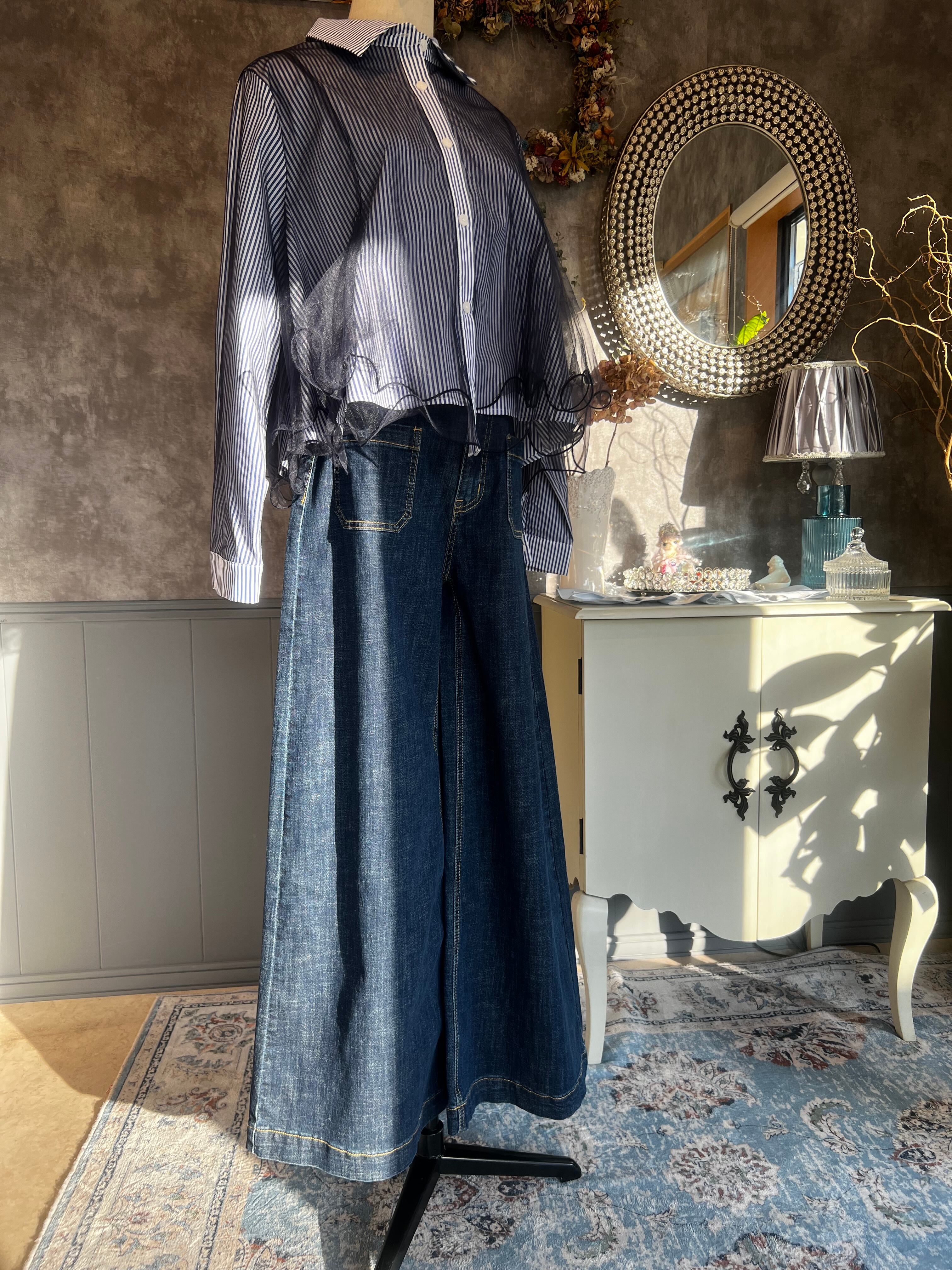 ・シンプルなデニムやスカートと合わせることで、ストライプとチュールのコントラストが印象的なスタイルを演出します!
