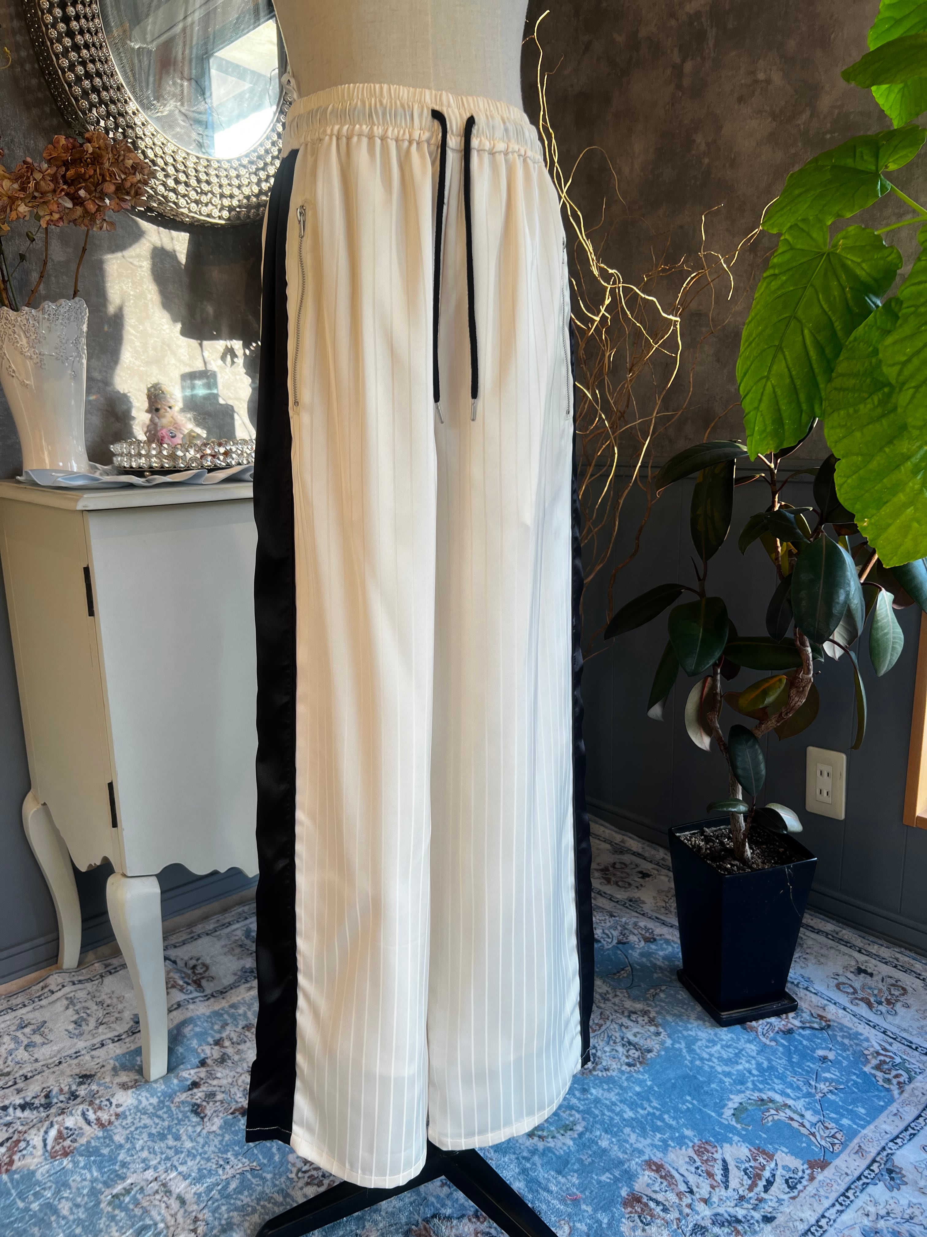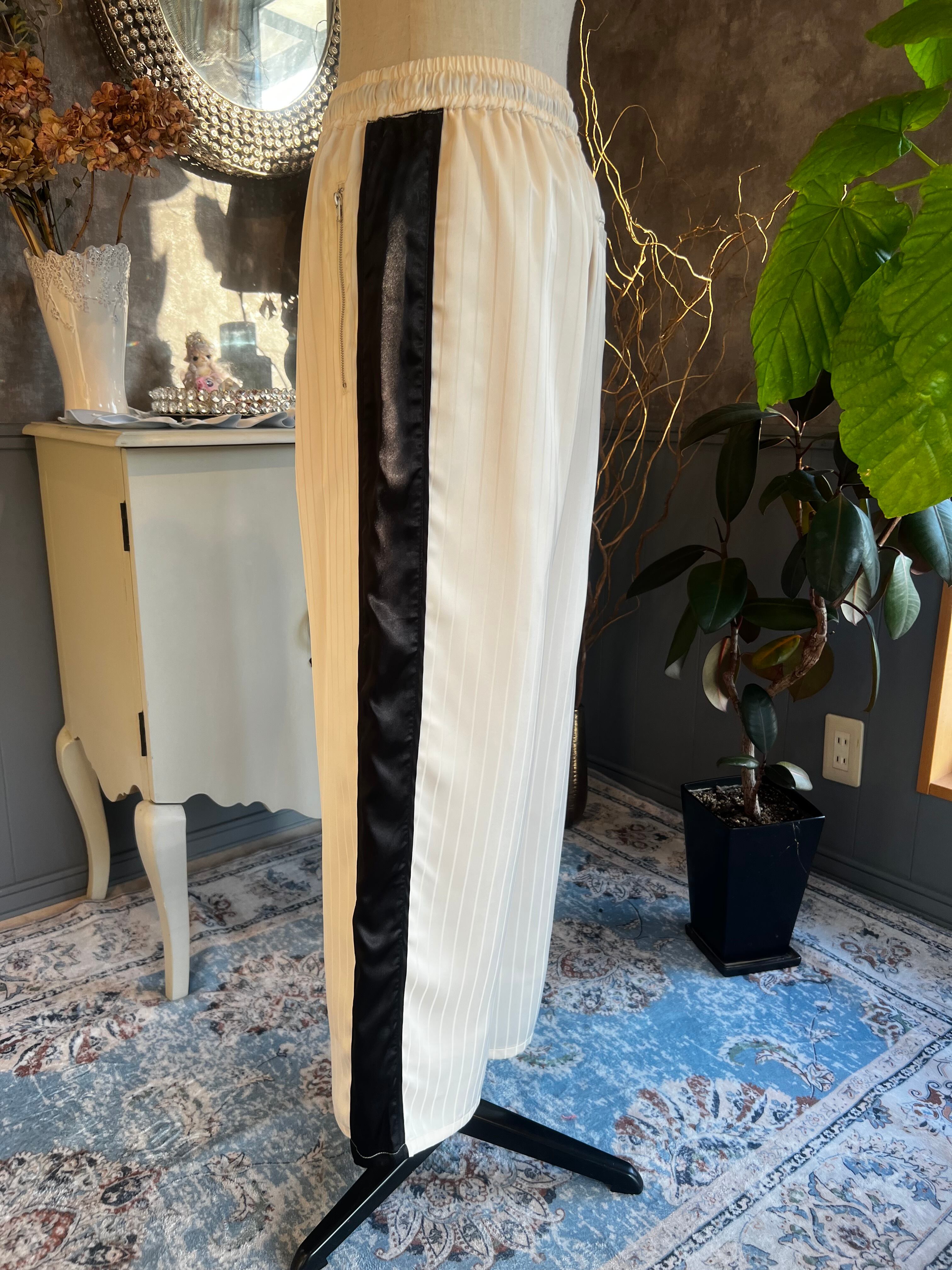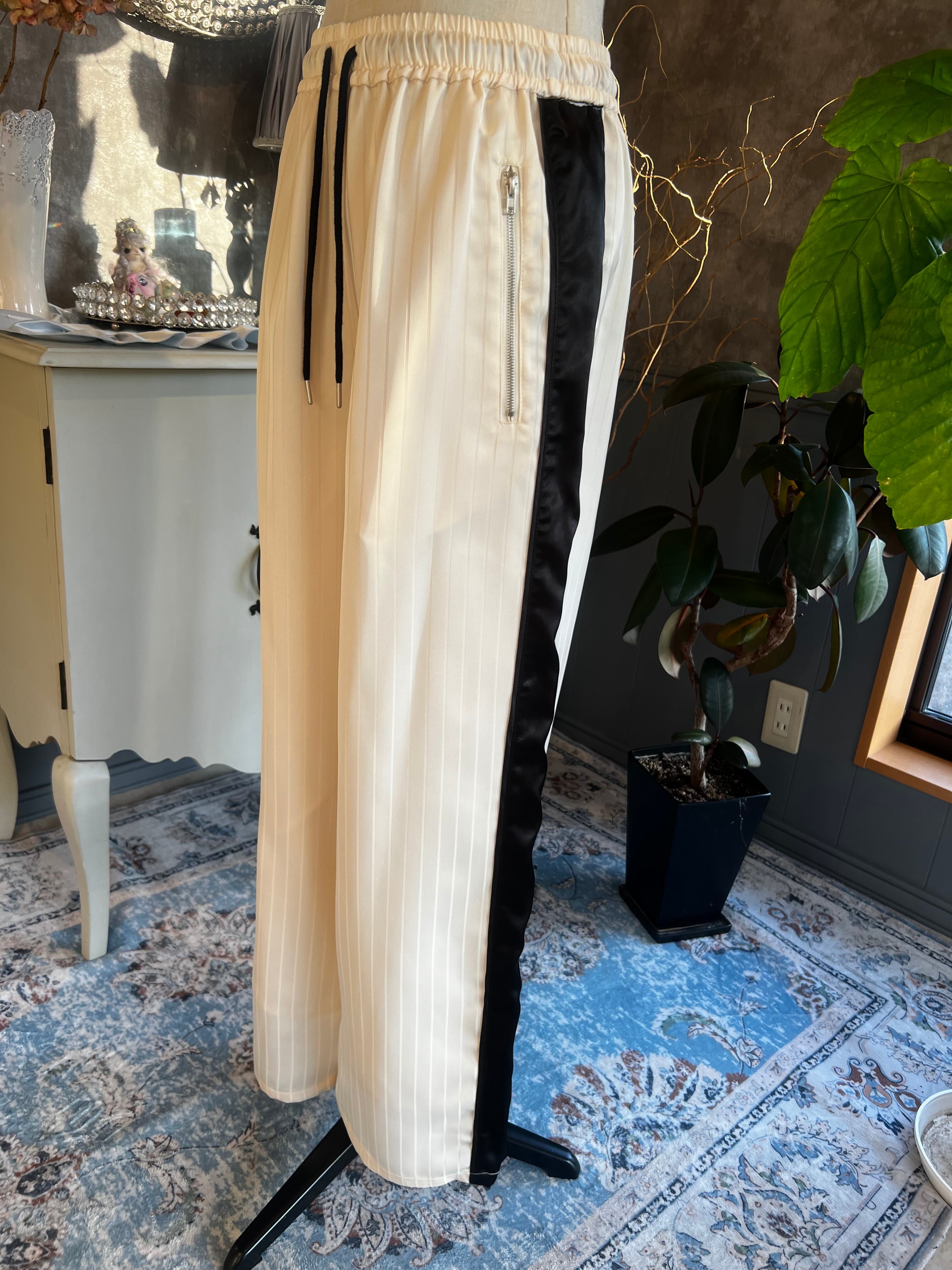 MICALLE MICALLE ピンストライプサイドライン パンツ White