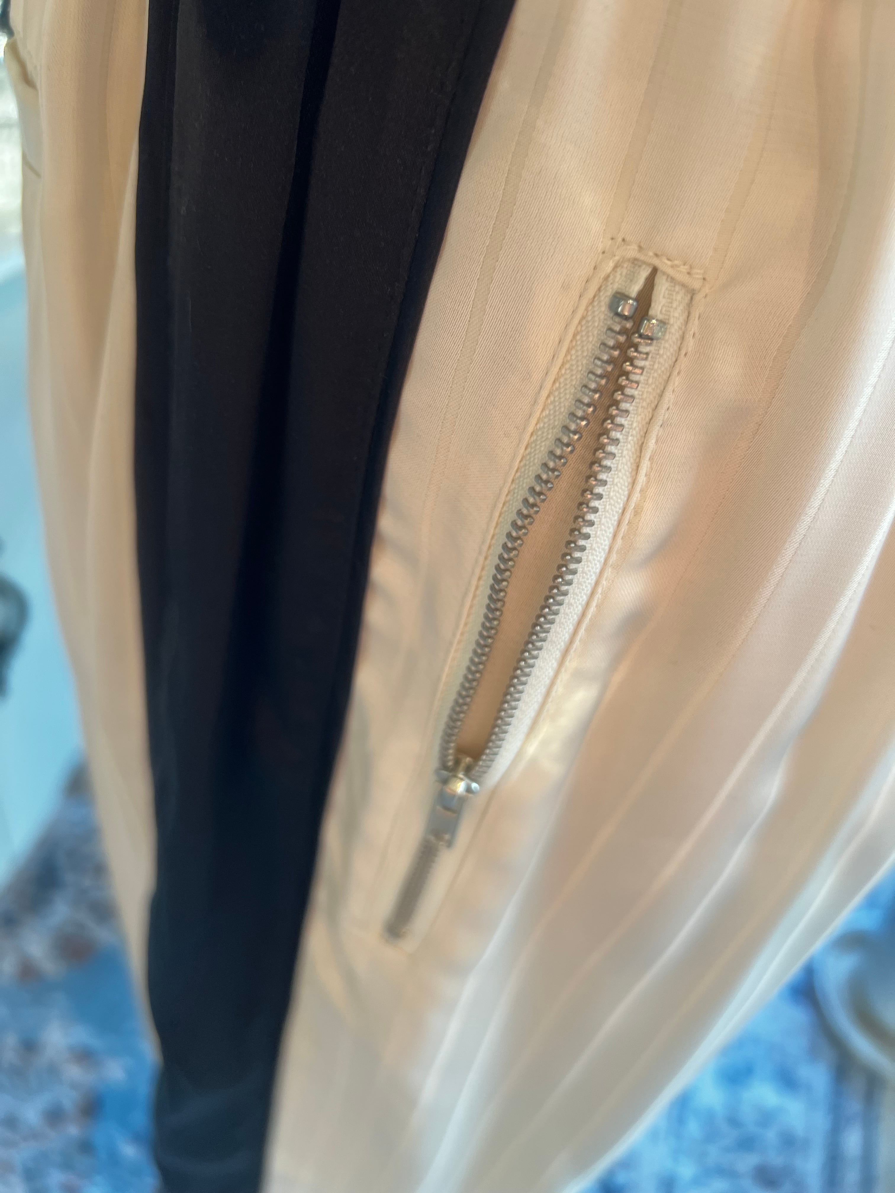 おしゃれなピンストライプデザインが施されたアイテムで、動くたびに洗練された印象を与える一枚です。
