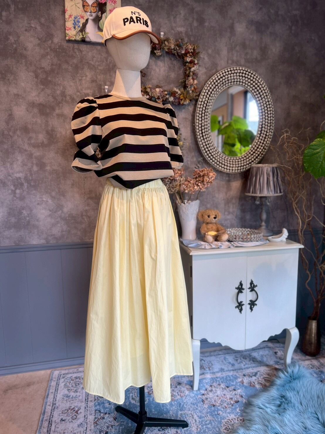 ボーダーパフスリーブトップス moca