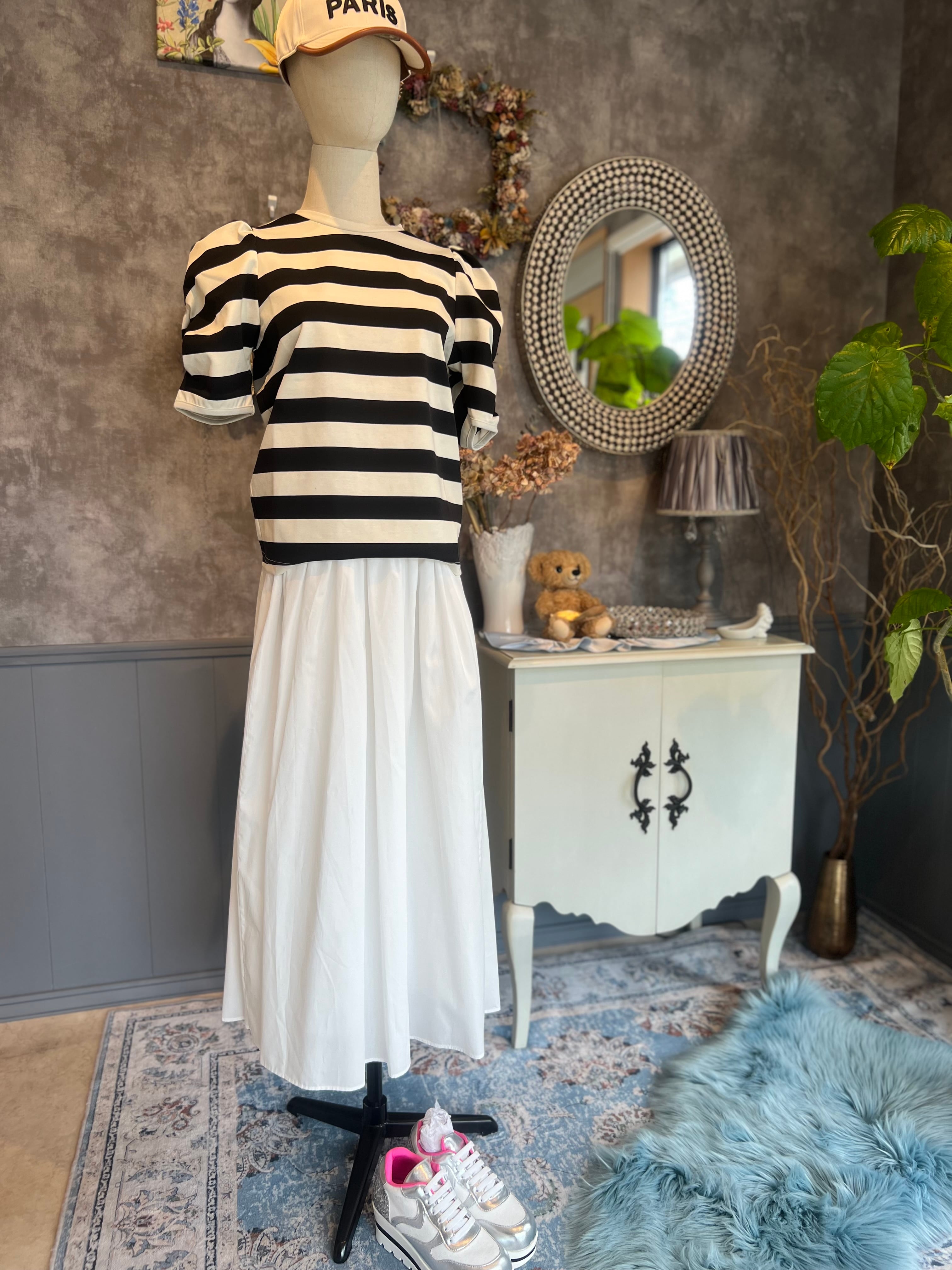 カジュアルさと大人フェミニンを兼ね備えた1枚に。