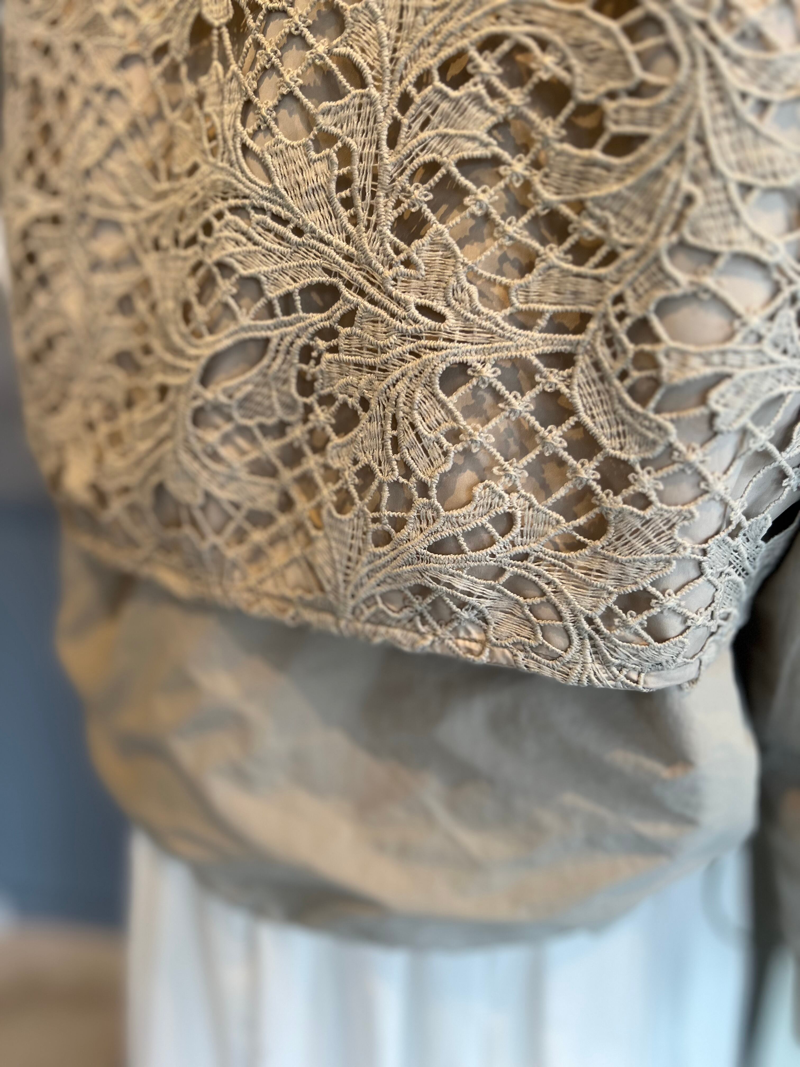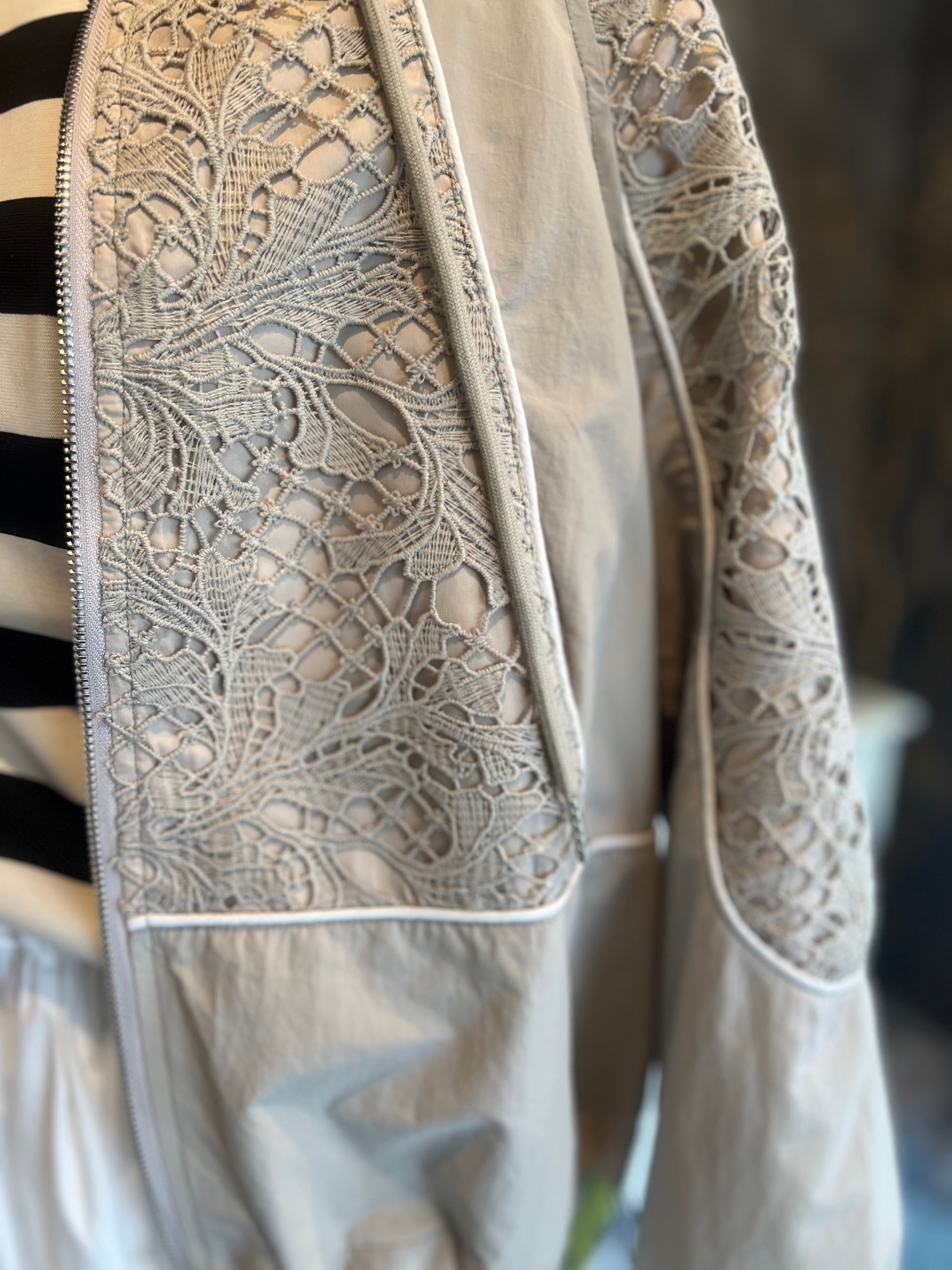 上質なレースを使用したこのブルゾンは、軽やかで柔らかい着心地を実現。