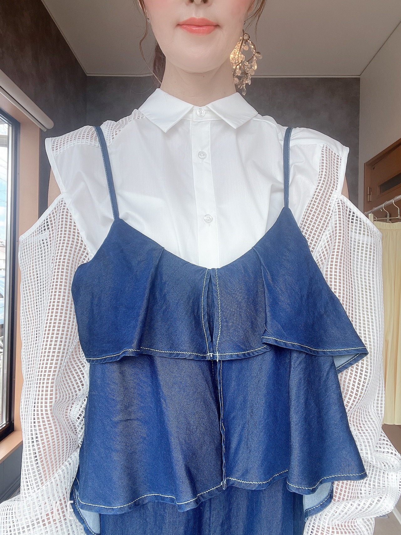 中にTシャツやタンクトップを合わせるだけでコーデが決まる1枚です