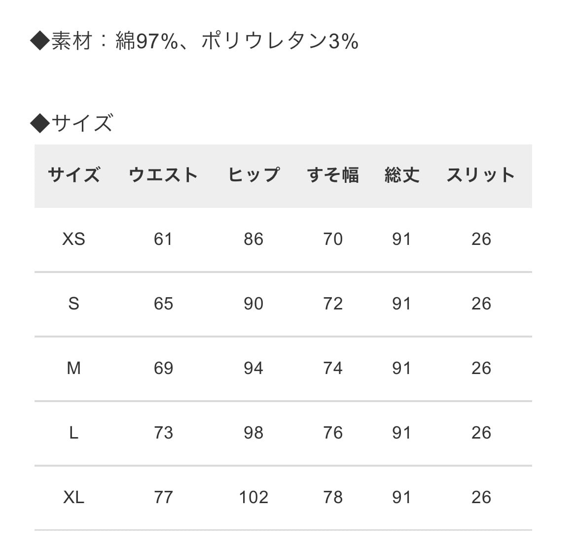 ◆素材:綿97%、ポリウレタン3%