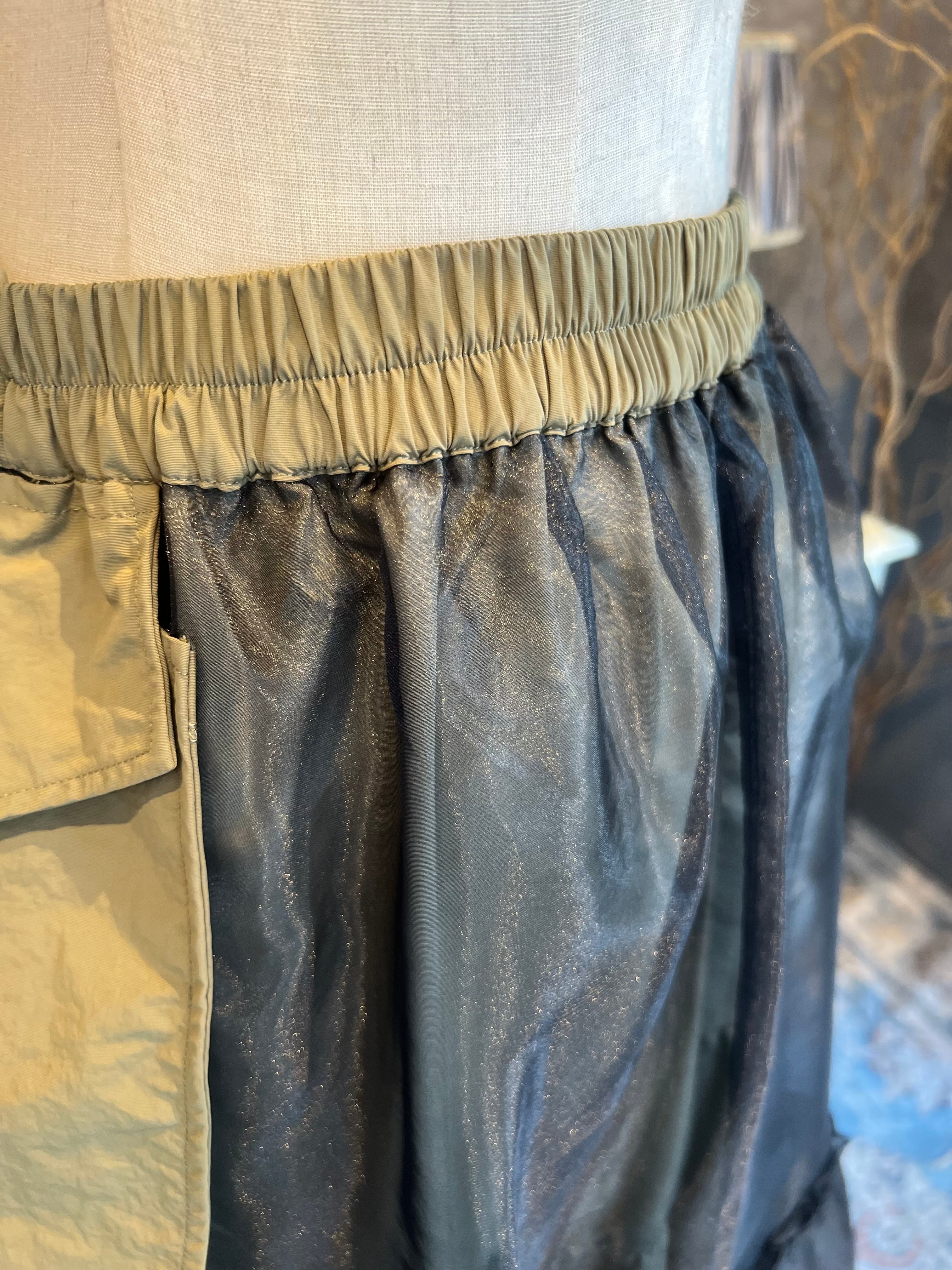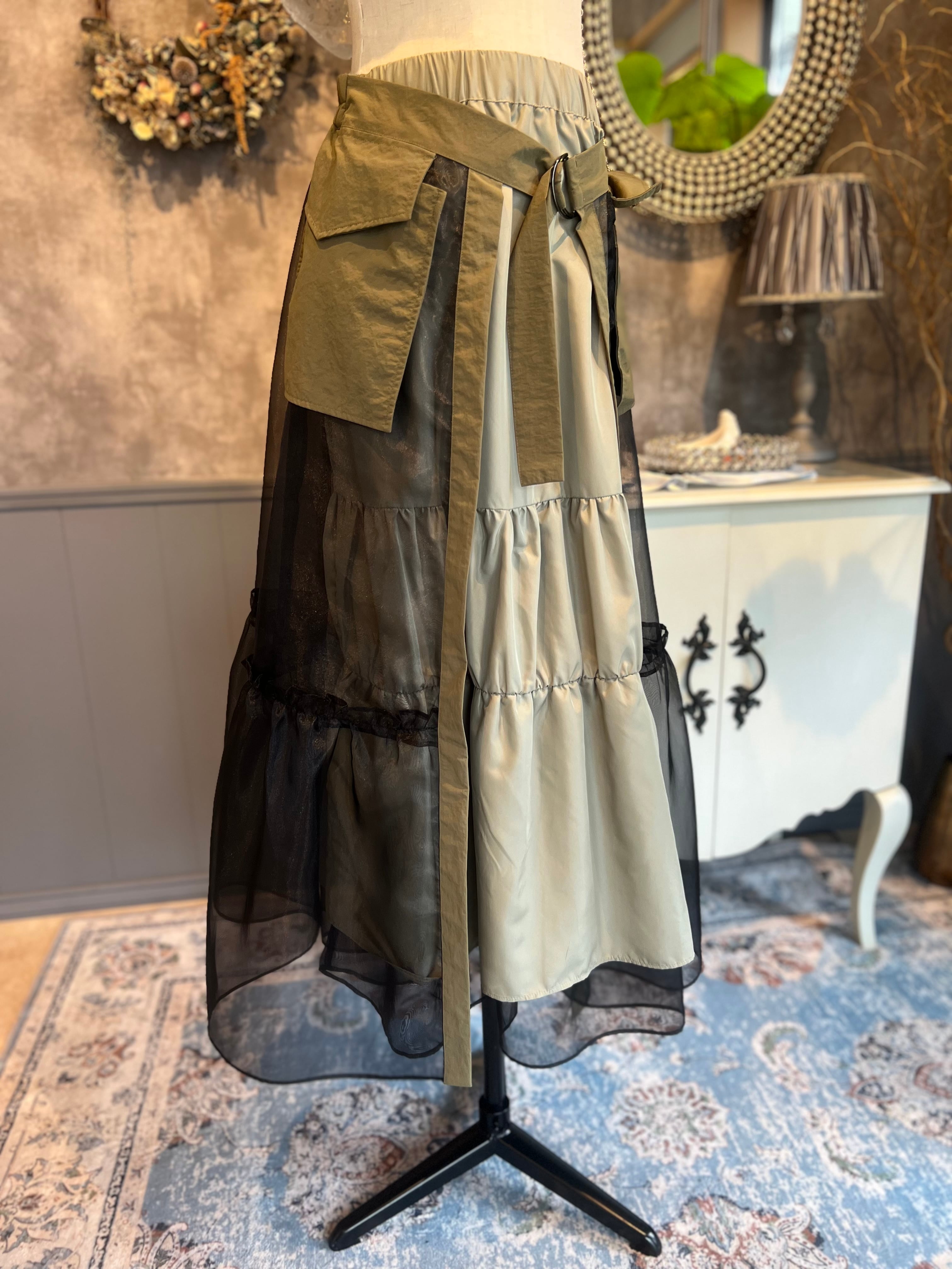 MICALLE MICALLE TULLE LAYERED LONG SKIRT khaki