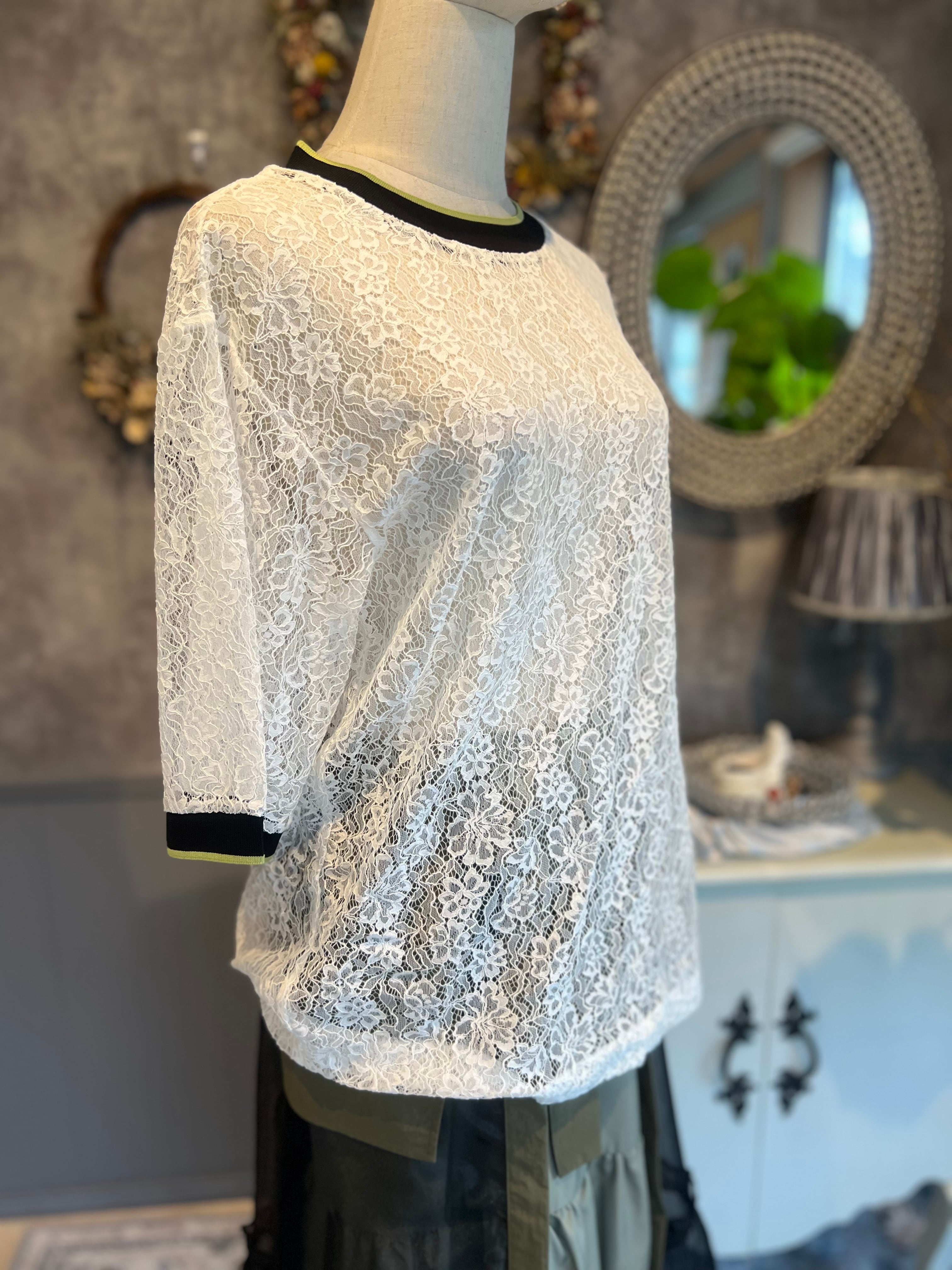 MICALLE MICALLE 配色リブネック レーストップス White